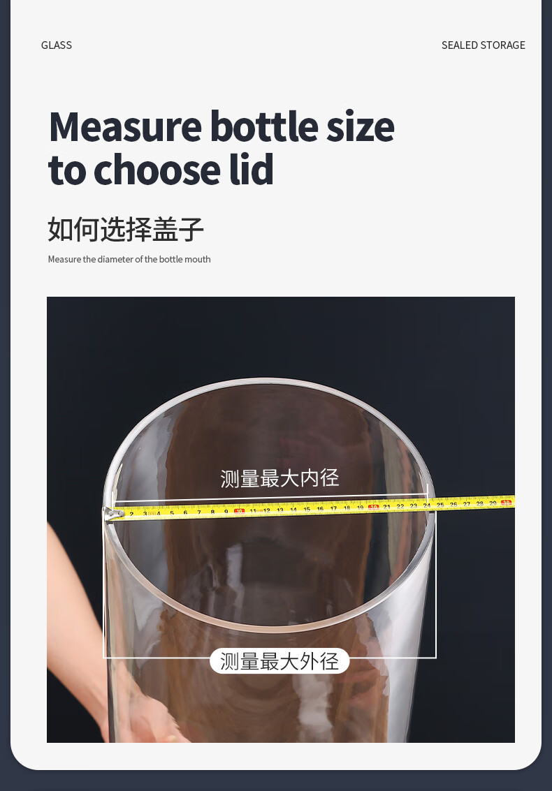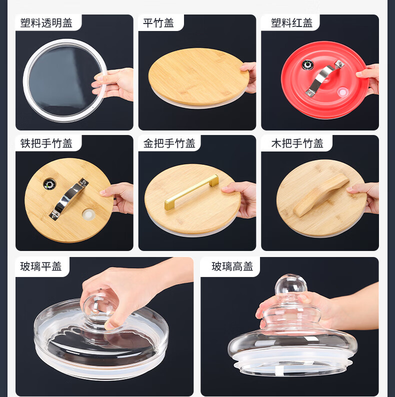 YITELAN storage jar glass bottle lid kimchi wine jar lid sold separately silicone sealed transparent glass lid plastic lid bamboo lid for bottles with an outer diameter of 15cm glass high lid only lid sold