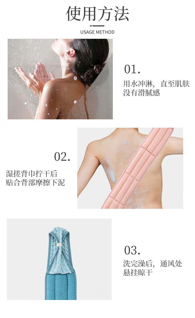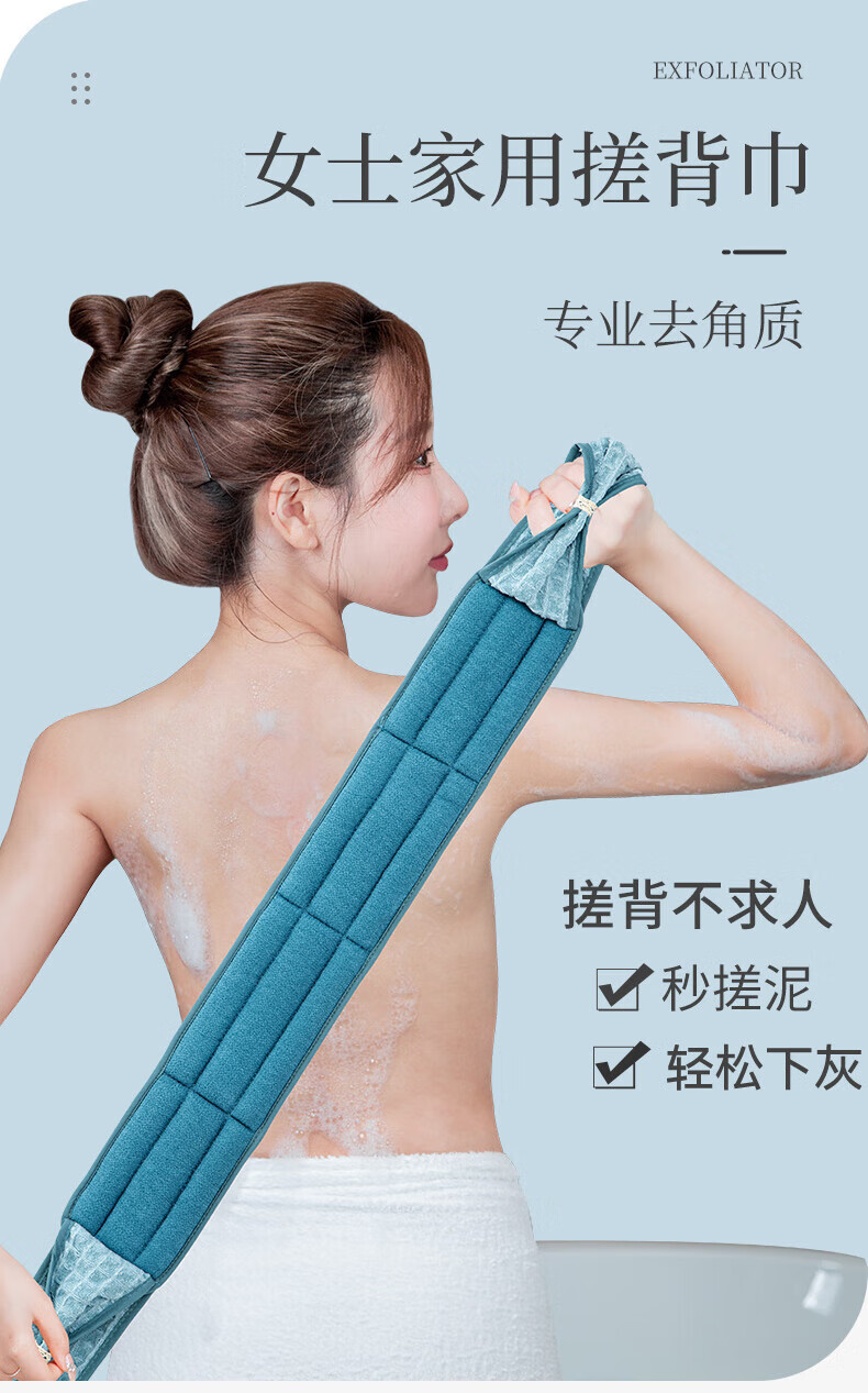 KDISV German bath towel, bath towel, huge muddy back, special bath towel for women's back, coarse sand bath artifact, powerful 3D upgraded double-sided back strip, blue