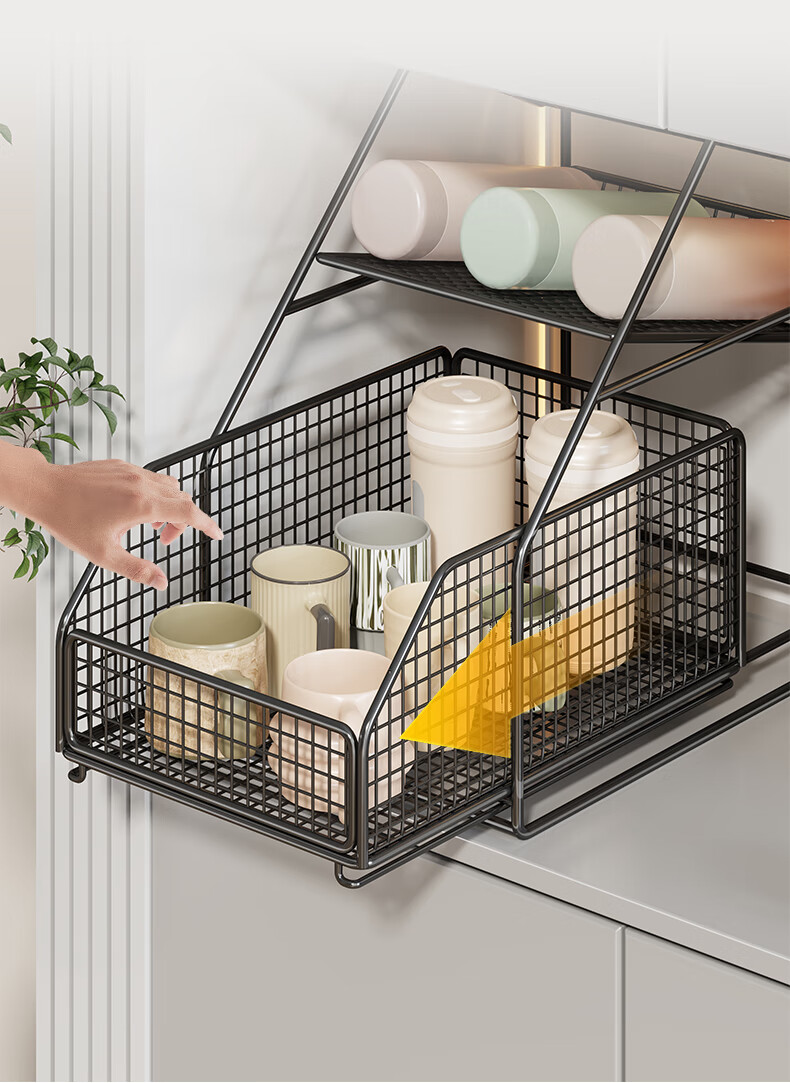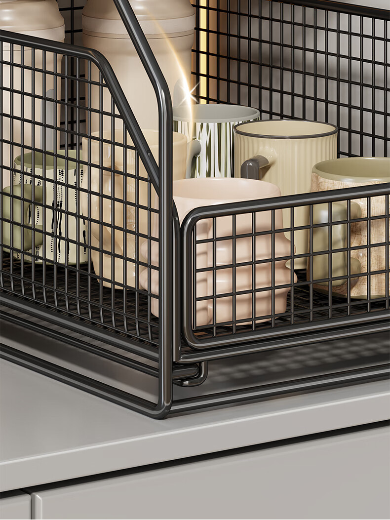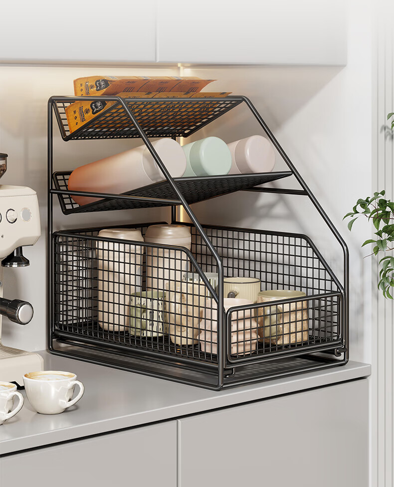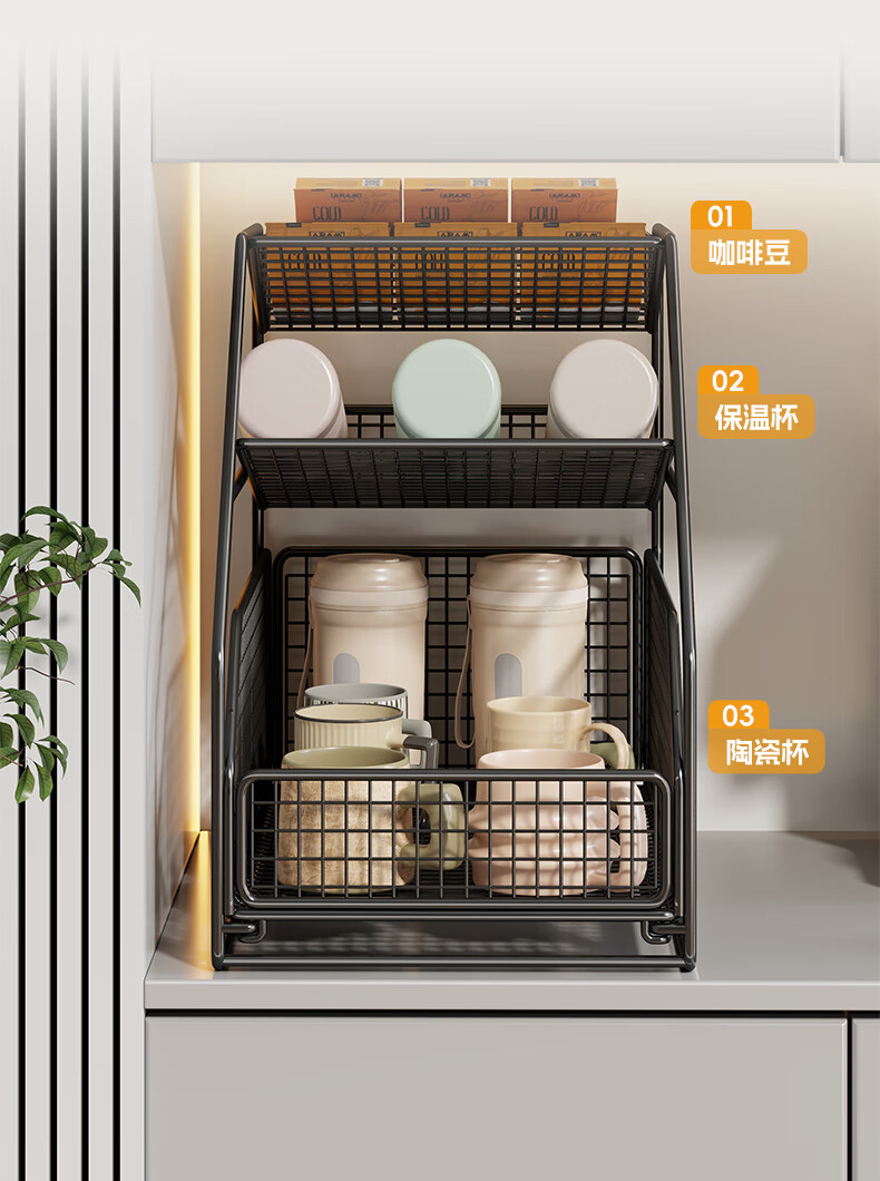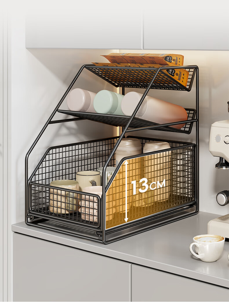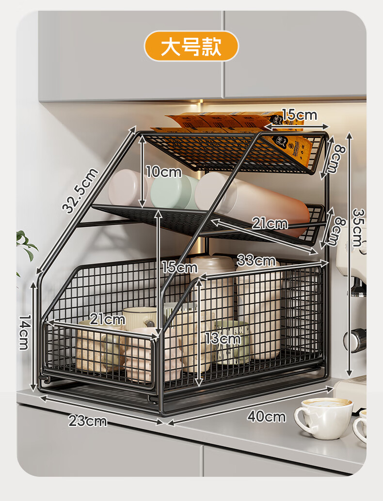 All are water cup storage rack, tea cup storage rack, desktop multi-layer coffee cup rack, cabinet, dining table, sideboard, table cup rack, black large size, slanted mouth