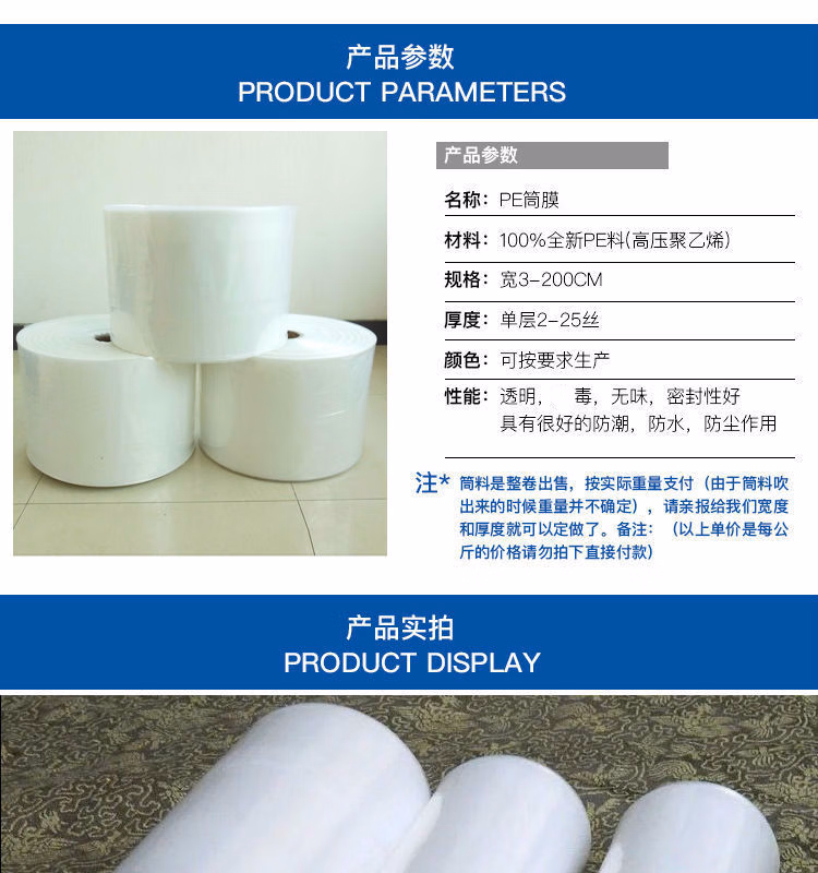 Ultra-narrow PE tube barrel film roll film transparent plastic packaging film long straight-through bag light tube bag PE flat bag width 6cm double layer 12 wires 1000 meters width 3cm double layer 12 wires 200 meters