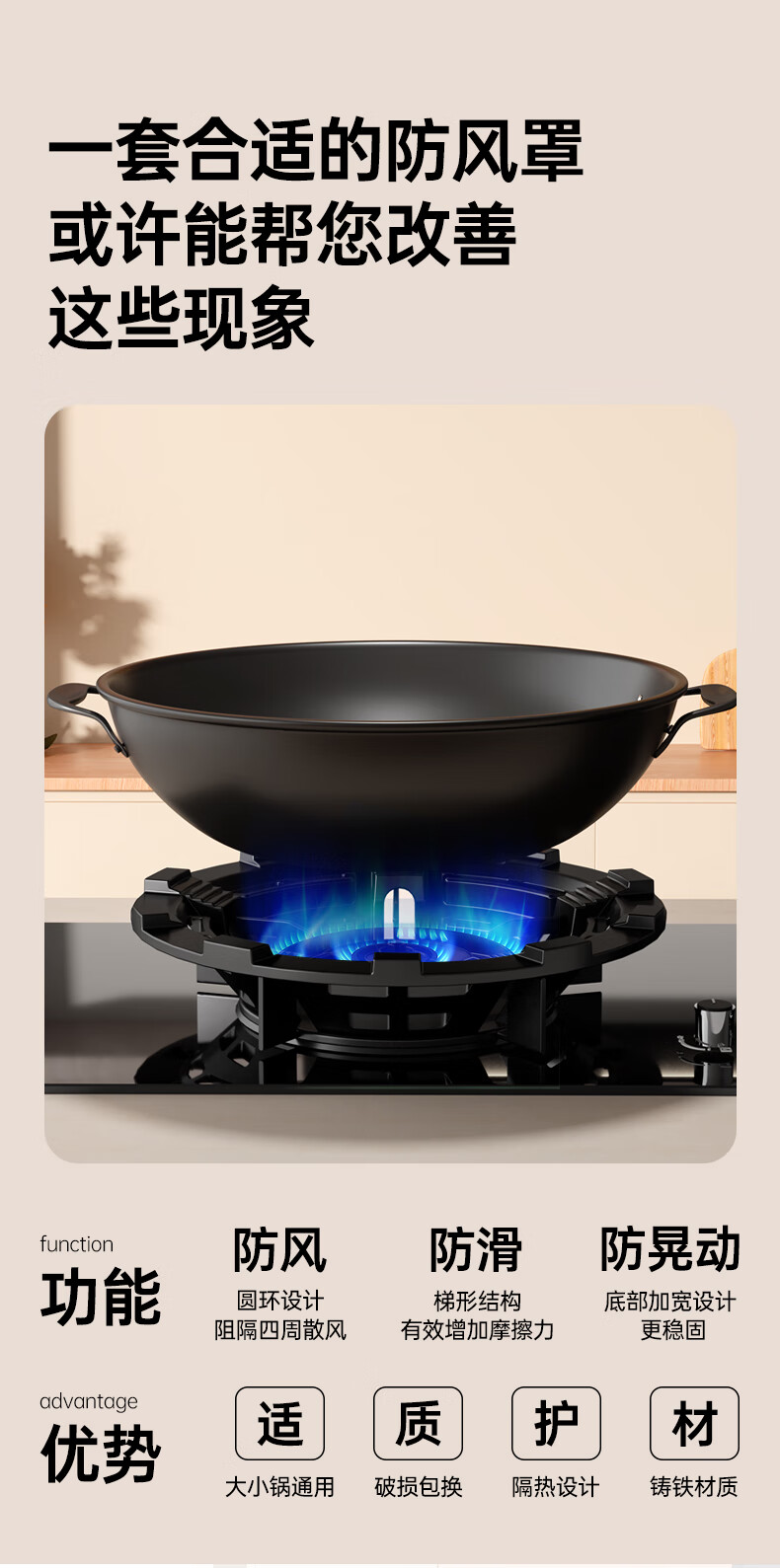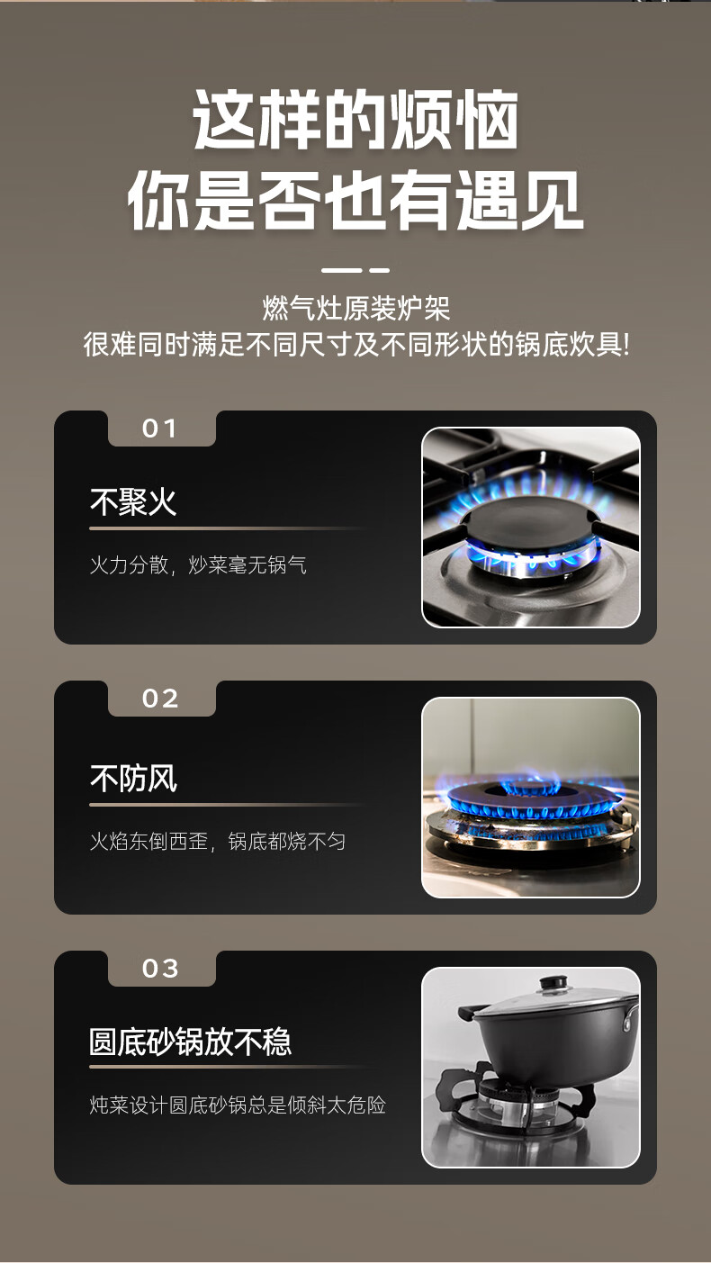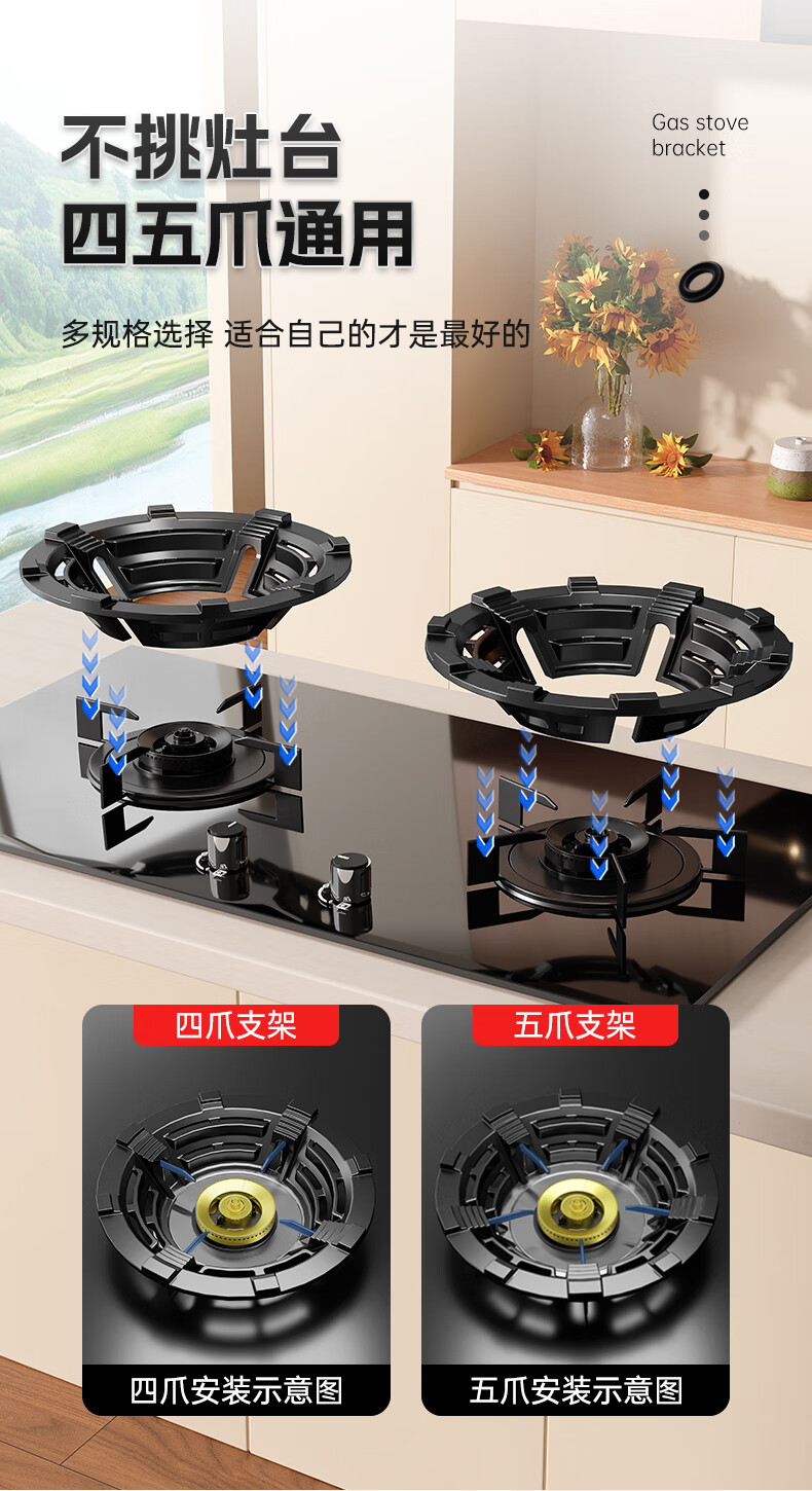 Beishi gas stove bracket fire-concentrating windproof energy-saving cover gas stove rack gas stove bracket windproof cover windshield ring oxygen inlet channel design for more complete combustion/four-claw universal