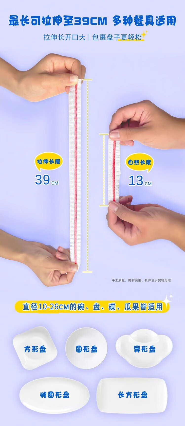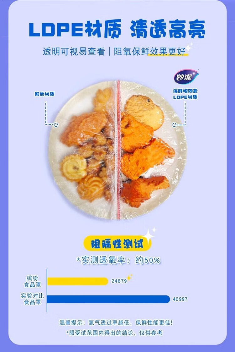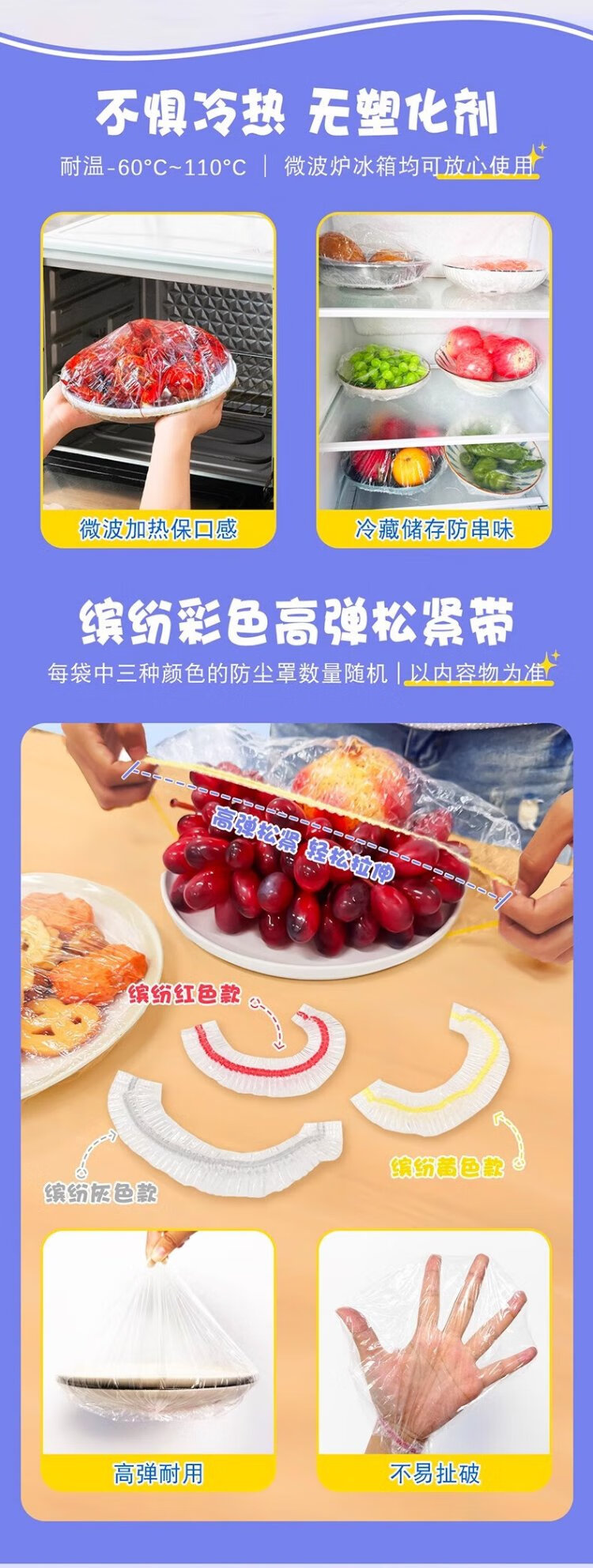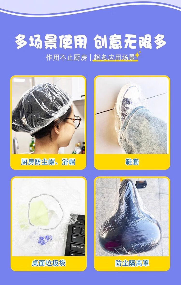MIAOJIE disposable cling film cover for leftover rice dishes, food-grade refrigerator PE fresh-keeping bag cover, dust-proof and flying insect protection cover, regular style, non-transparent, 1 pack, 300 pieces in total