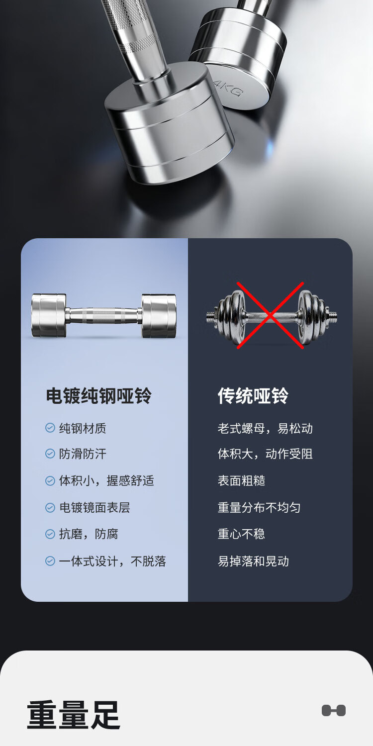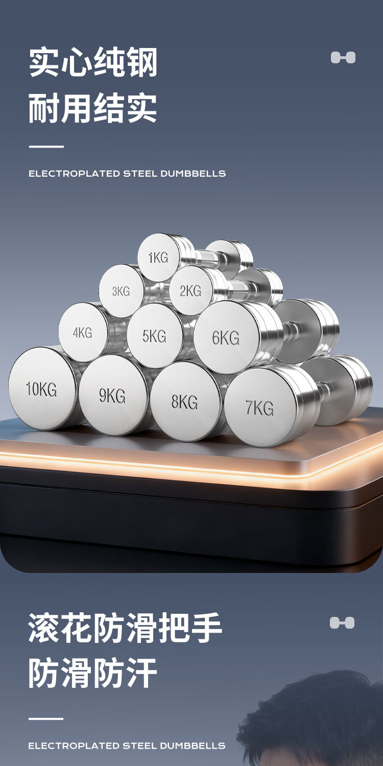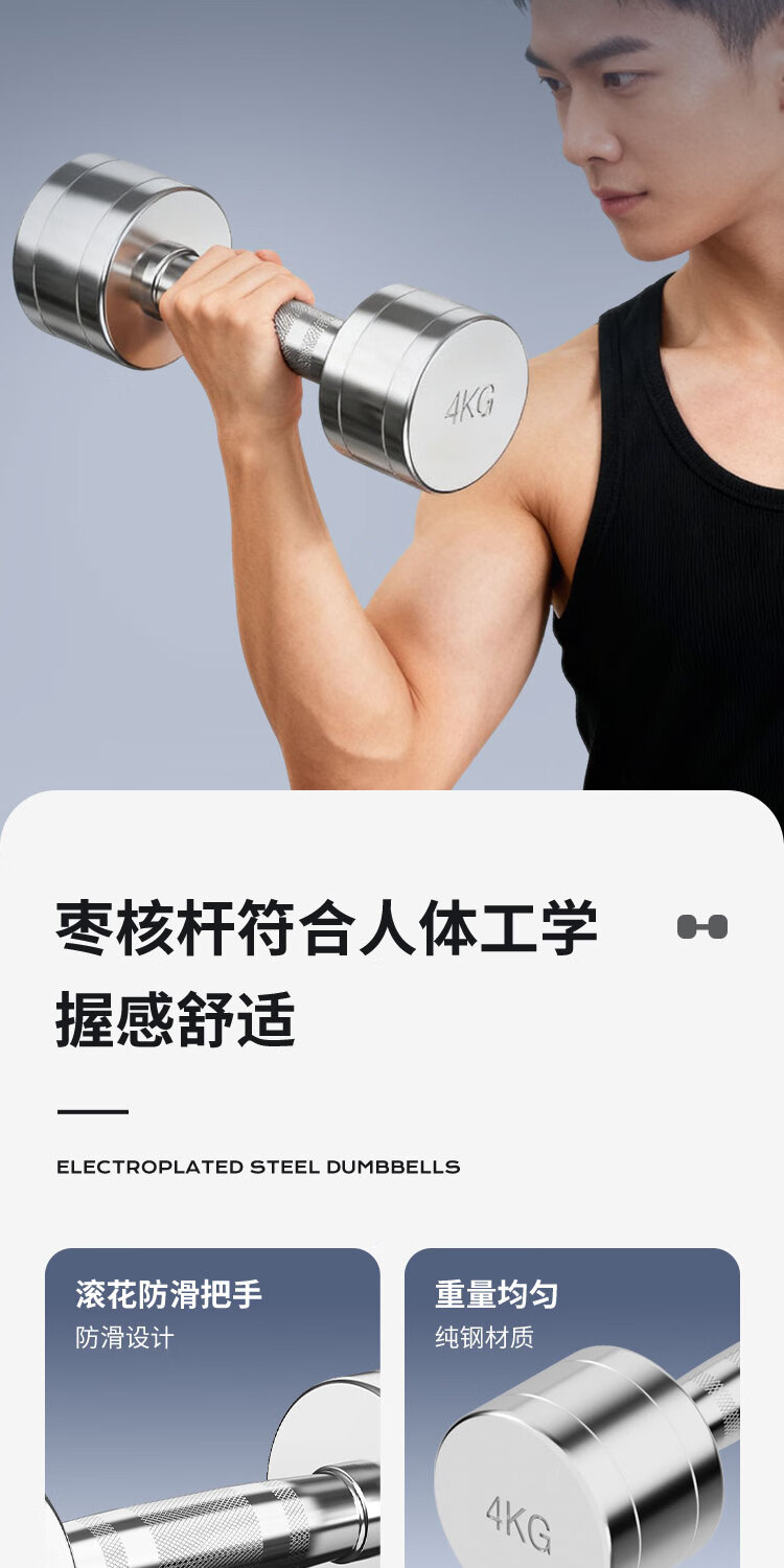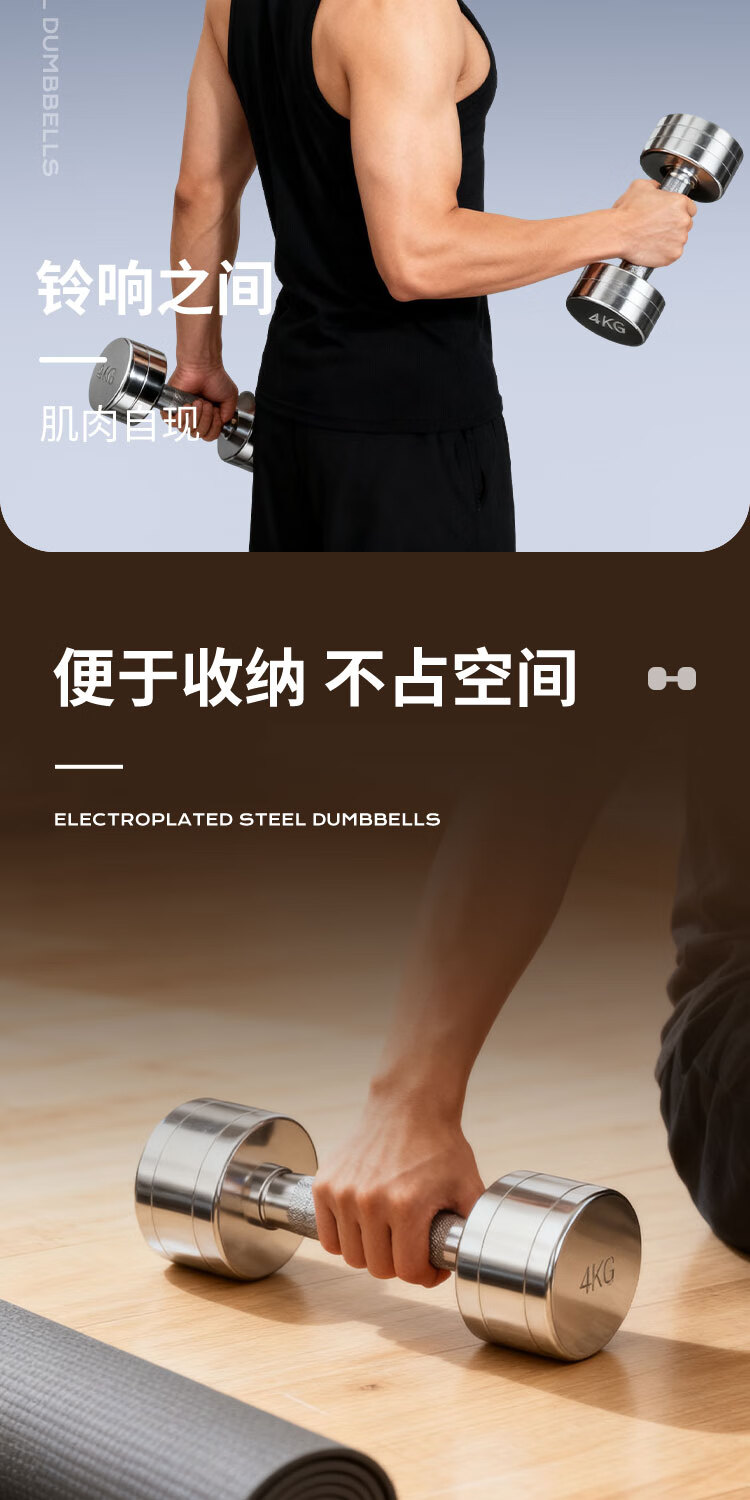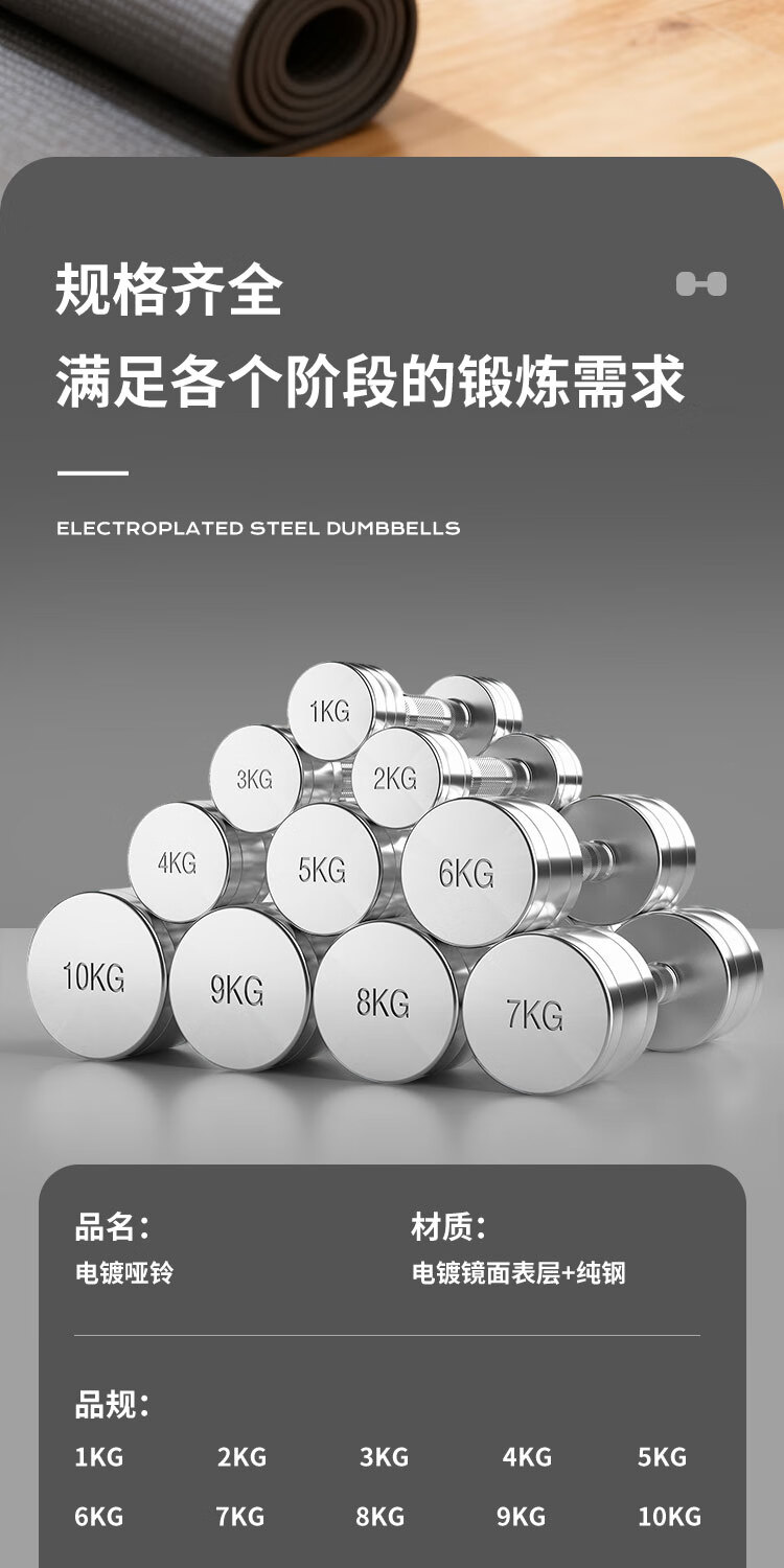 Pure steel electroplated small dumbbells for men and women fitness home weight loss exercise indoor weight-bearing sports training equipment pure steel dumbbells-1KG*2