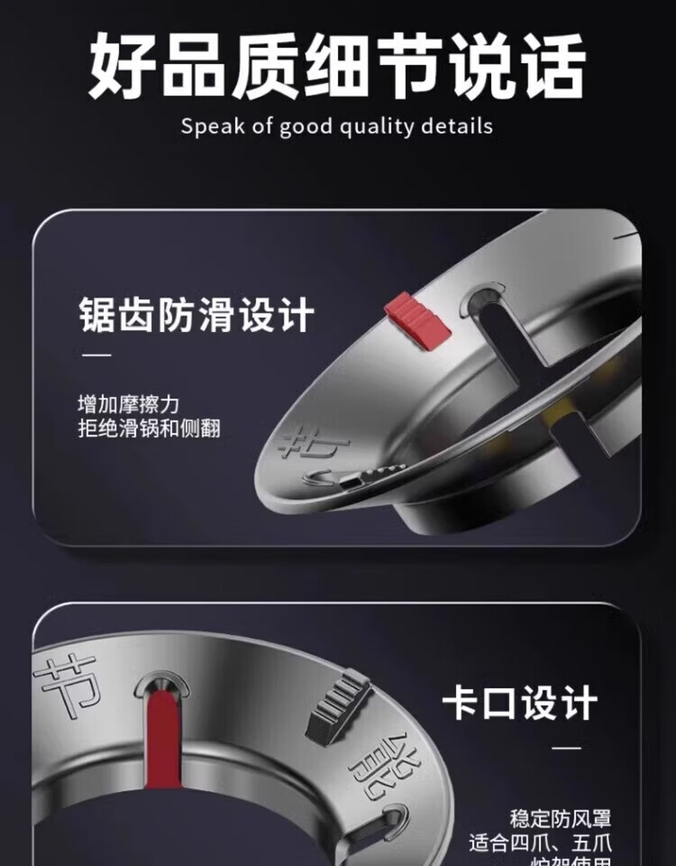 Sawang German gas stove anti-slip bracket holding fire cover energy-saving windproof cover universal gas stove stove windshield energy-saving ring second generation upgraded fire focus windproof cover flagship model four-claw universal (2 pieces)