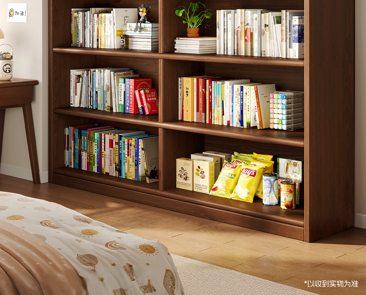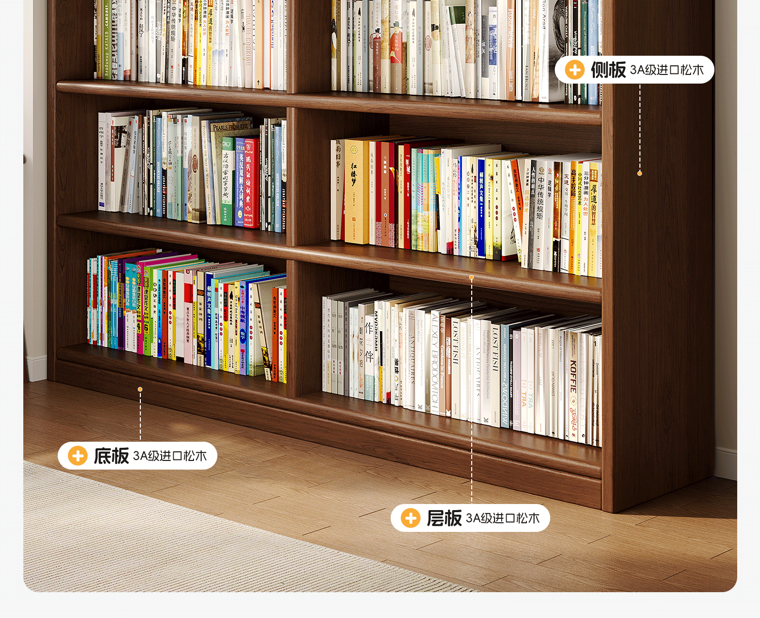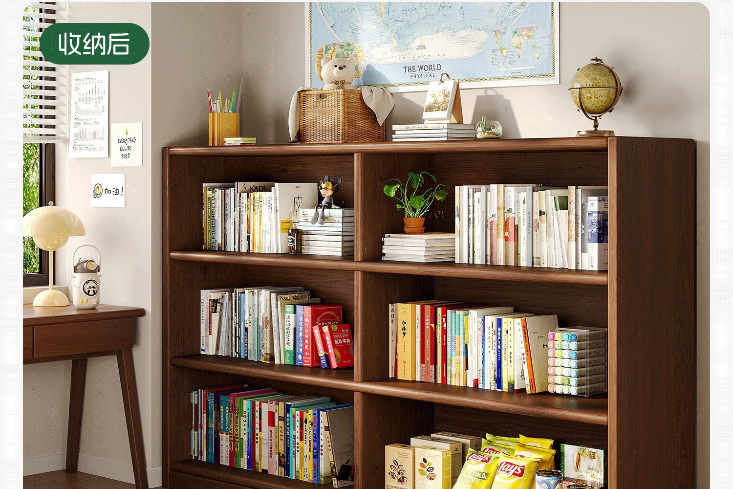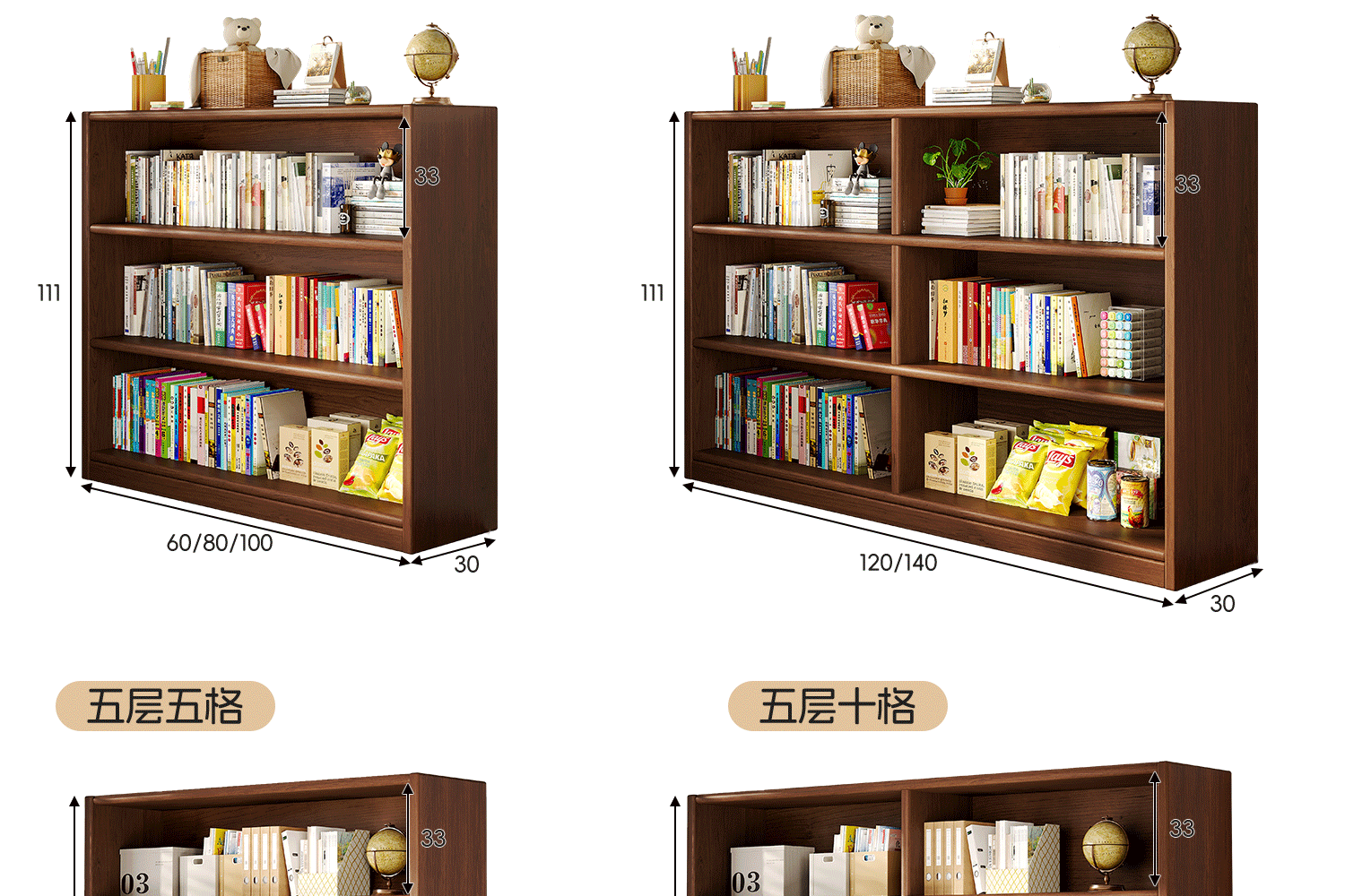 Lin Zhiyu solid wood bookshelf rack floor-standing student home storage storage cabinet grid display short bookcase integrated against the wall welfare model deepened 3 layers 120*30*111 3A grade imported solid wood