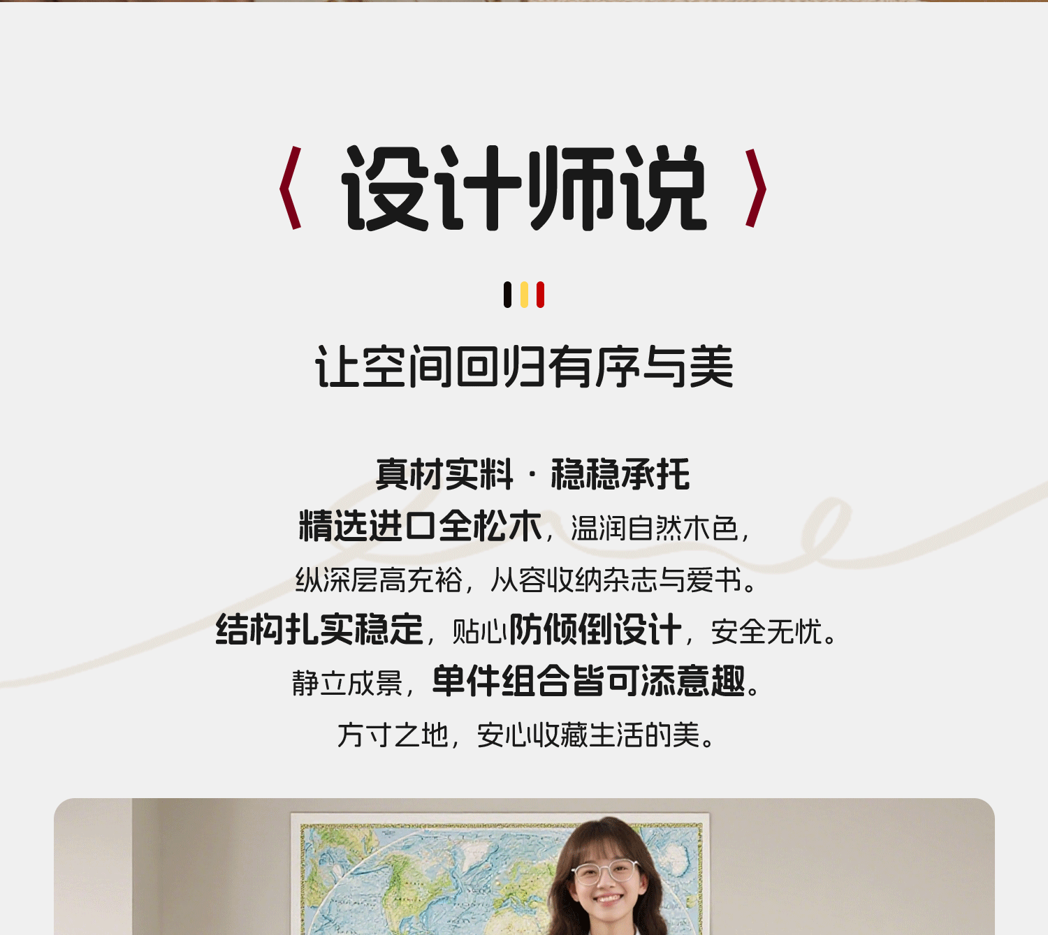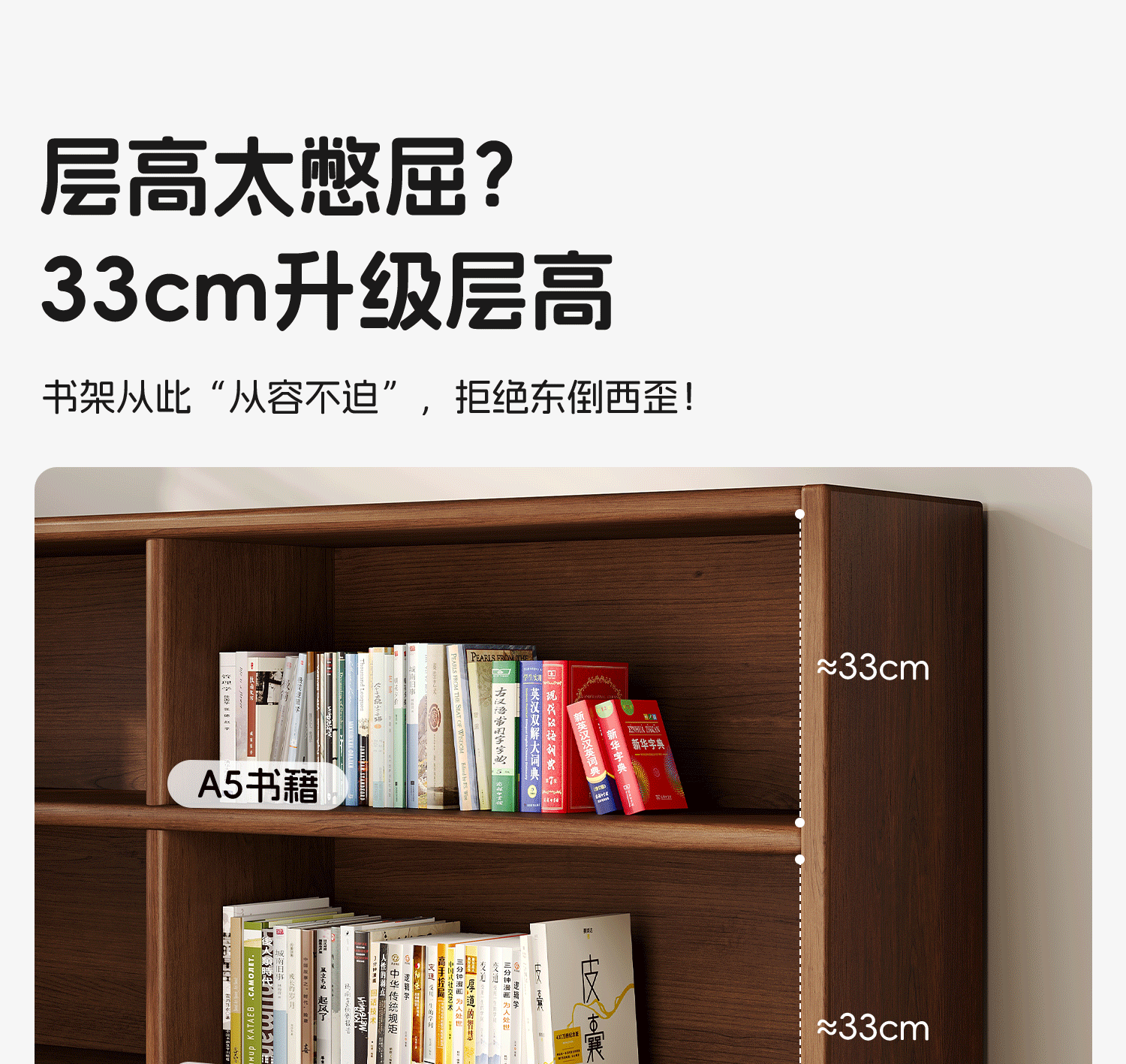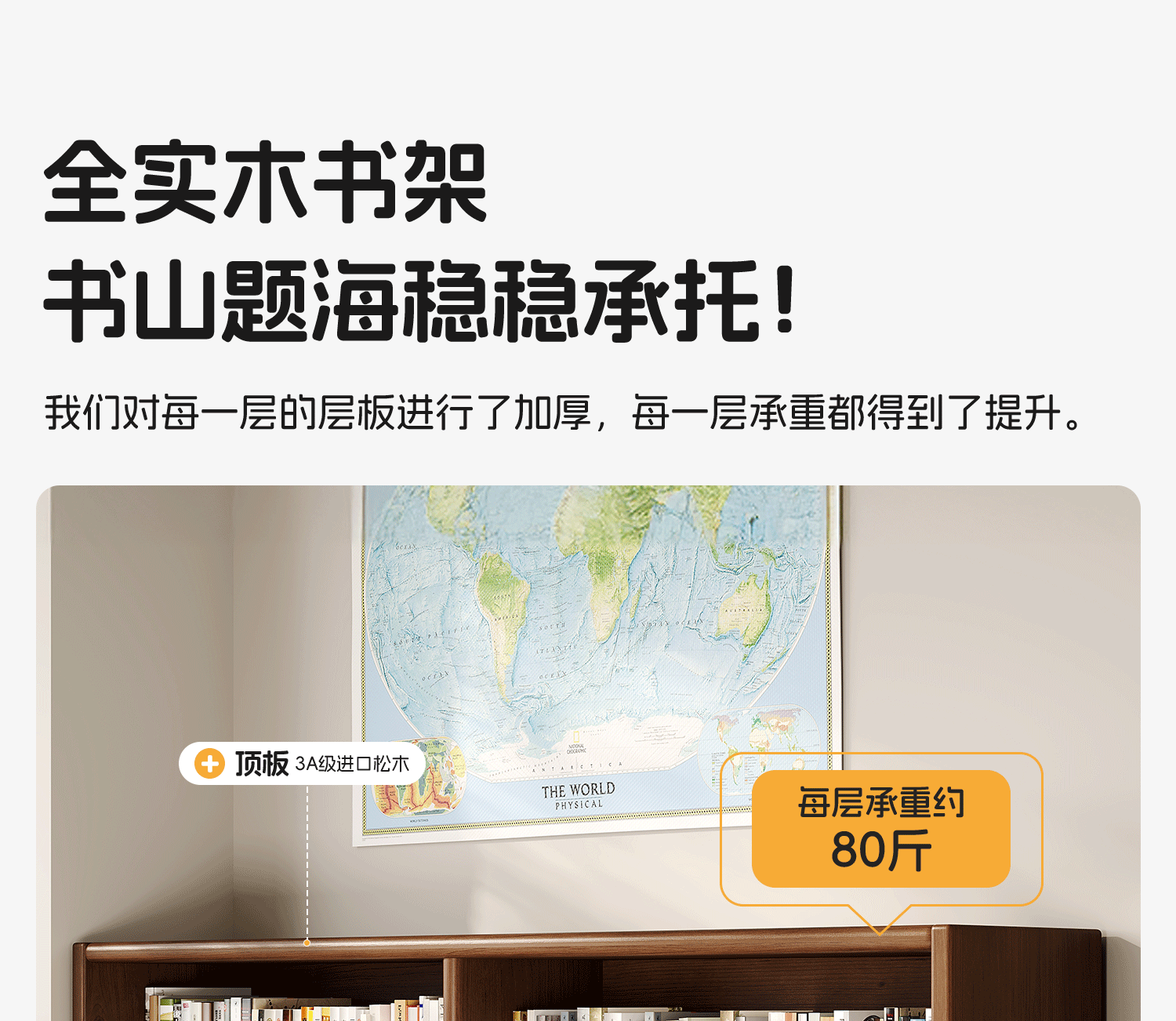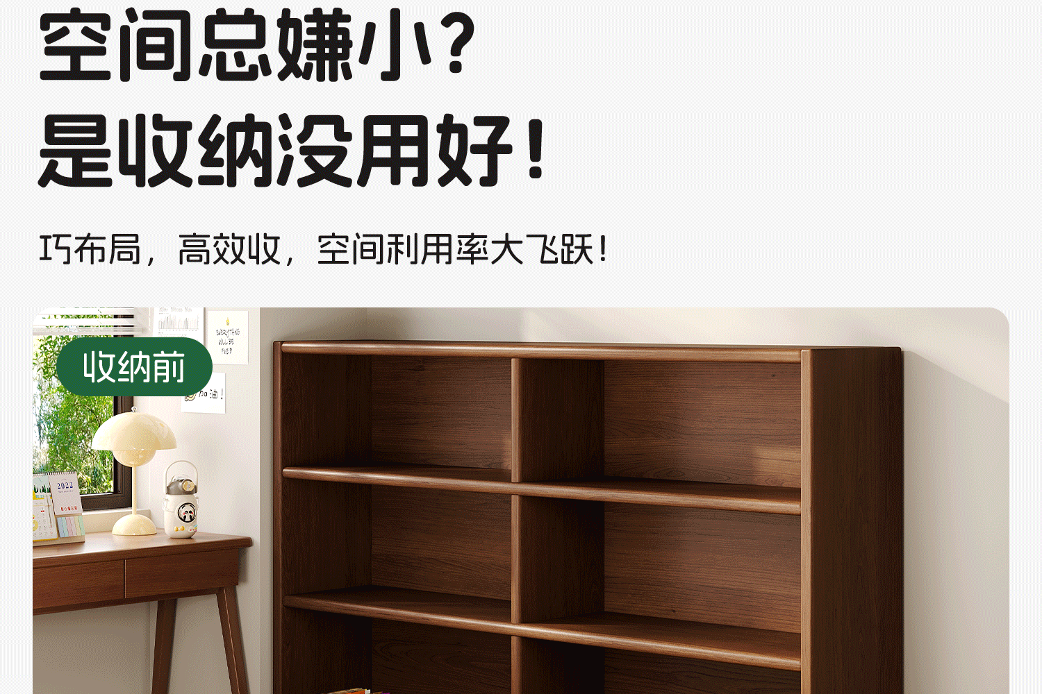 Lin Zhiyu solid wood bookshelf rack floor-standing student home storage storage cabinet grid display short bookcase integrated against the wall welfare model deepened 3 layers 120*30*111 3A grade imported solid wood