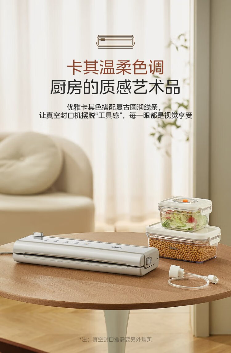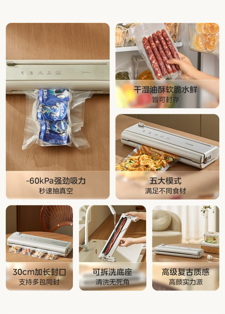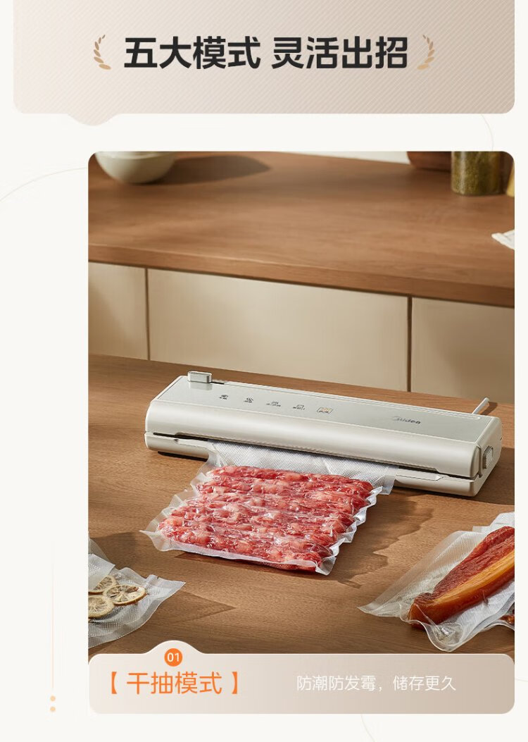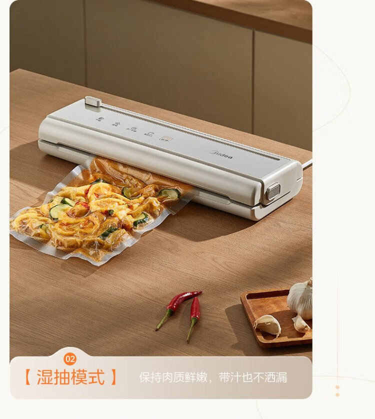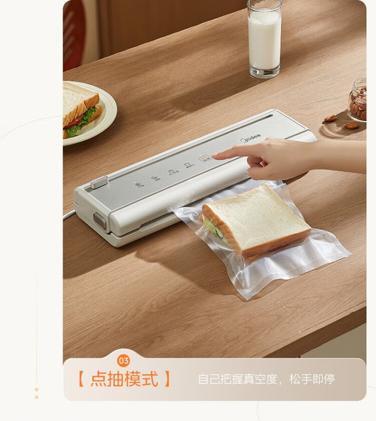 Midea vacuum sealing machine, vacuum packaging machine, household food plastic sealing machine, fully automatic vacuum machine, dry and wet use, large suction, vacuum preservation, packing and sealing machine, vacuum compressor, hot selling items, small gold bars for locking freshness