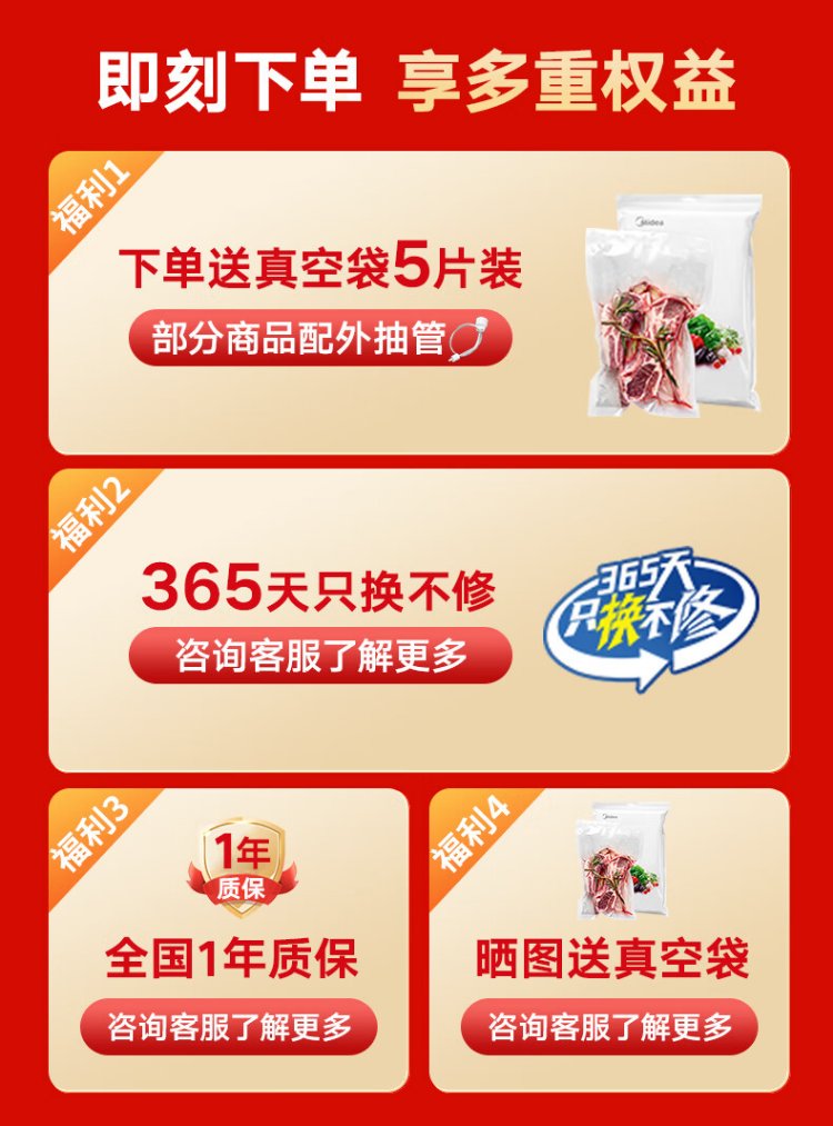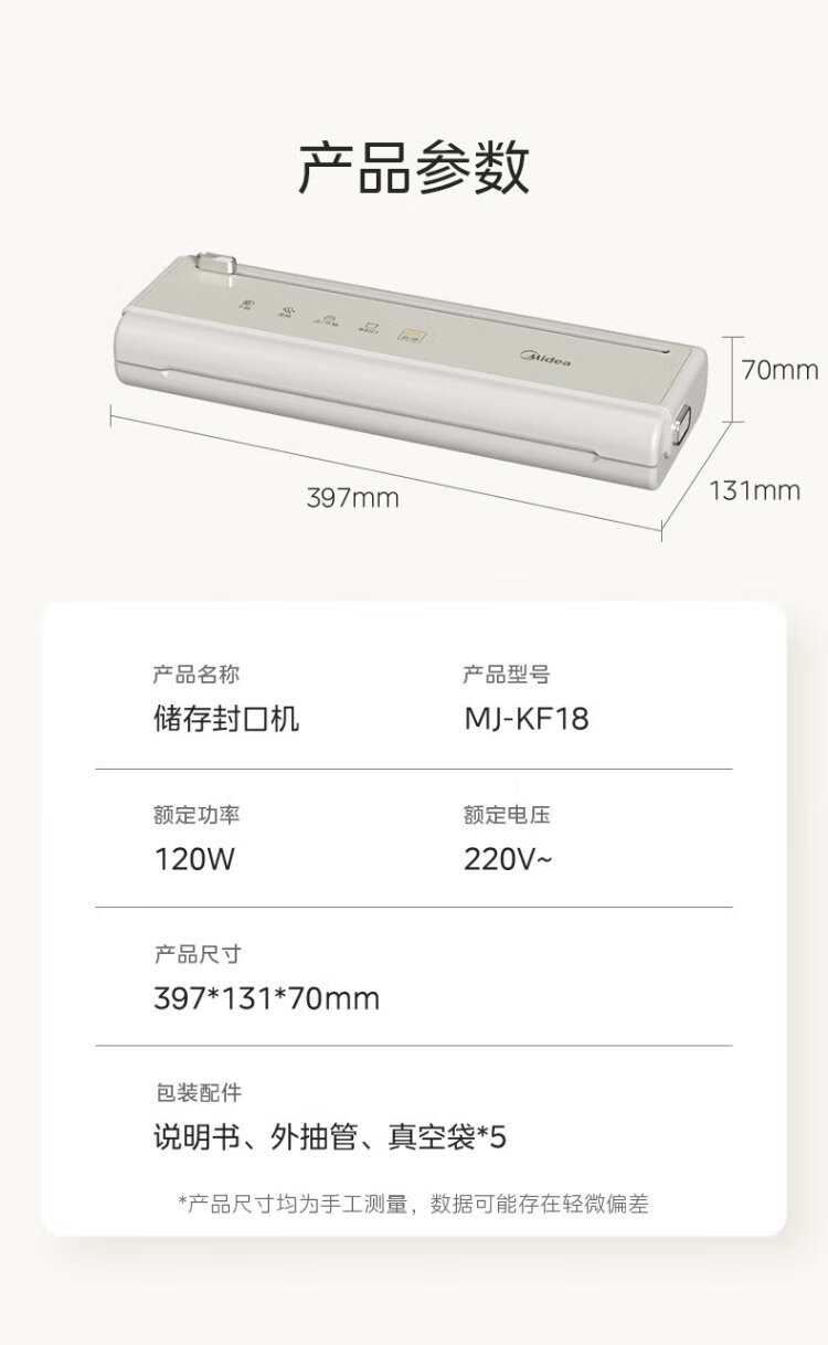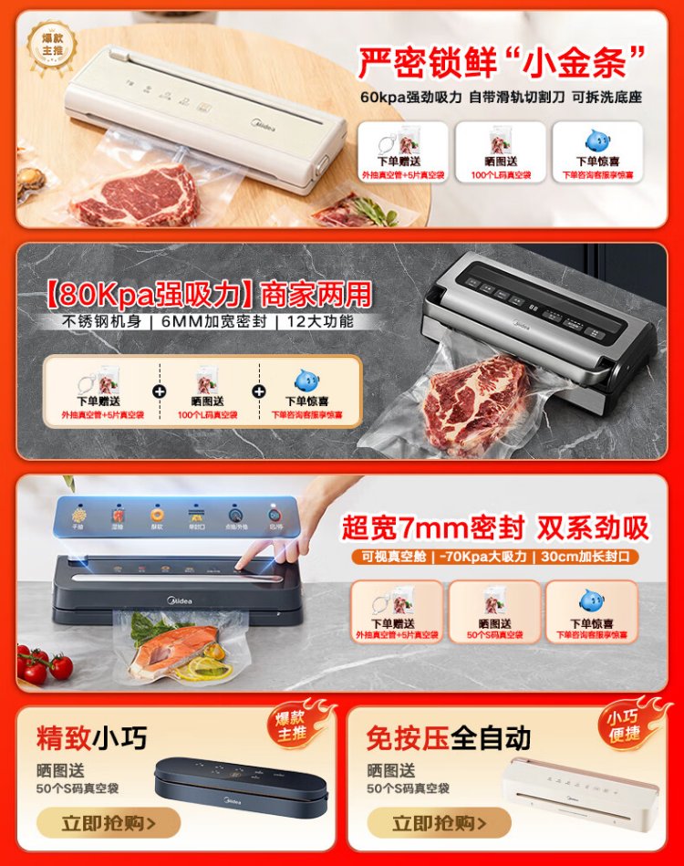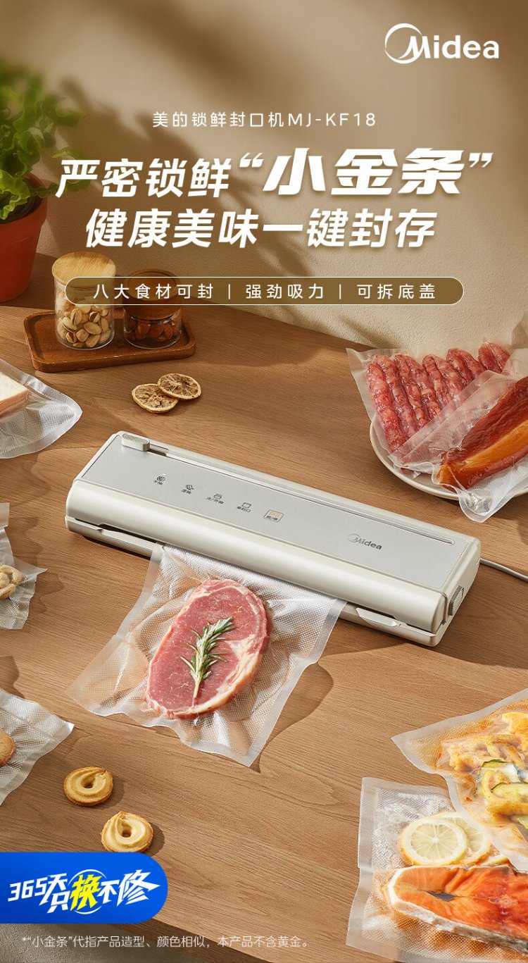 Midea vacuum sealing machine, vacuum packaging machine, household food plastic sealing machine, fully automatic vacuum machine, dry and wet use, large suction, vacuum preservation, packing and sealing machine, vacuum compressor, hot selling items, small gold bars for locking freshness