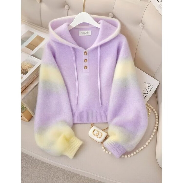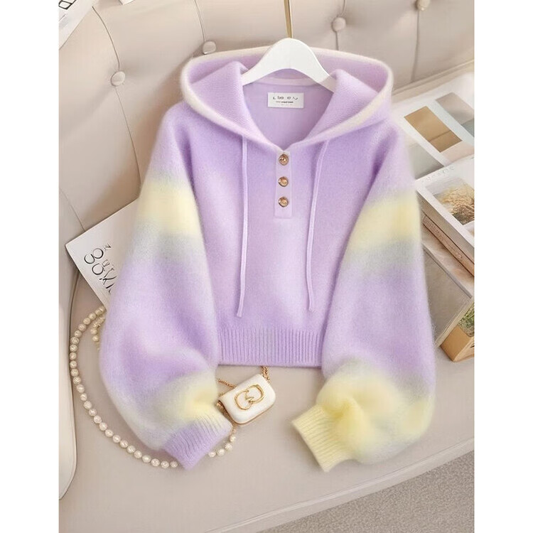 XiangDuoEr (XiangDuoEr) Korean purple loose lazy style high-end hooded sweater 2025 autumn new style casual knitted top Purple 3434# M recommended within 100 pounds