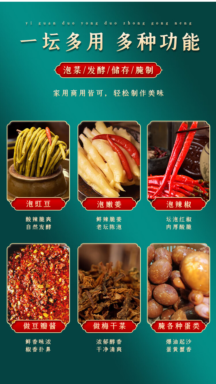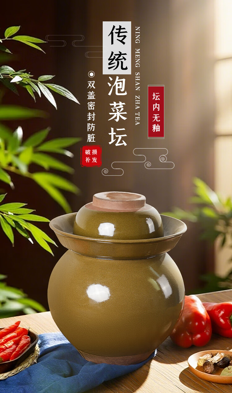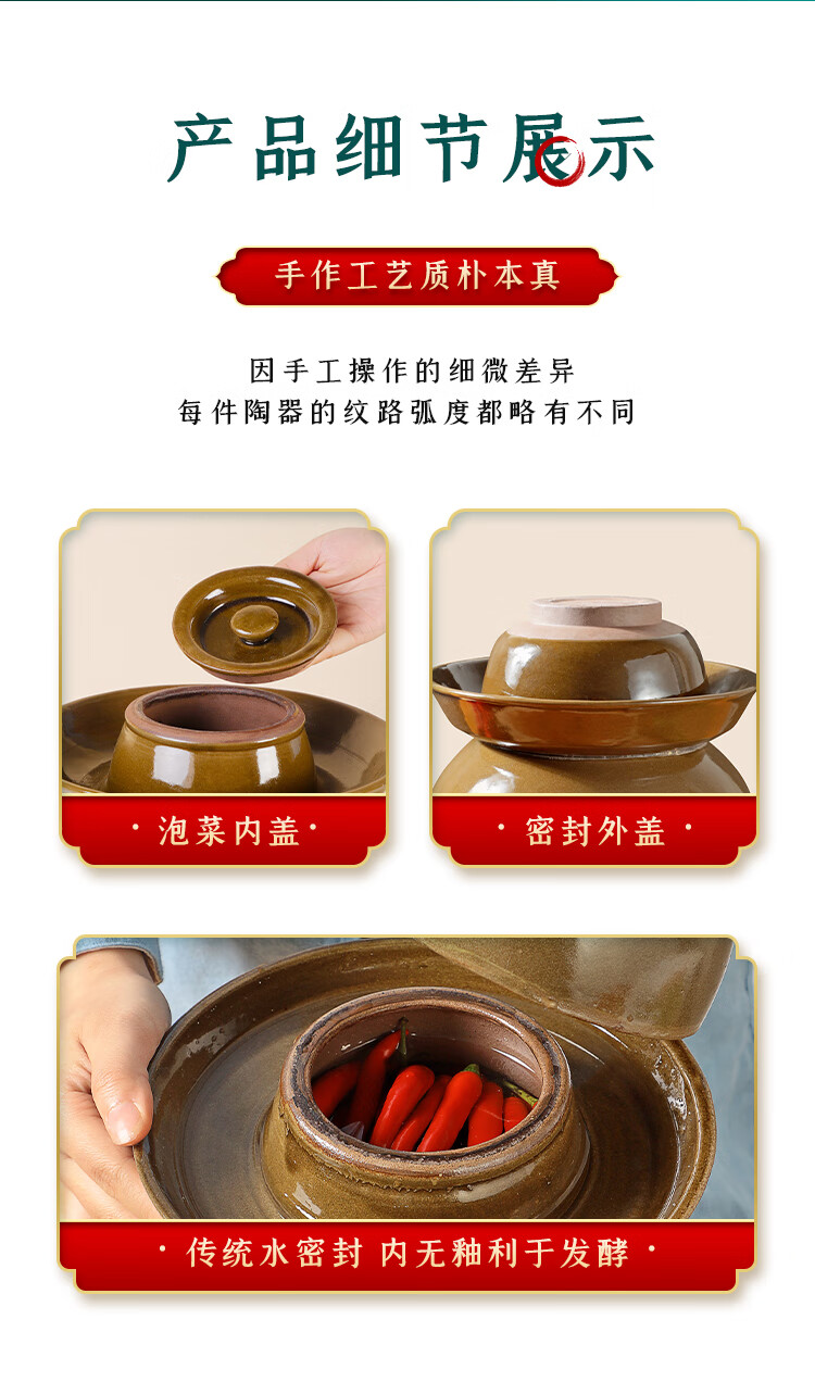 He Jiagong Sichuan Pickle Jar Sichuan Pickle Jar Home Pickled Cowpeas Old-fashioned Commercial Large Ceramic Sealed Pickles 60 catties Water Capacity Thickened + Inner Cover ++ Pickles