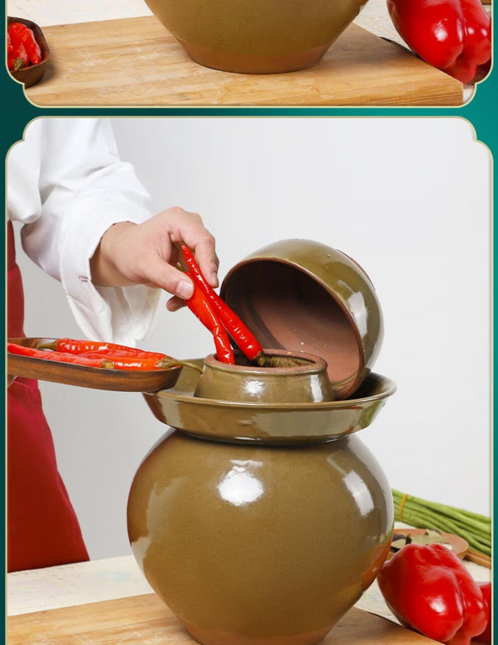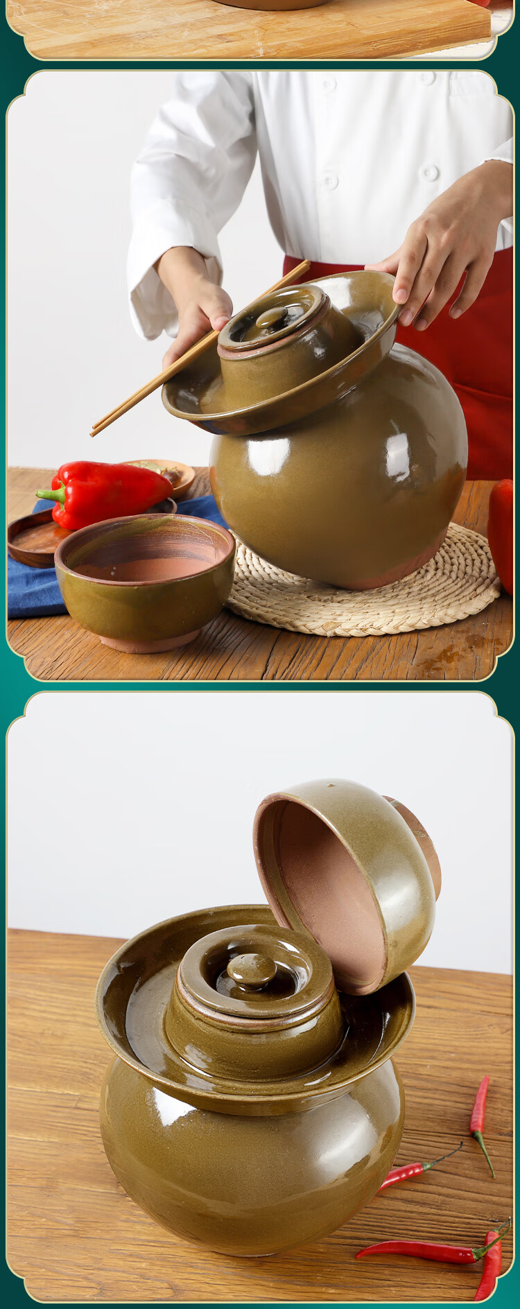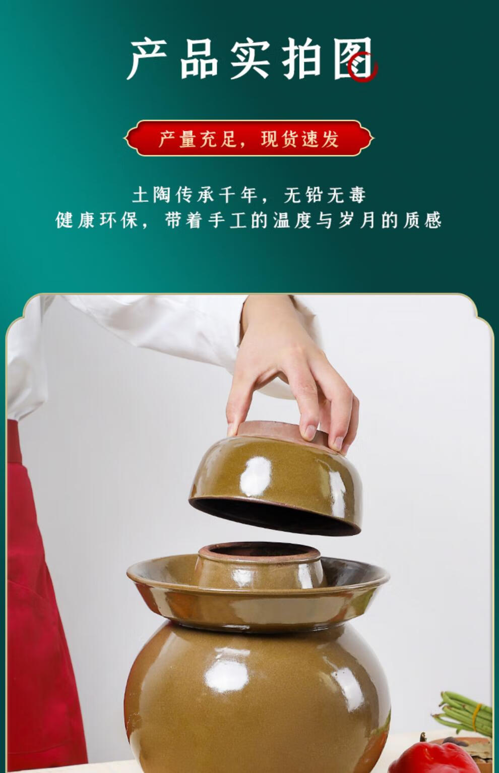 He Jiagong Sichuan Pickle Jar Sichuan Pickle Jar Home Pickled Cowpeas Old-fashioned Commercial Large Ceramic Sealed Pickles 60 catties Water Capacity Thickened + Inner Cover ++ Pickles