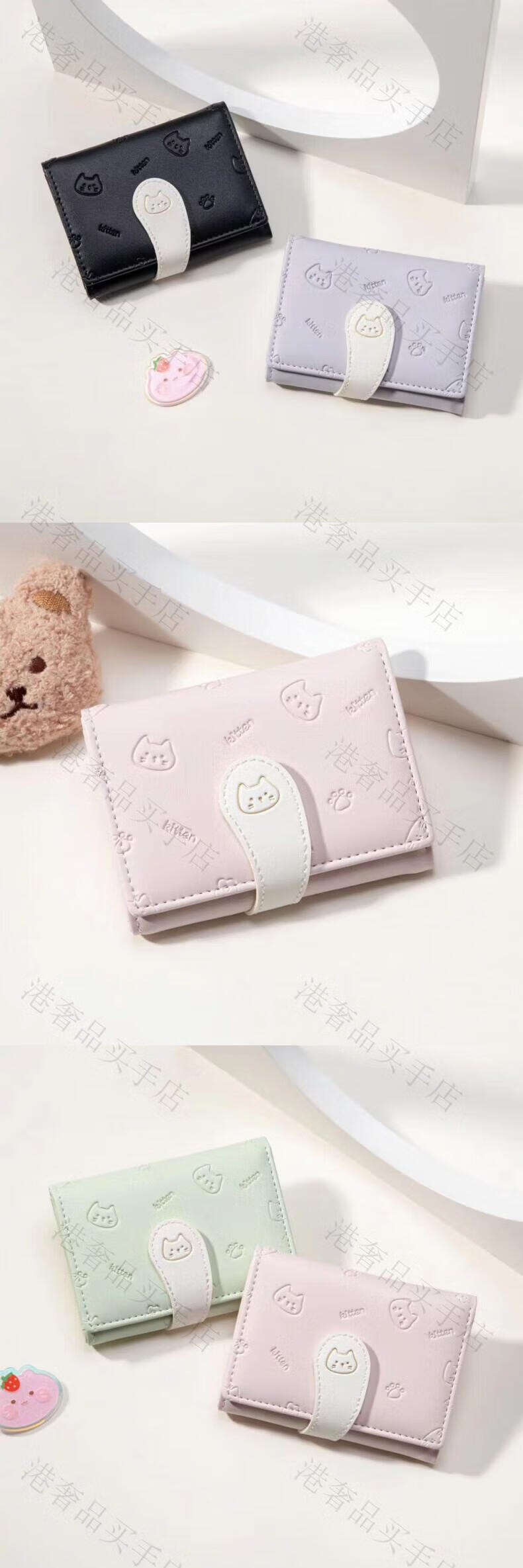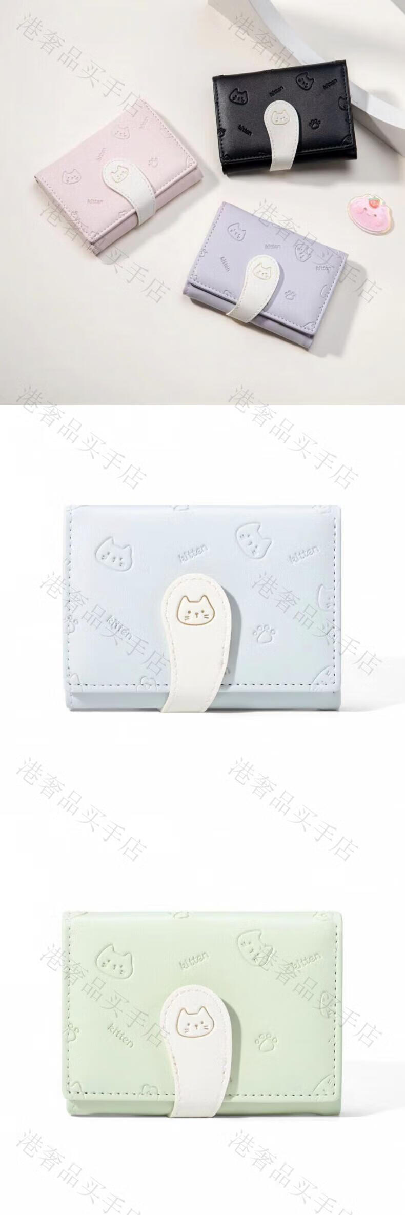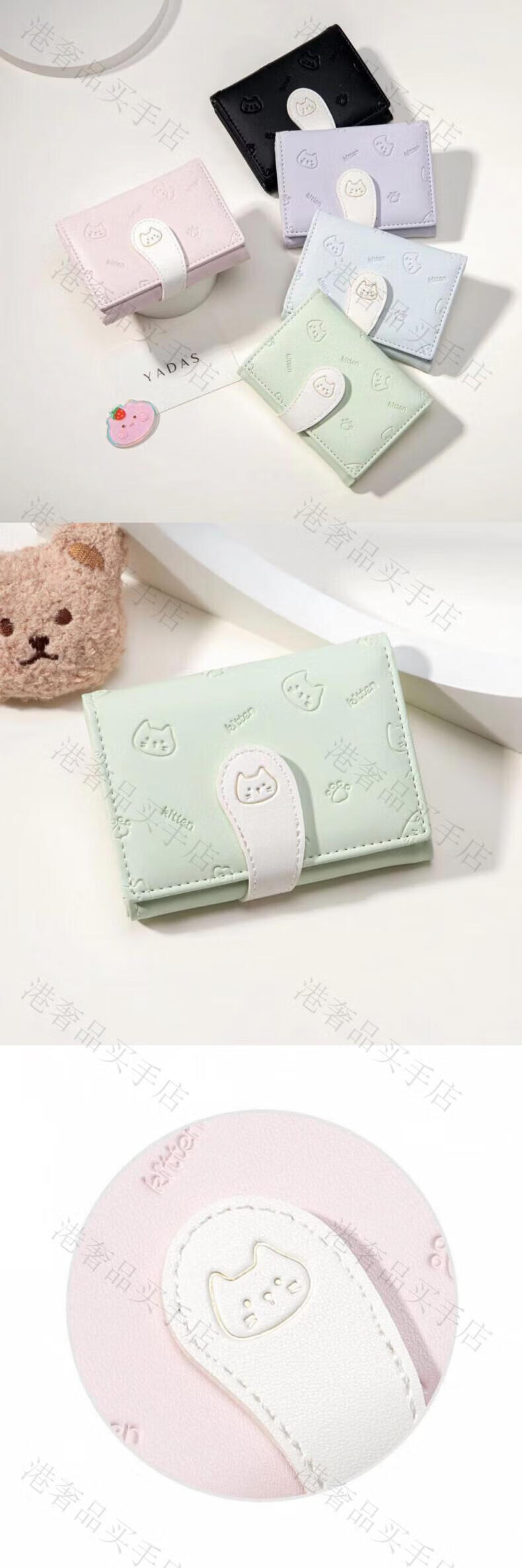 ANYSMIC luxury bags women's bags big brand new wallet cute cat tail student folding multi-card clutch bag pink anti-degaussing upgraded version
