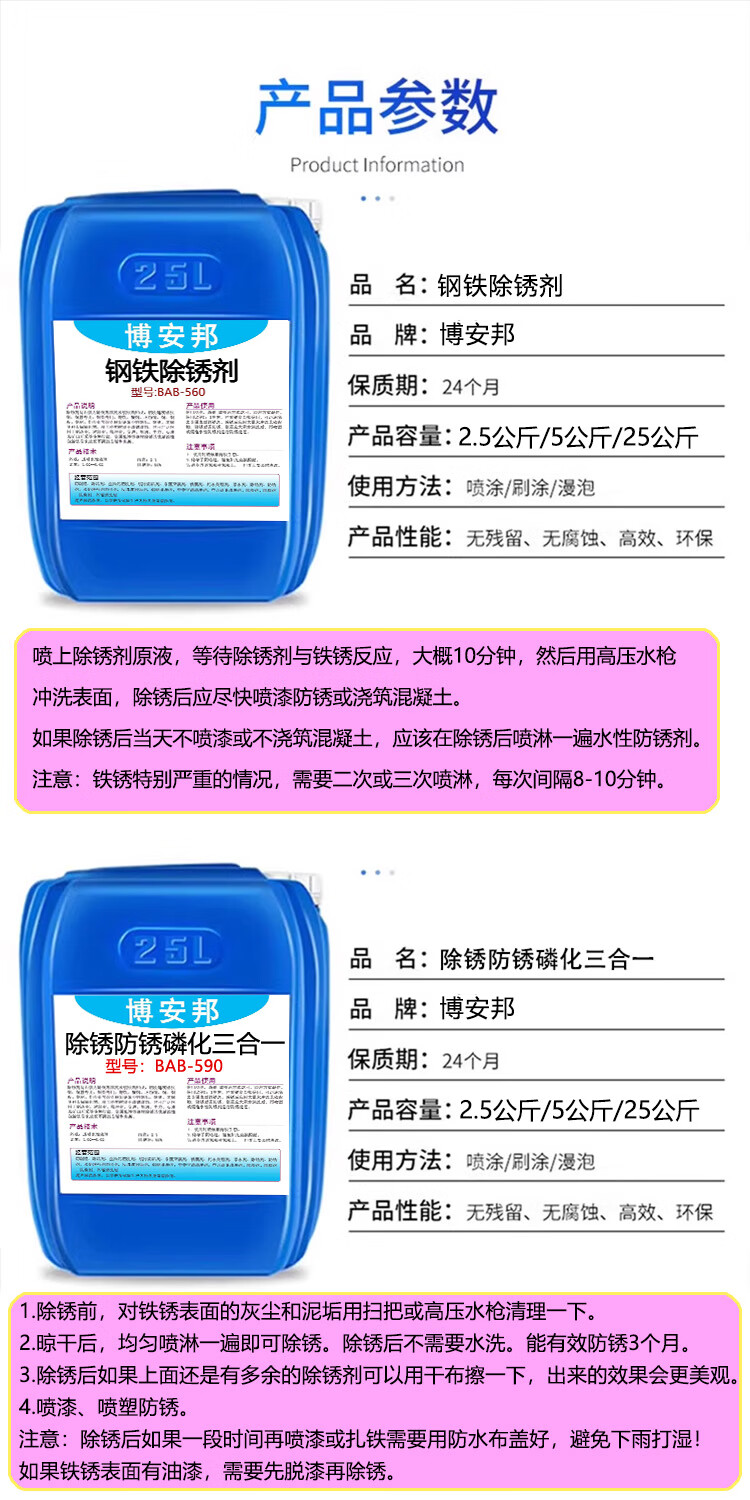 Rust remover metal rapid cleaning phosphating liquid spray round pipe reinforced steel plate industrial strong rust removal and rust prevention all in one water-free rust removal, rust prevention and phosphating three-in-one 10 pounds