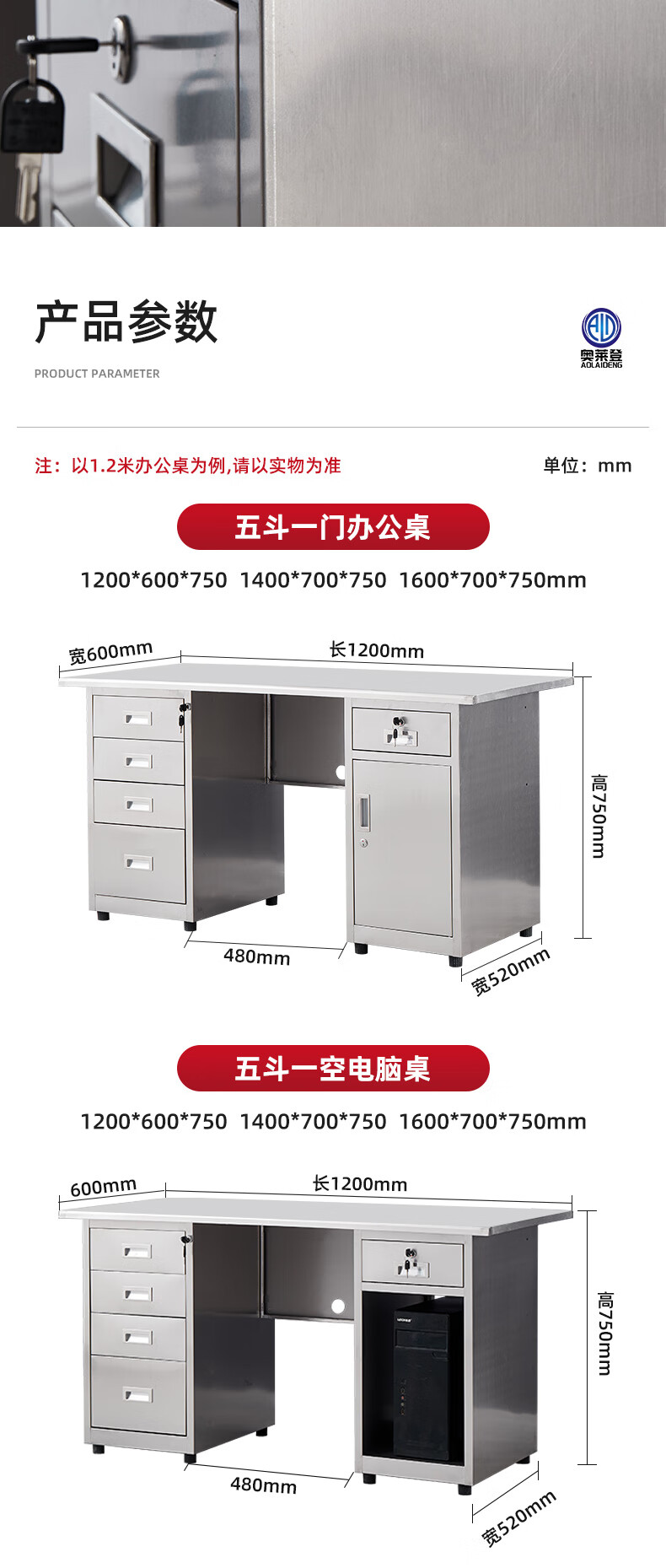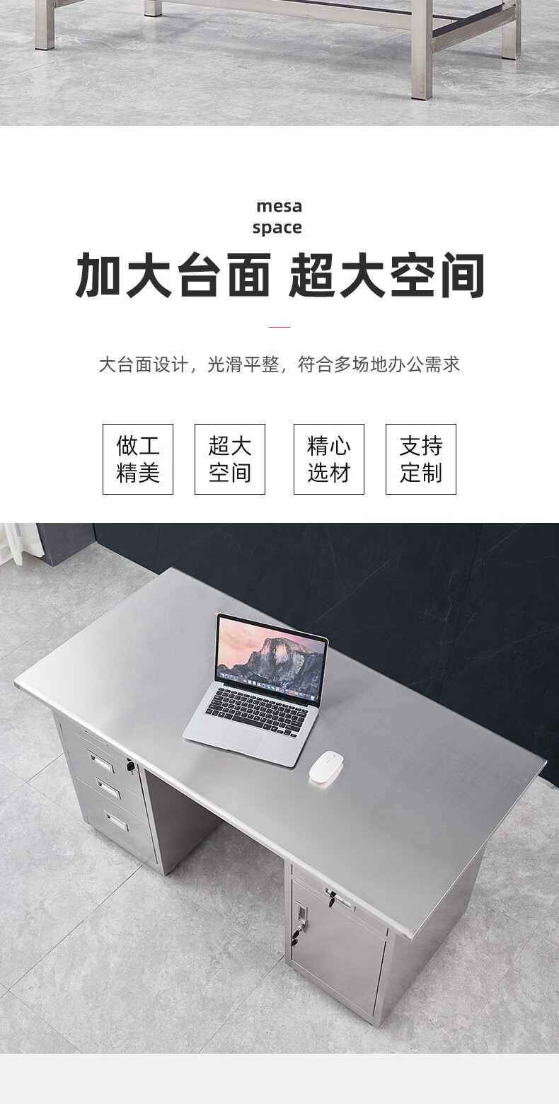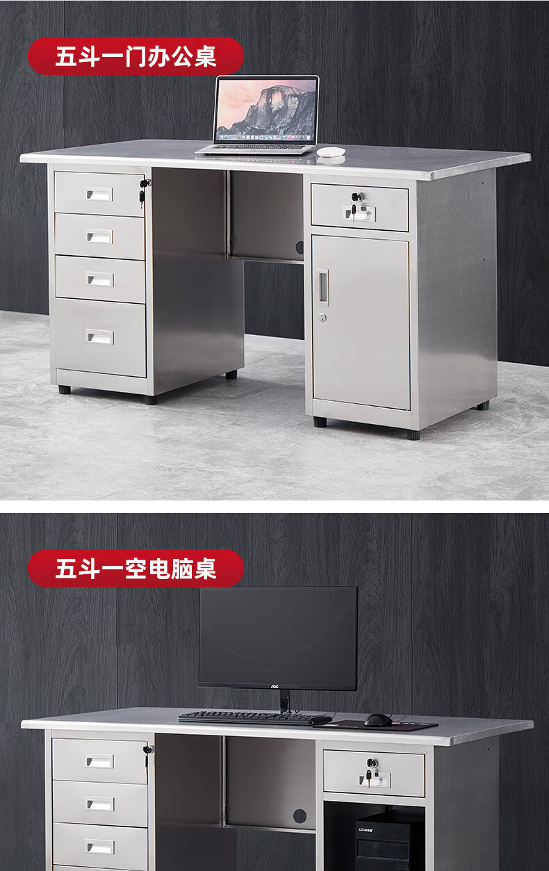 304 stainless steel desk office computer desk factory workshop console with drawer workbench cashier counter 1.2 meters five buckets and one door (304 material)