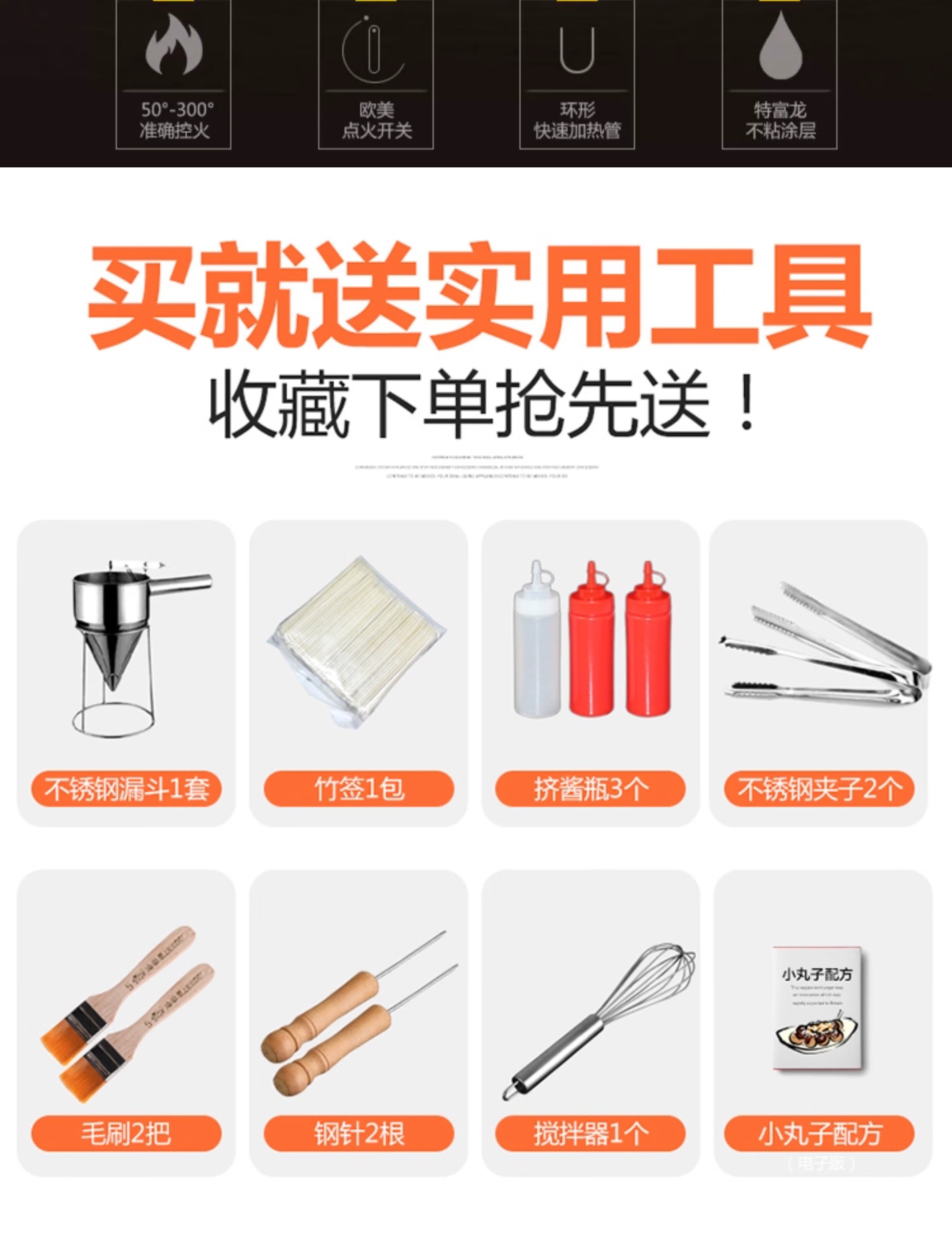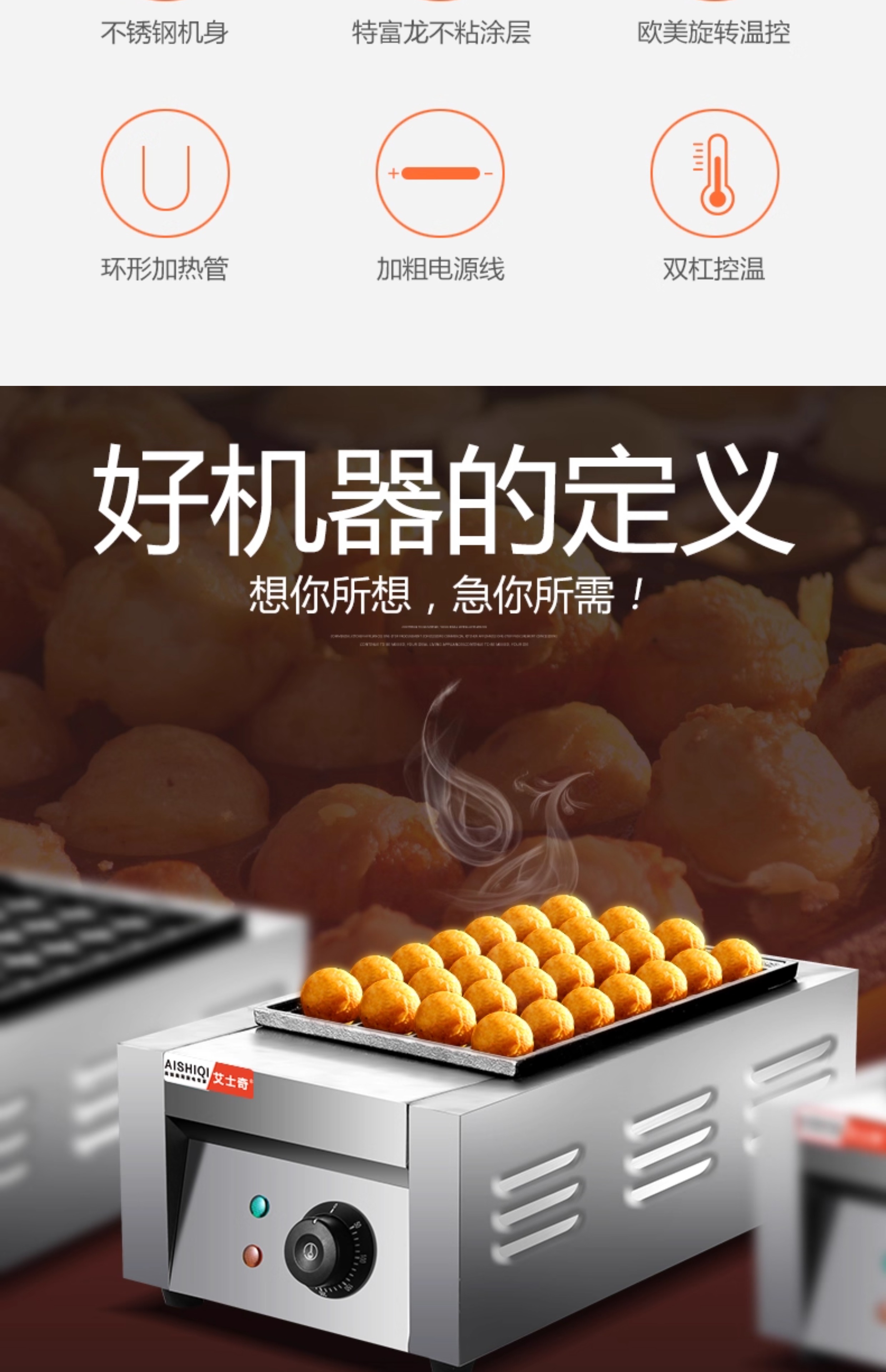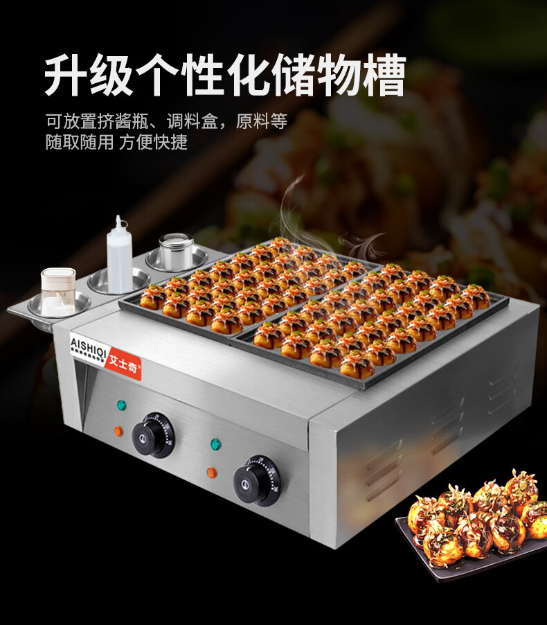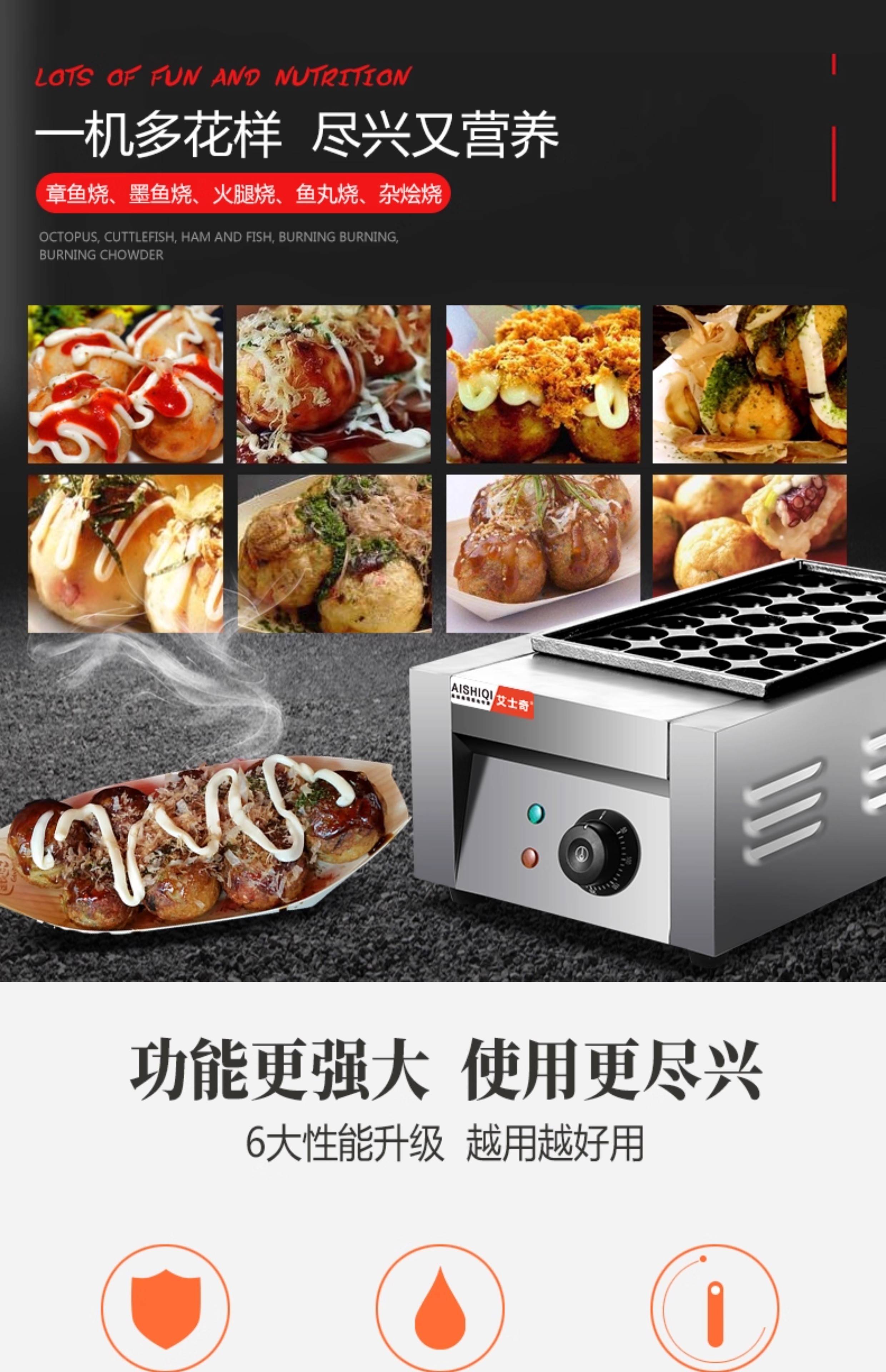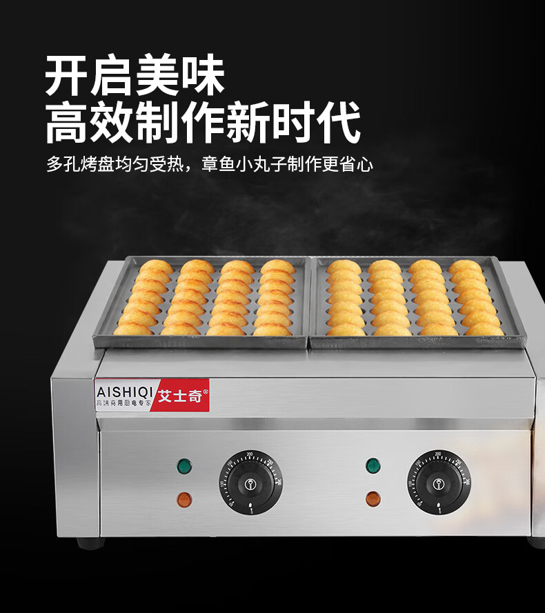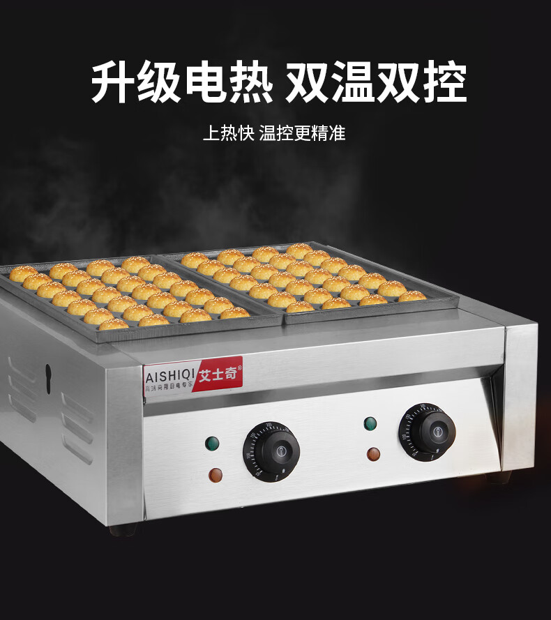 AISHIQI AISHIQI octopus meatball machine fish ball stove commercial octopus grill machine electric stall octopus meatball stove double plate double-head electric fish ball stove (cast iron + Teflon plate)