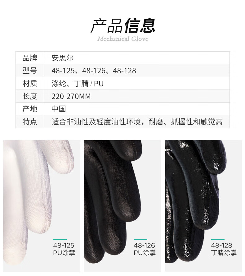 Ansell EDGE polyester PU palm-coated black gloves, wear-resistant and tear-resistant, 12 pairs/bag 8