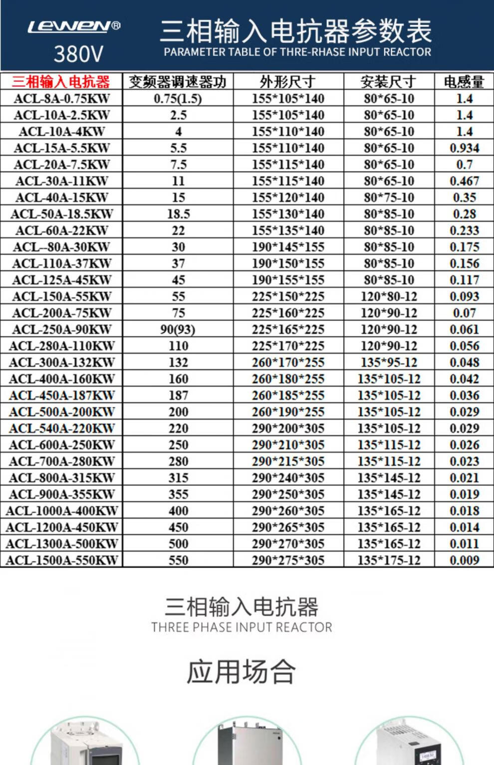 Three-phase ACL input incoming line reactor OCL output outgoing line reactor dedicated for inverter 1.5KVA-400KW ACL-8A-1.5KW