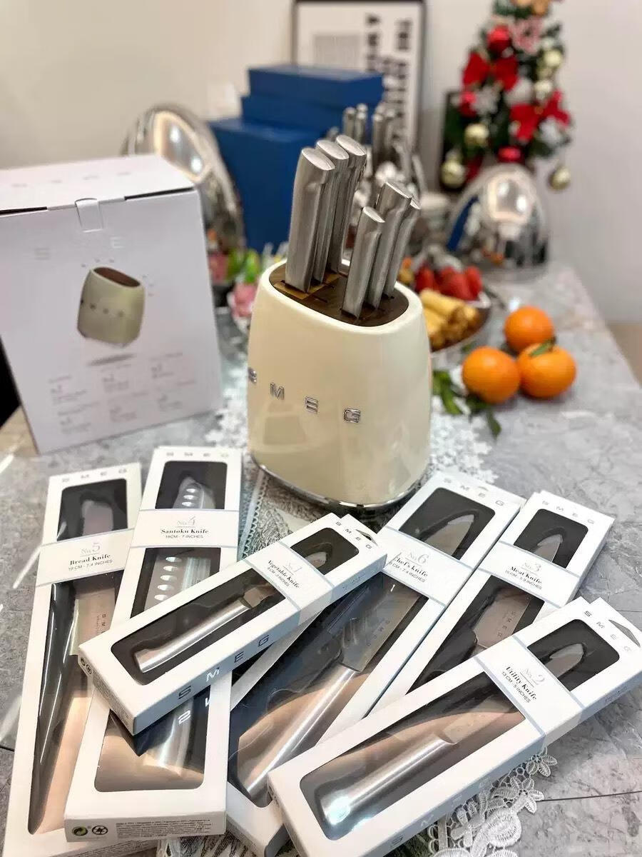 SMEG kitchen knife set combination seven-piece kitchen knife household fruit knife auxiliary food knife kitchen kitchen utensils milky white