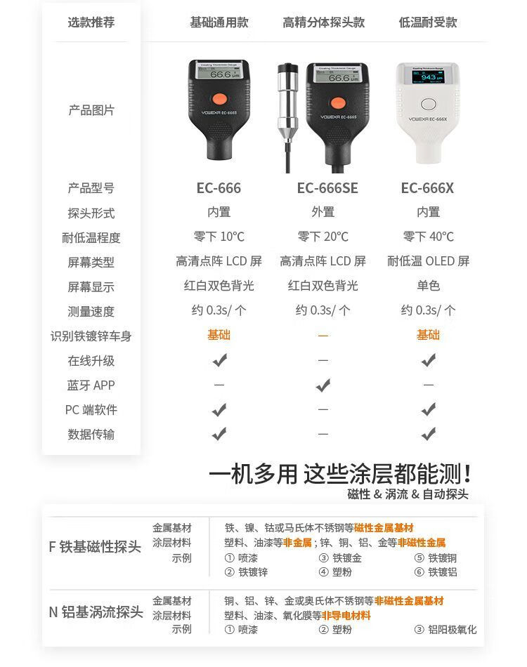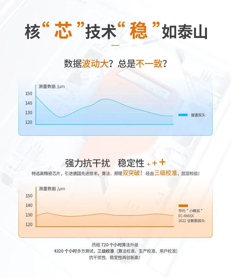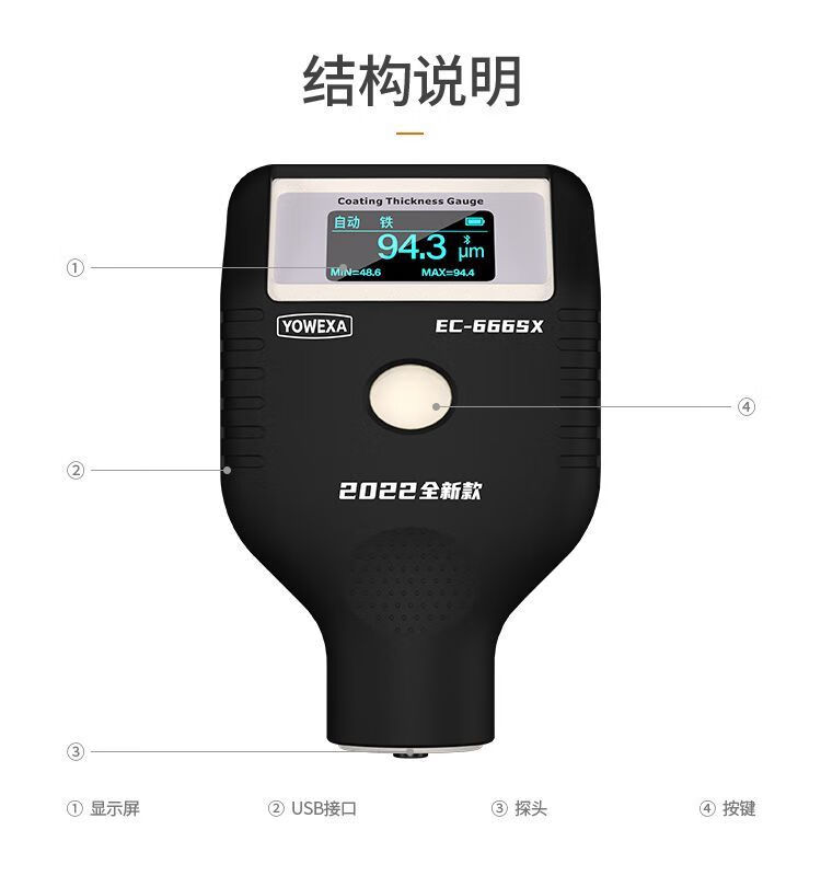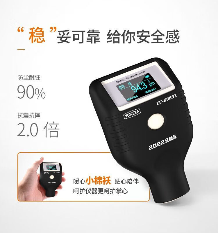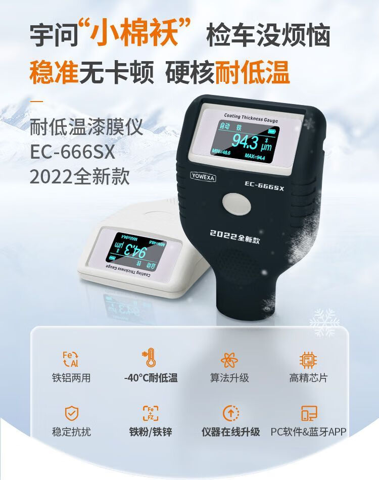 Mo Peng paint film meter Yuwen automotive coating thickness measurement Bluetooth high-precision putty powder detection galvanizing EC666SX low temperature coating thickness gauge
