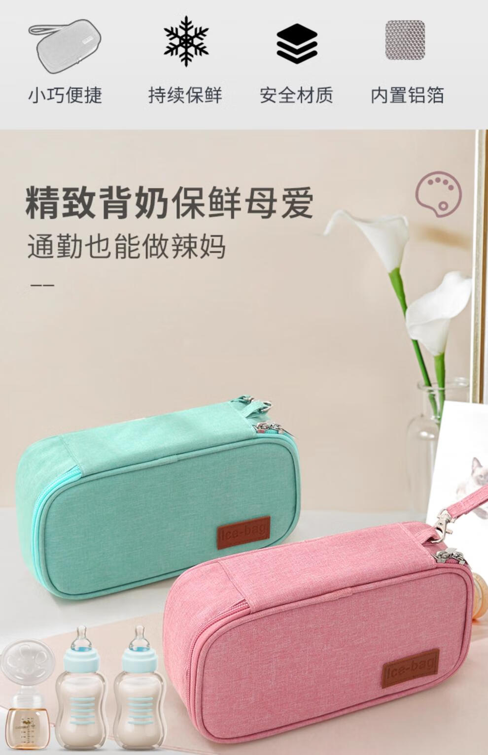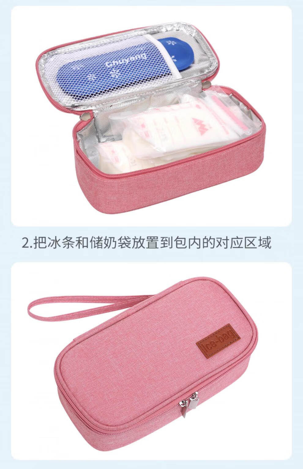 Fat Donglai's same style portable cooler box mini small milk bag for working mommy breast milk insulation bag insulin ice rose powder + 2 ice bags (can hold 3 bags of 150ml breast milk) 1 milk bag