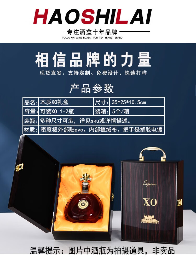 Spot xo wine box Hennessy blueberry wine ice wine Tiger King wine wooden gift box health wine packaging gift box custom 700ml gourd bottle