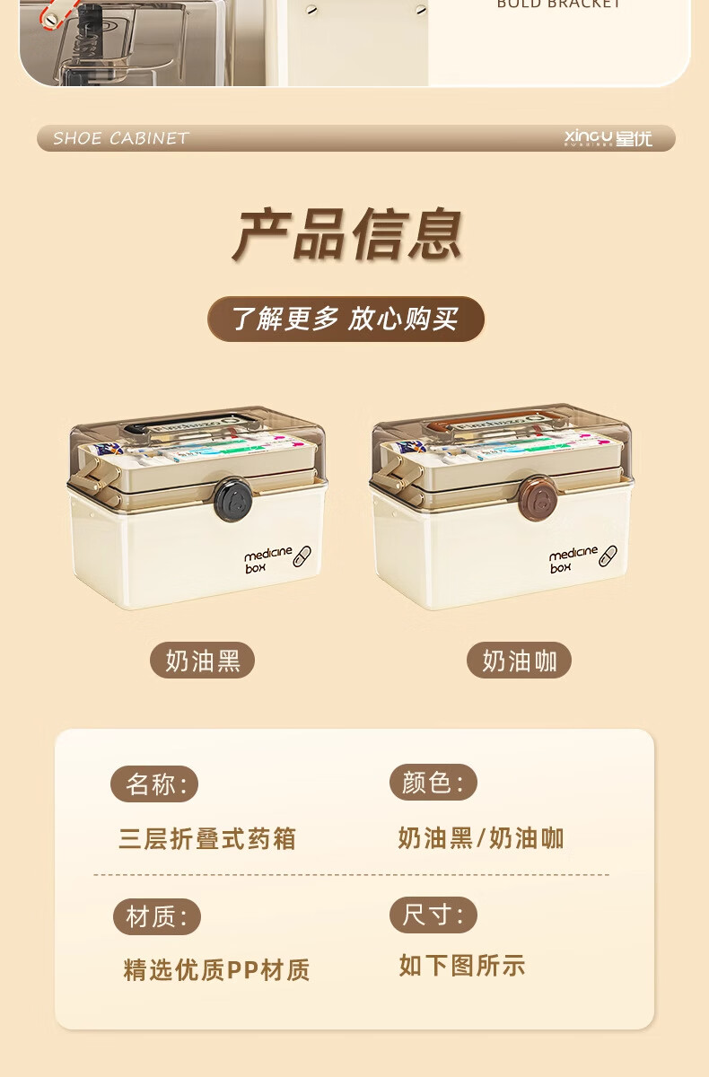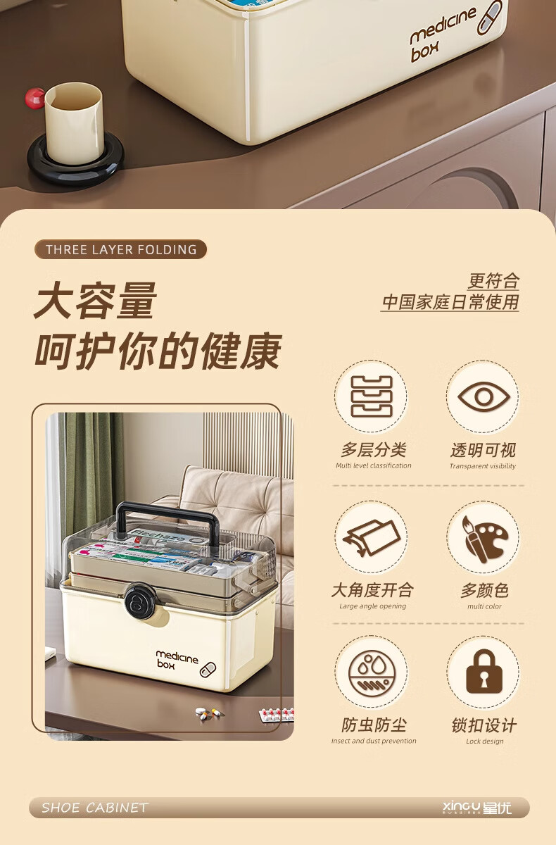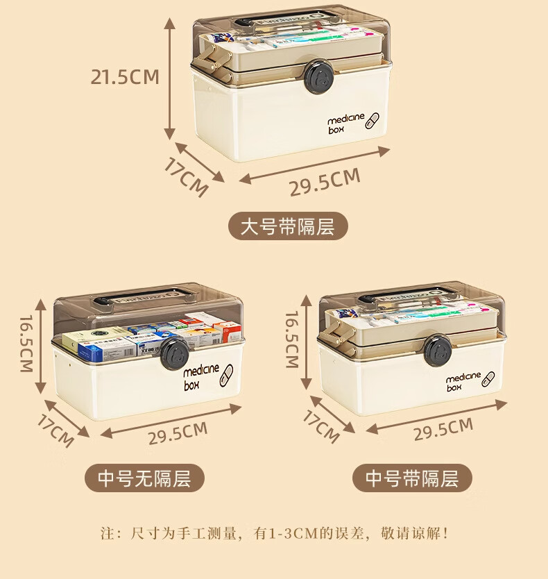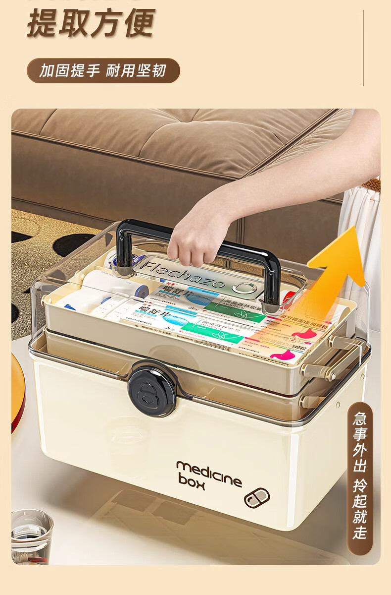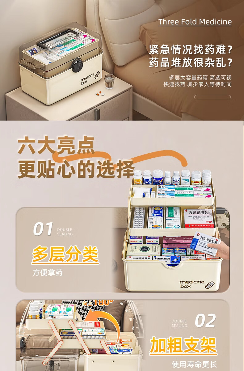 OSKV medicine box medicine storage box extra large dormitory home medicine box portable large capacity multi-layer with handle child-proof with lock cream coffee-large size-with compartment