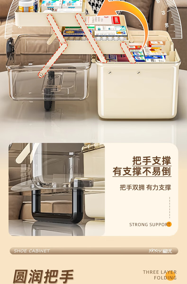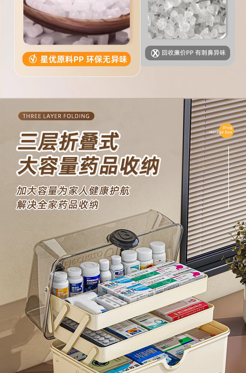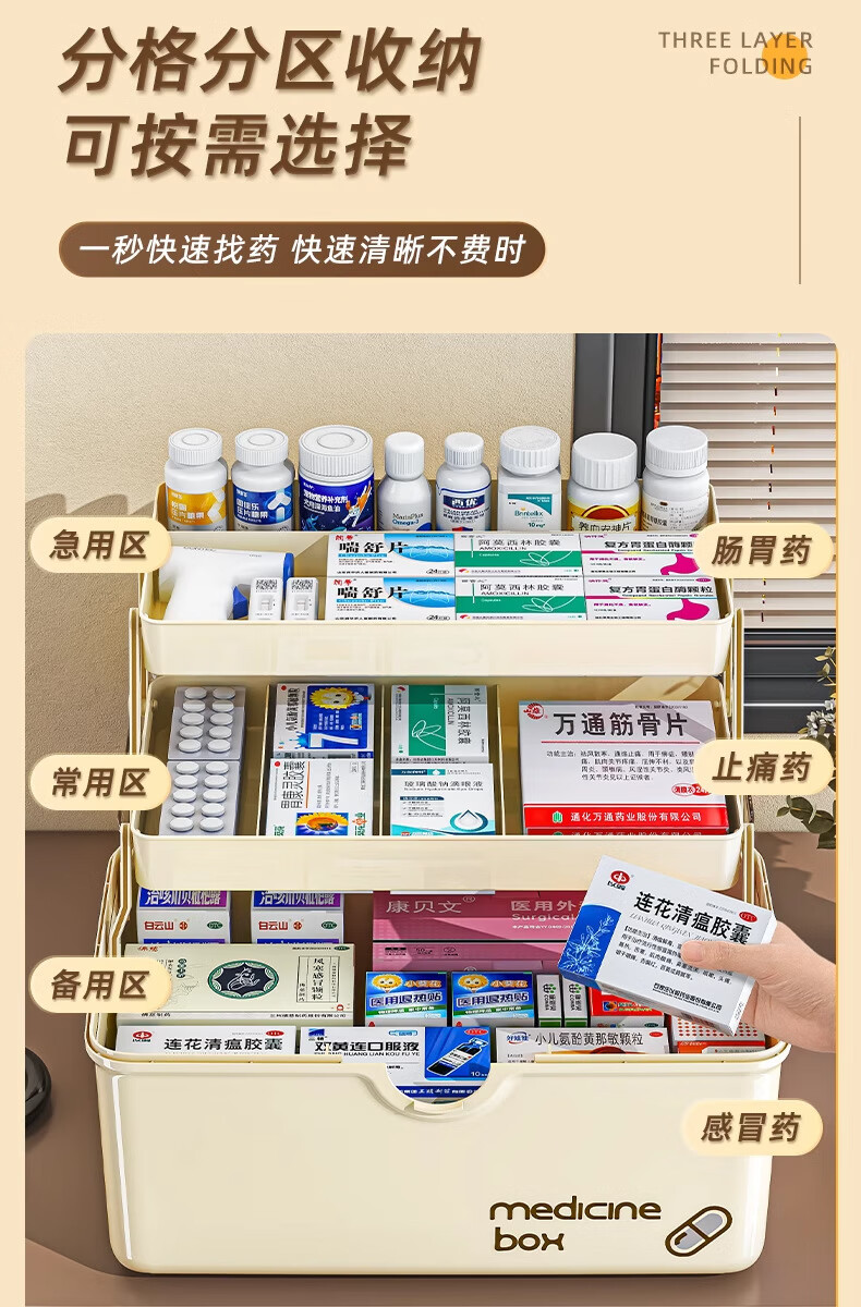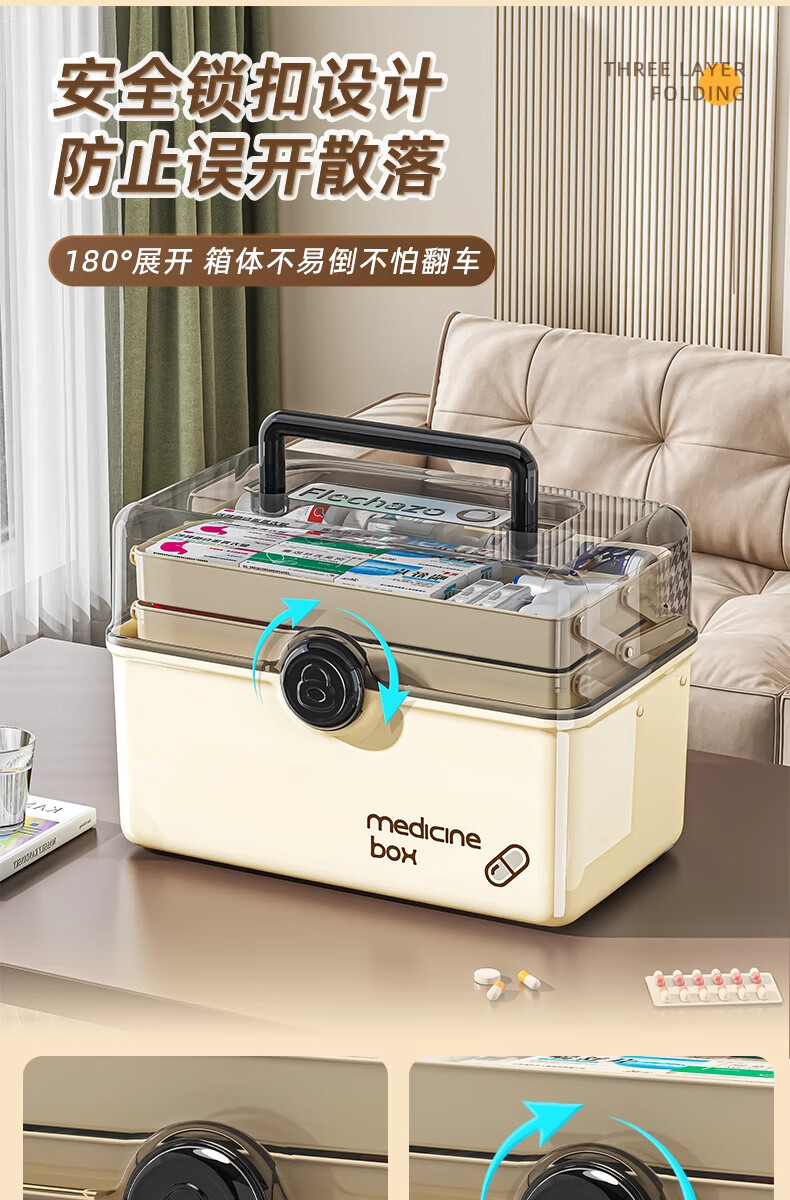 OSKV medicine box medicine storage box extra large dormitory home medicine box portable large capacity multi-layer with handle child-proof with lock cream coffee-large size-with compartment
