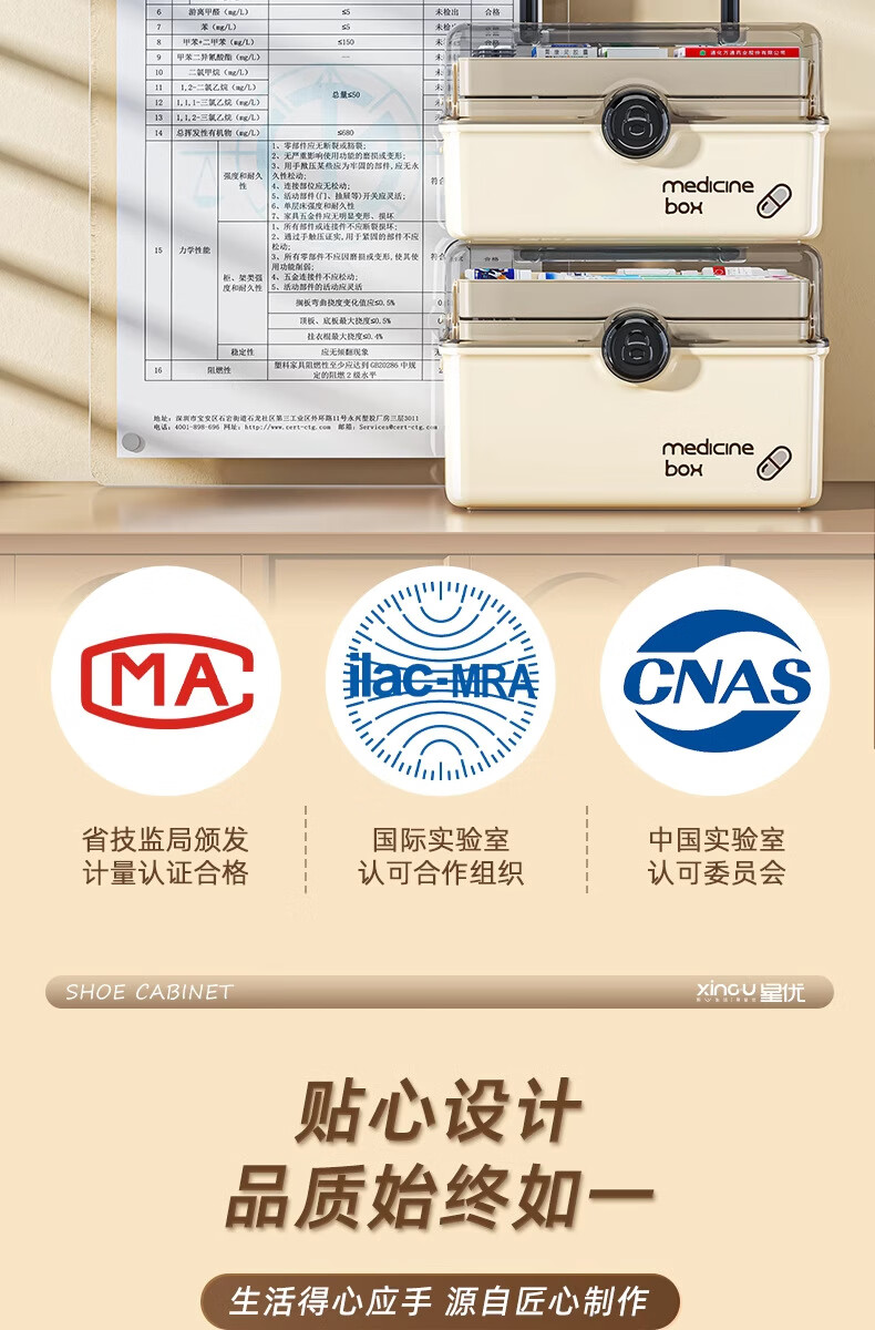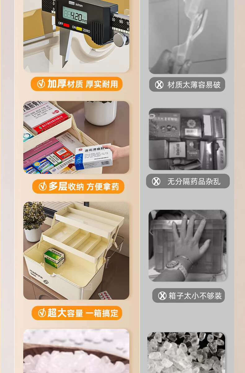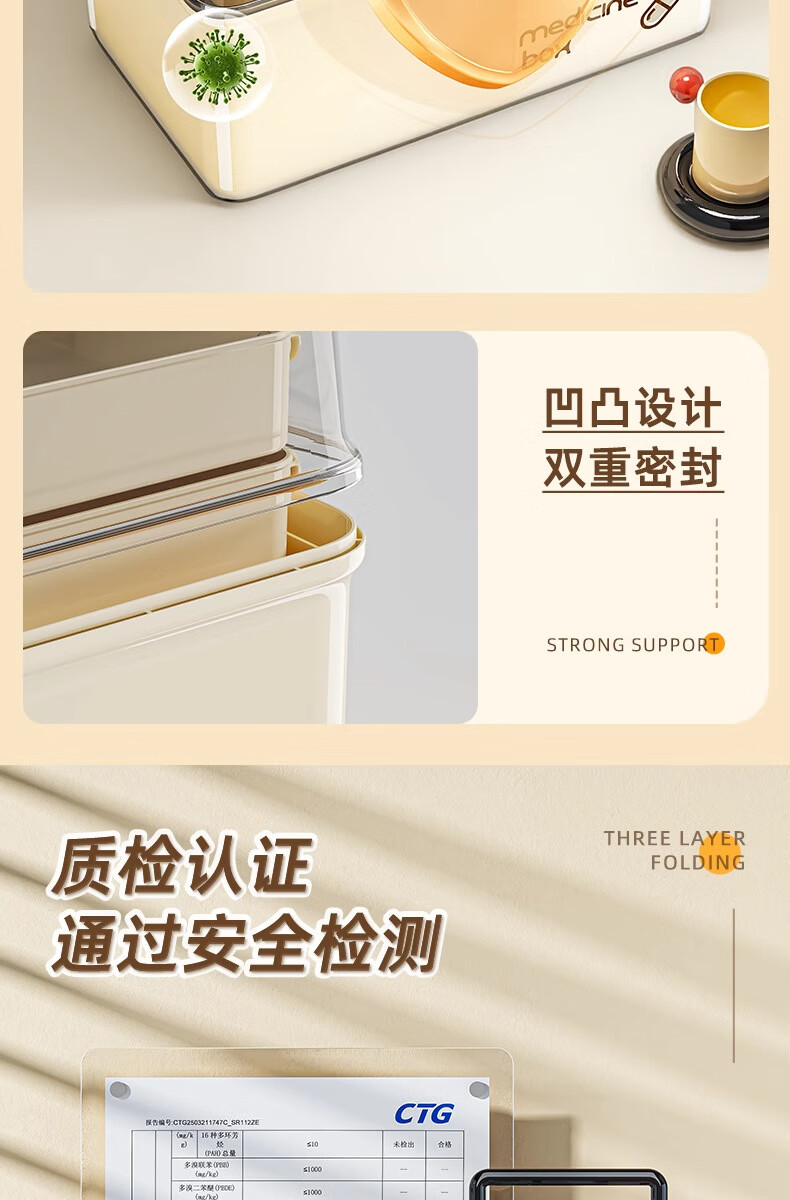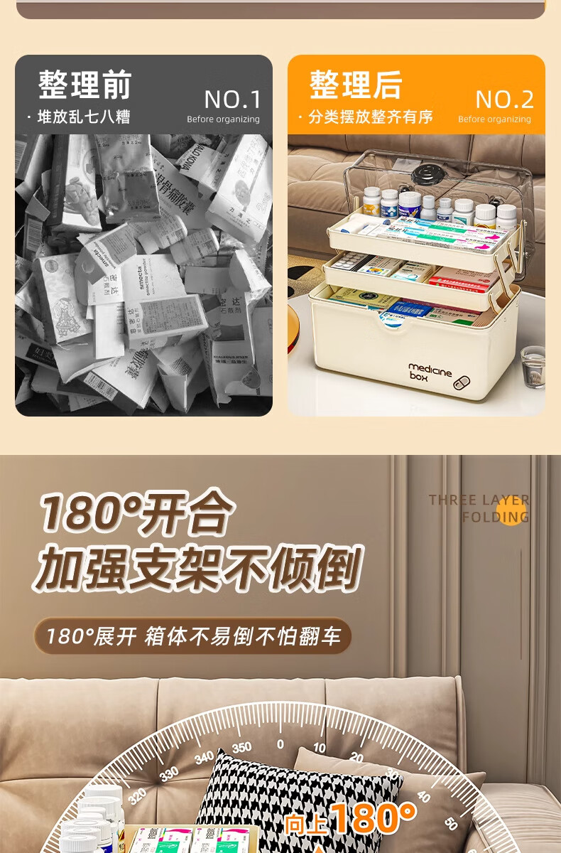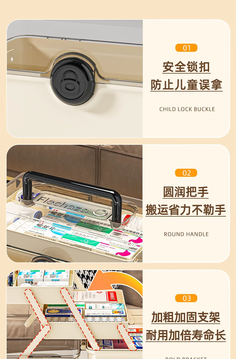 OSKV medicine box medicine storage box extra large dormitory home medicine box portable large capacity multi-layer with handle child-proof with lock cream coffee-large size-with compartment