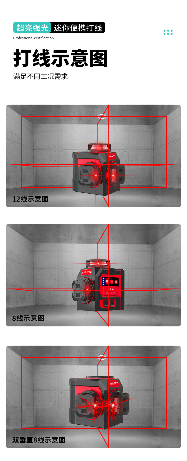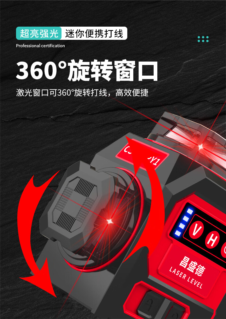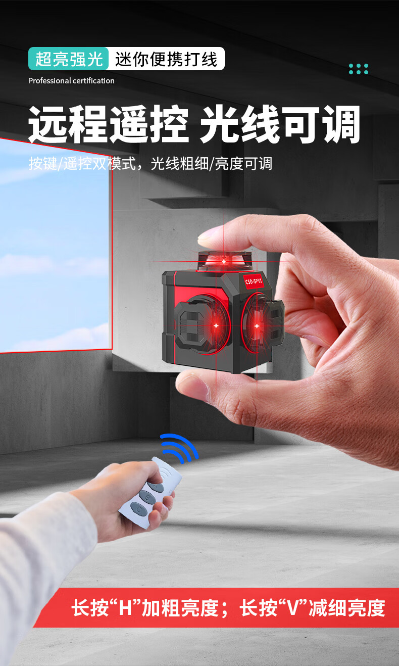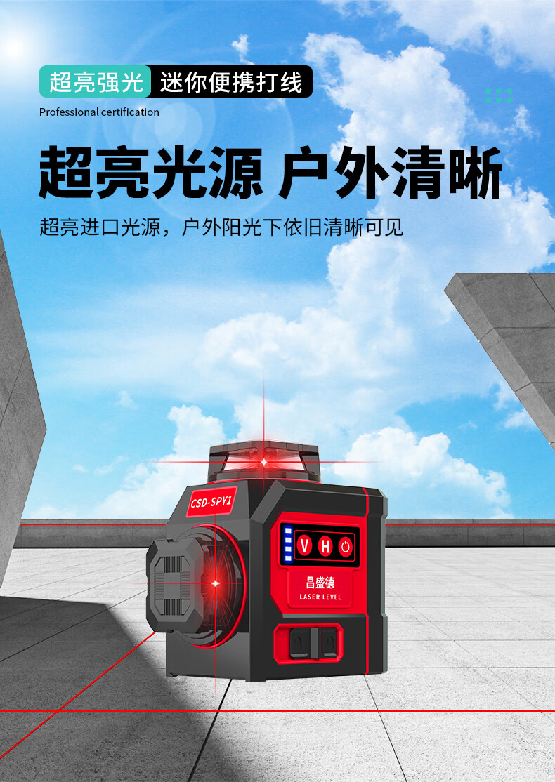 Changshengde small level mini red light 8-line 12-line high-precision strong light thin-line infrared laser wall-mounting instrument for wall building lower level red light 12-line single electric movable model