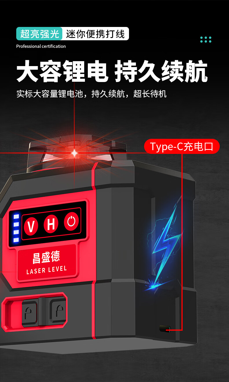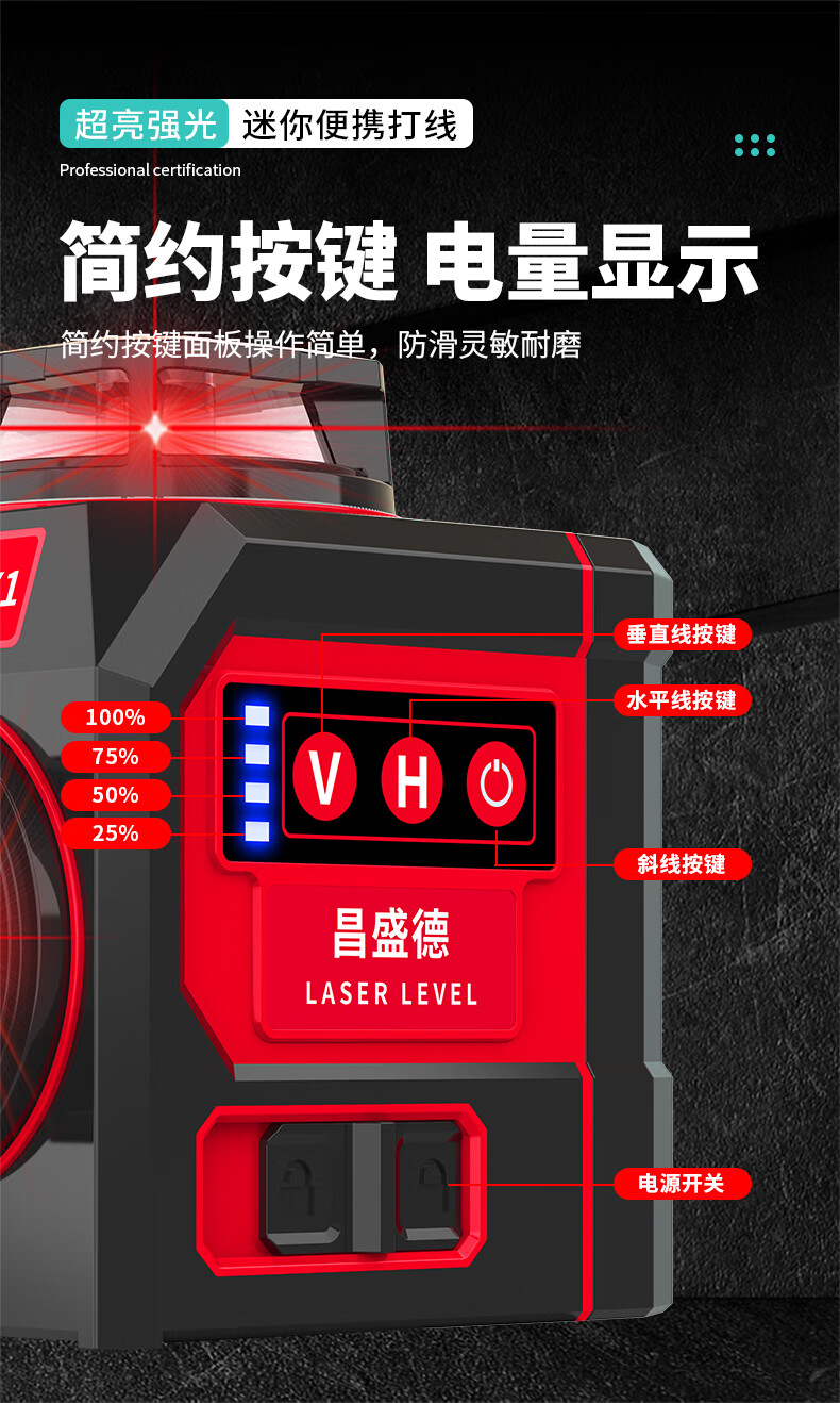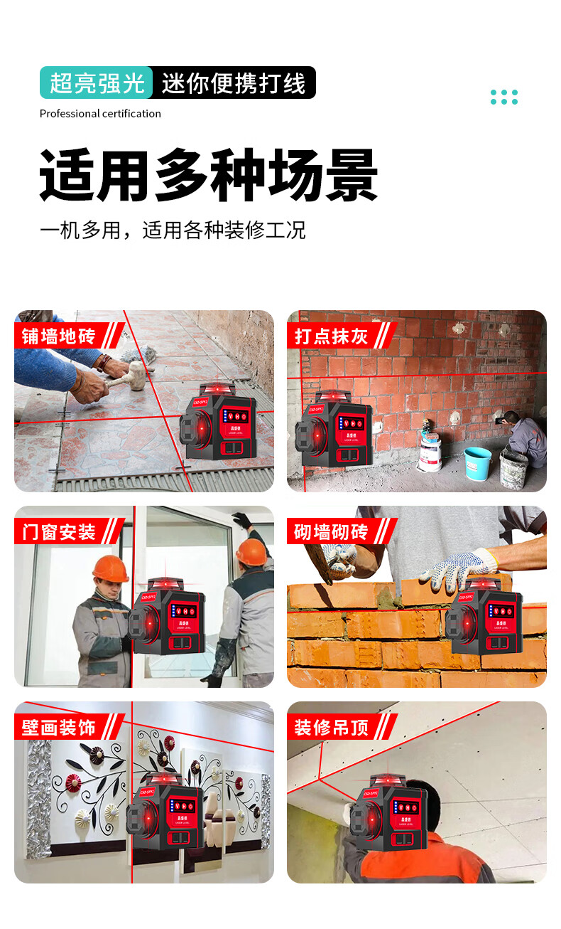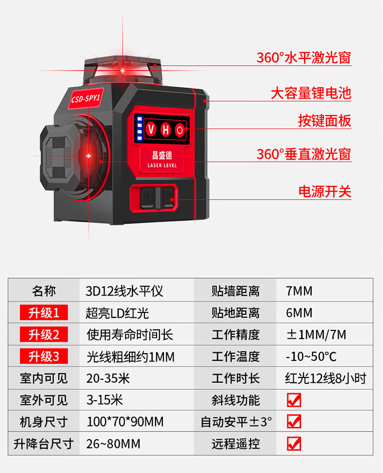 Changshengde small level mini red light 8-line 12-line high-precision strong light thin-line infrared laser wall-mounting instrument for wall building lower level red light 12-line single electric movable model