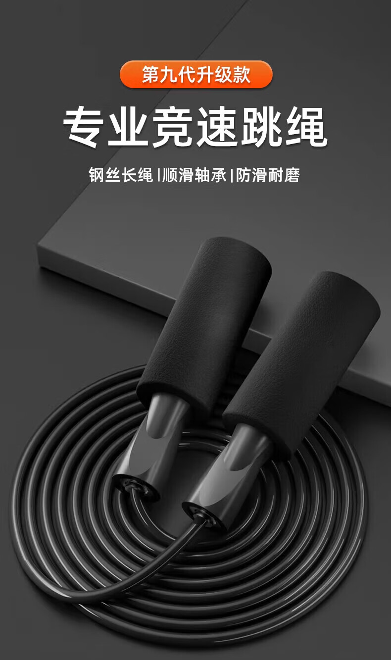 Xulin German skipping rope for weight loss, special for weight-bearing adults for weight-bearing men, non-knotted bearing steel wire for fitness, training doubled, high-speed bearing anti-slip handle, black
