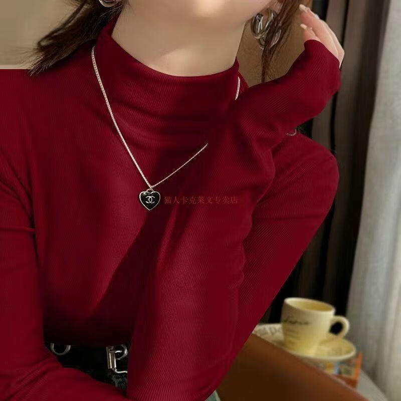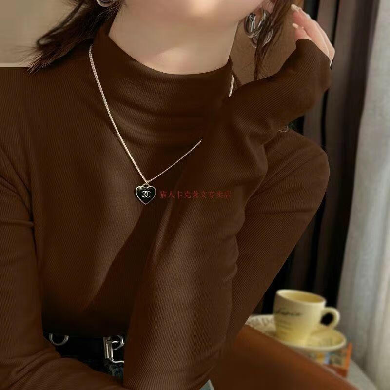 Yalu half turtleneck double-sided German velvet bottoming shirt for women 2025 new autumn and winter long-sleeved velvet thickened warm top, apricot high quality solid color bottoming shirt L 105-120 catties