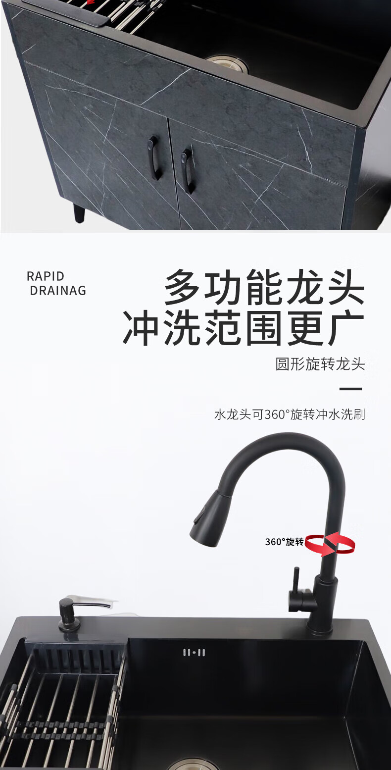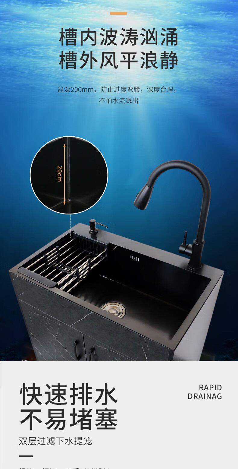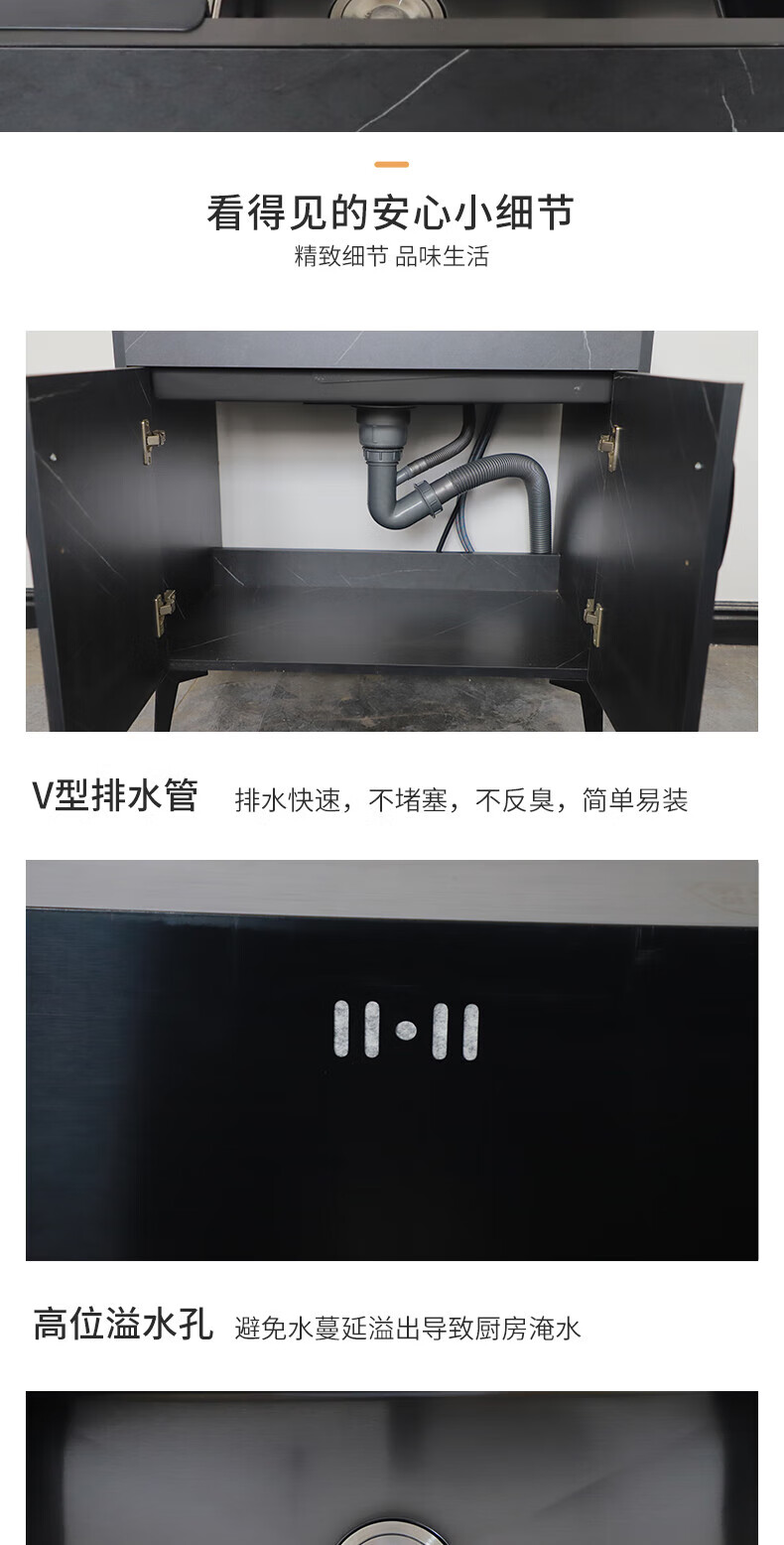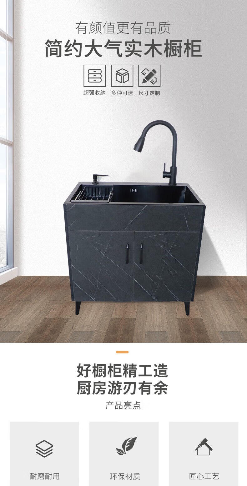 Aoyanlai kitchen sink integrated cabinet stainless steel sink household single and double sink floor-standing simple integrated cabinet with pure white 50*40cm black diamond single sink/no faucet