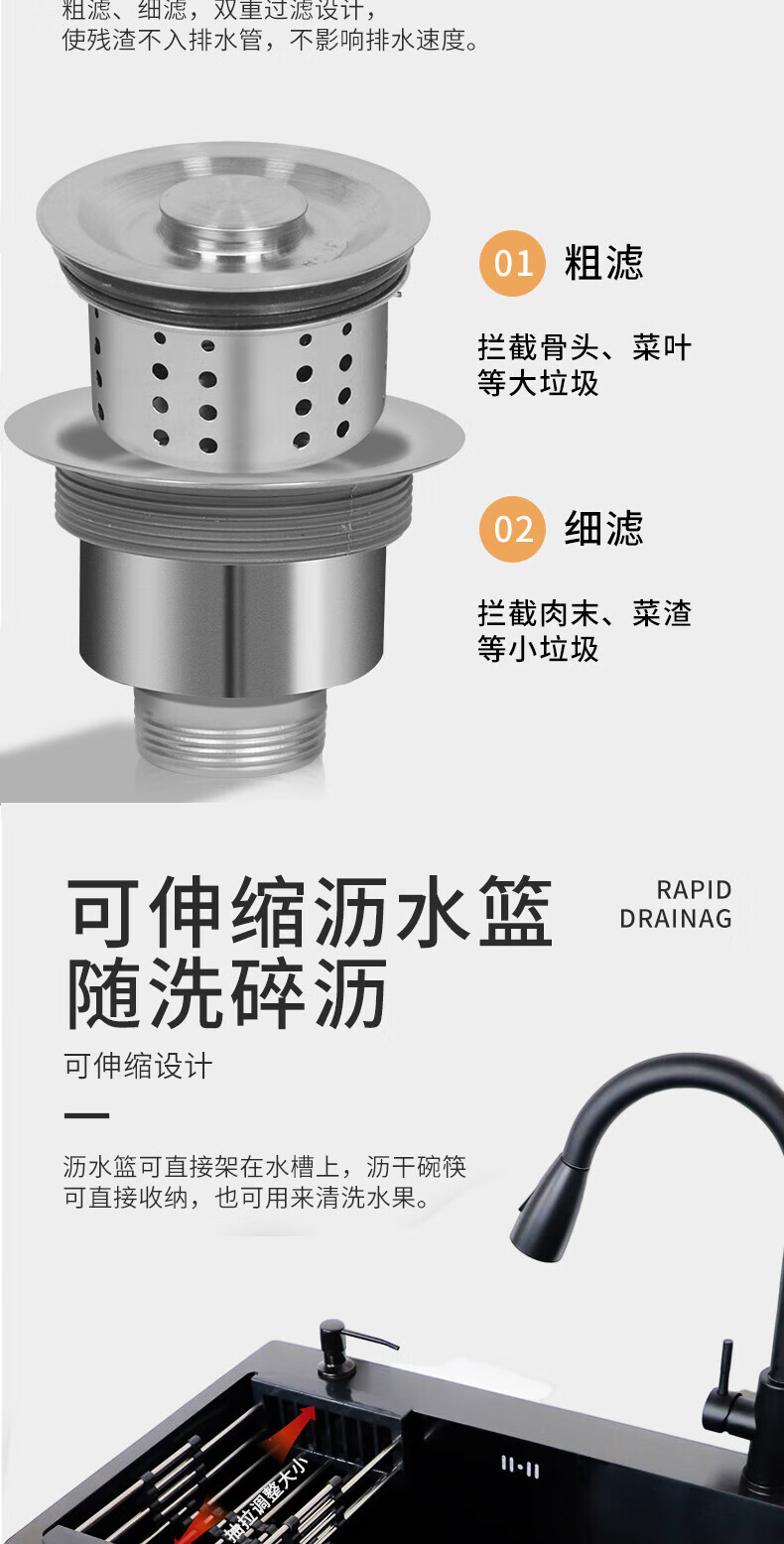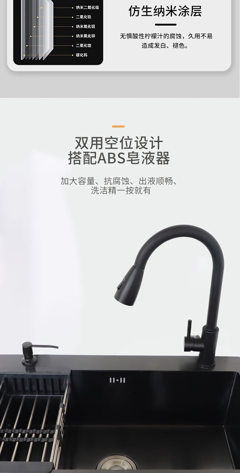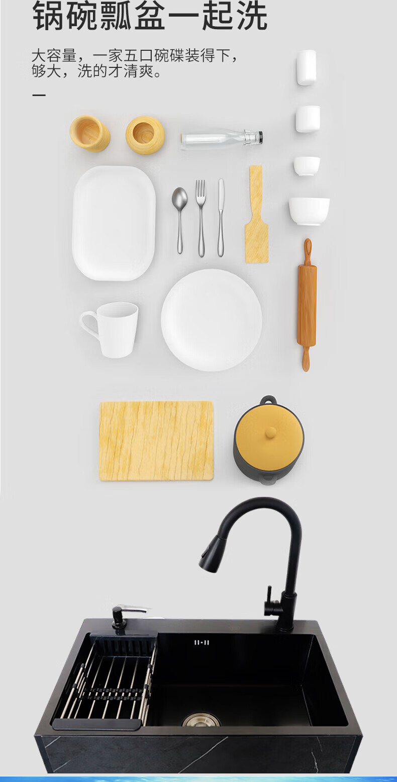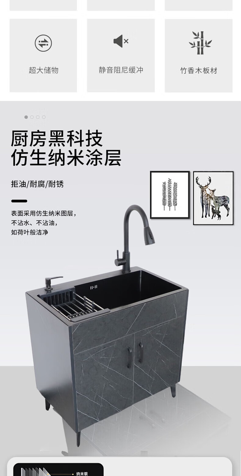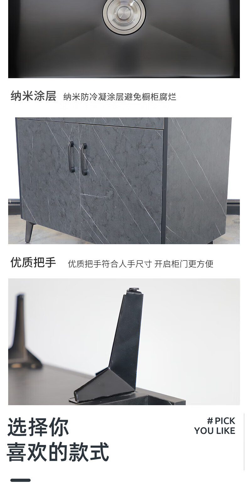 Aoyanlai kitchen sink integrated cabinet stainless steel sink household single and double sink floor-standing simple integrated cabinet with pure white 50*40cm black diamond single sink/no faucet