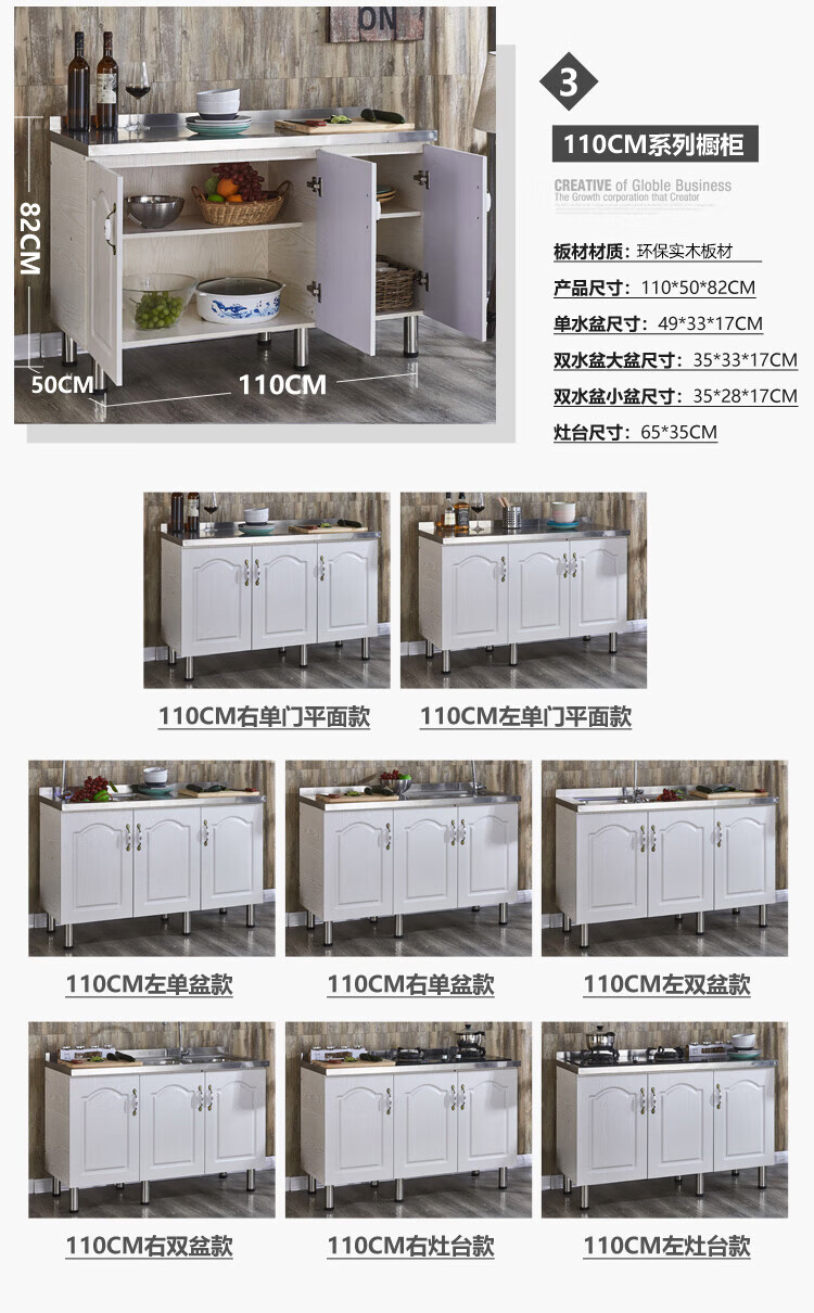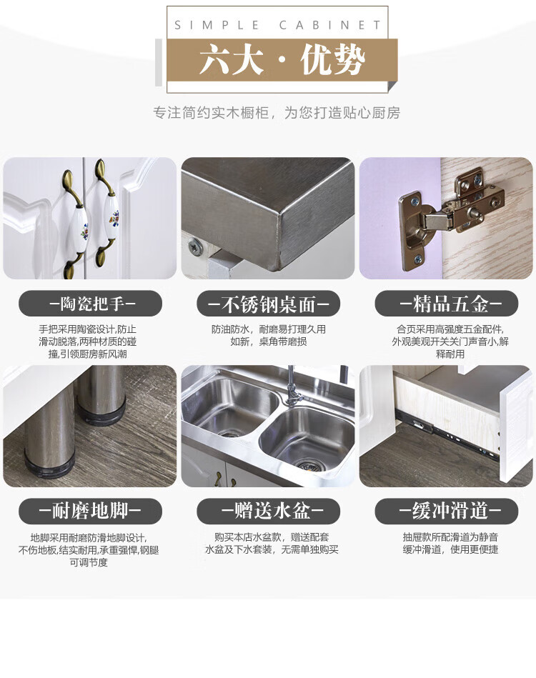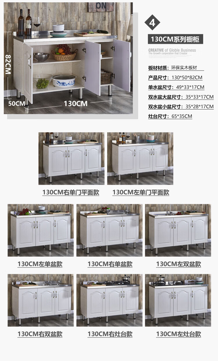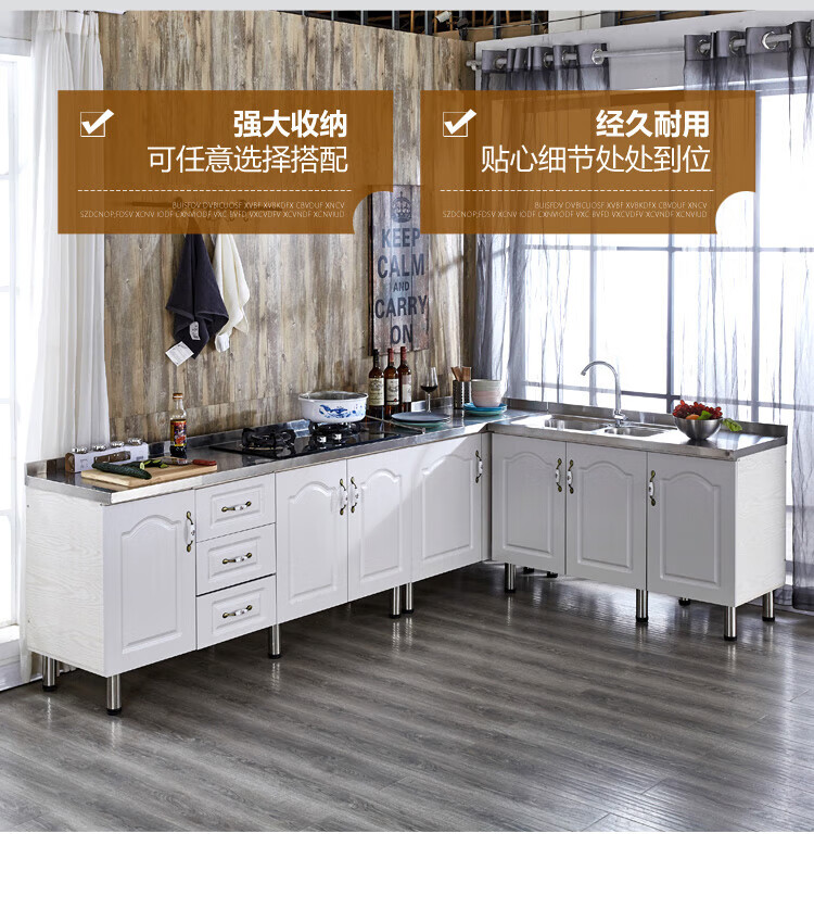 Aoyanlai kitchen integrated cabinet stove cabinet integrated household stainless steel economical dish cabinet simple storage integrated 160cm four-door flat model