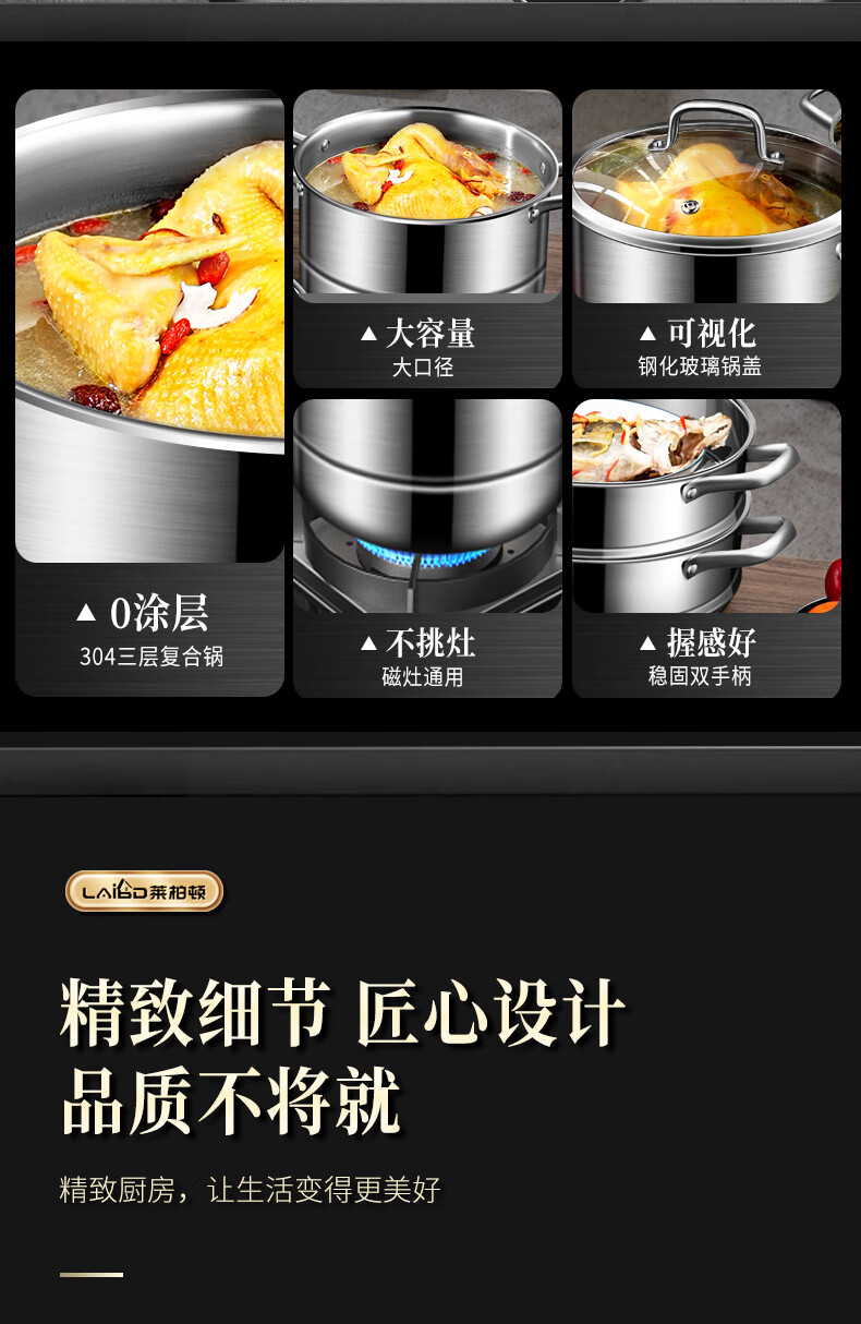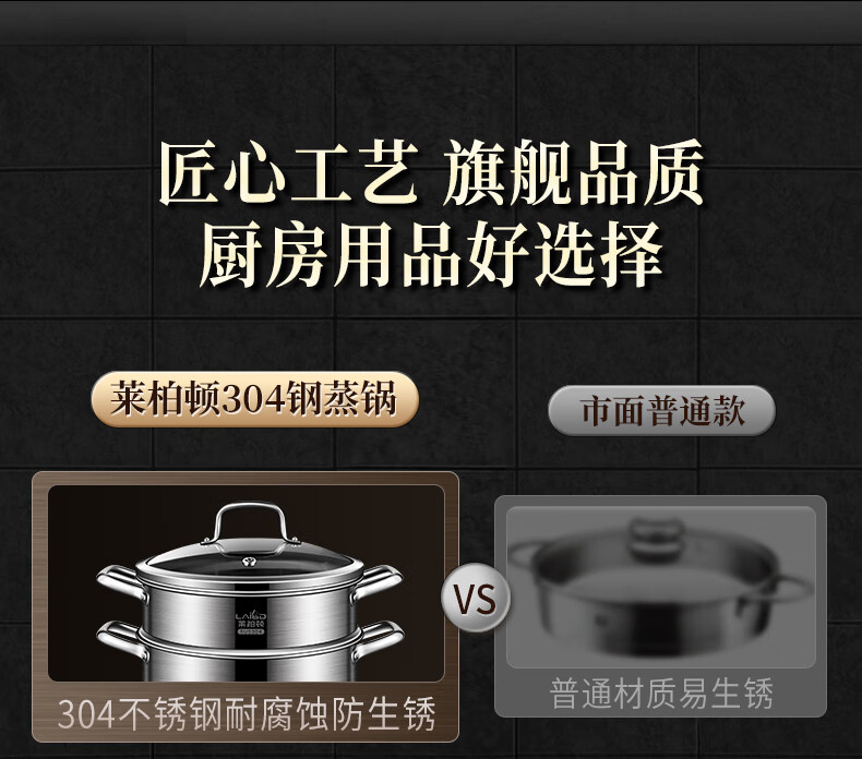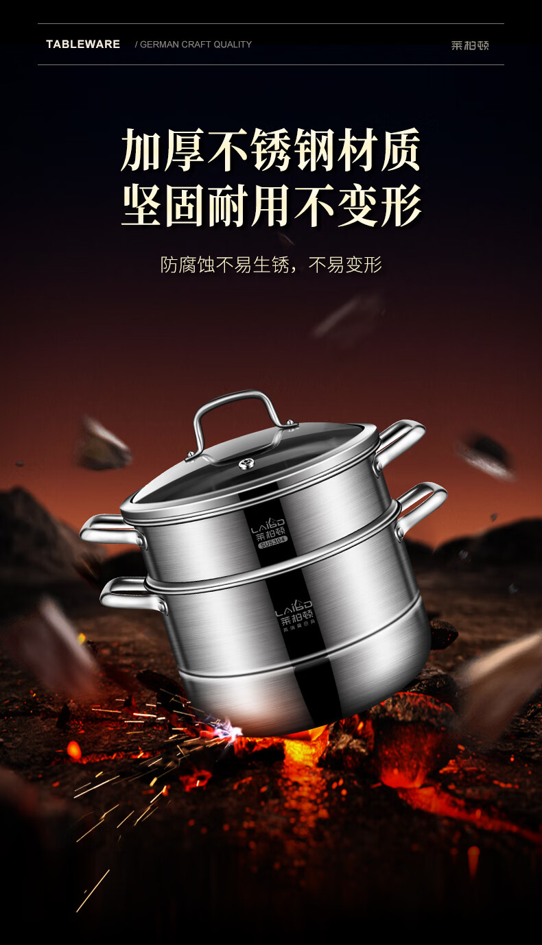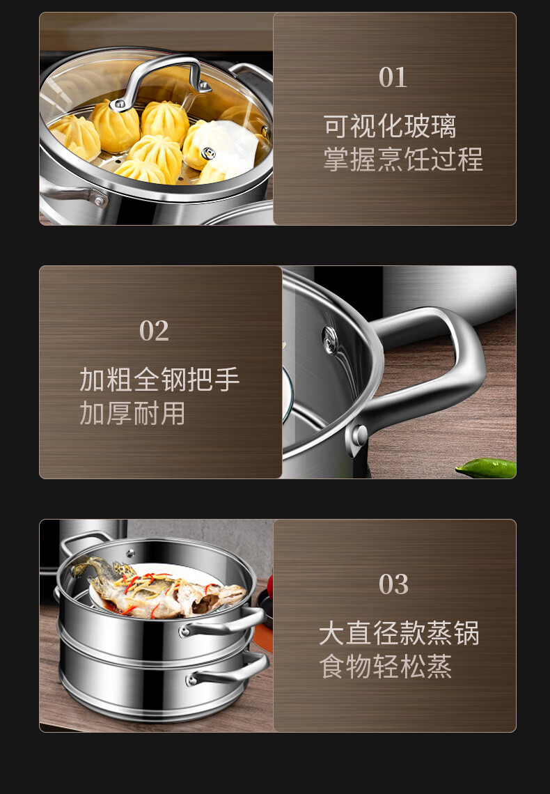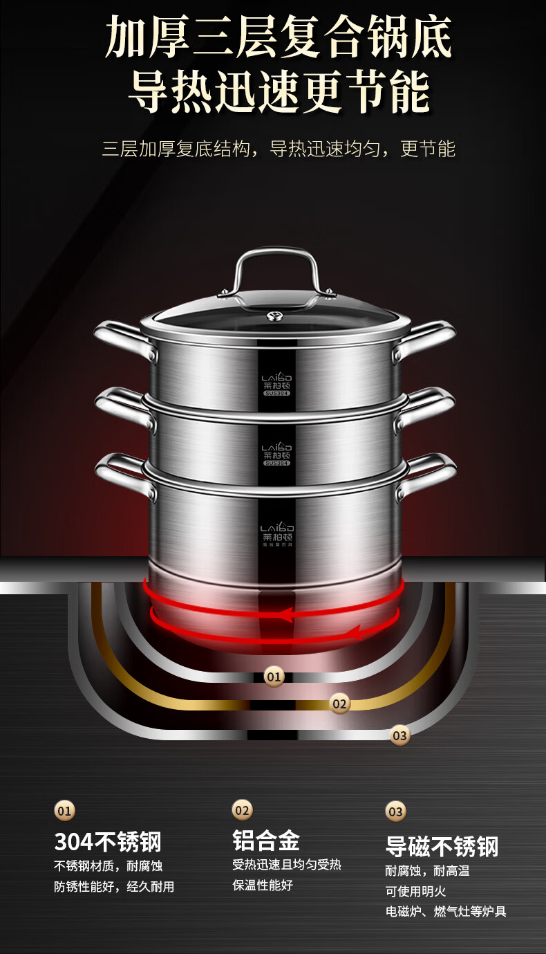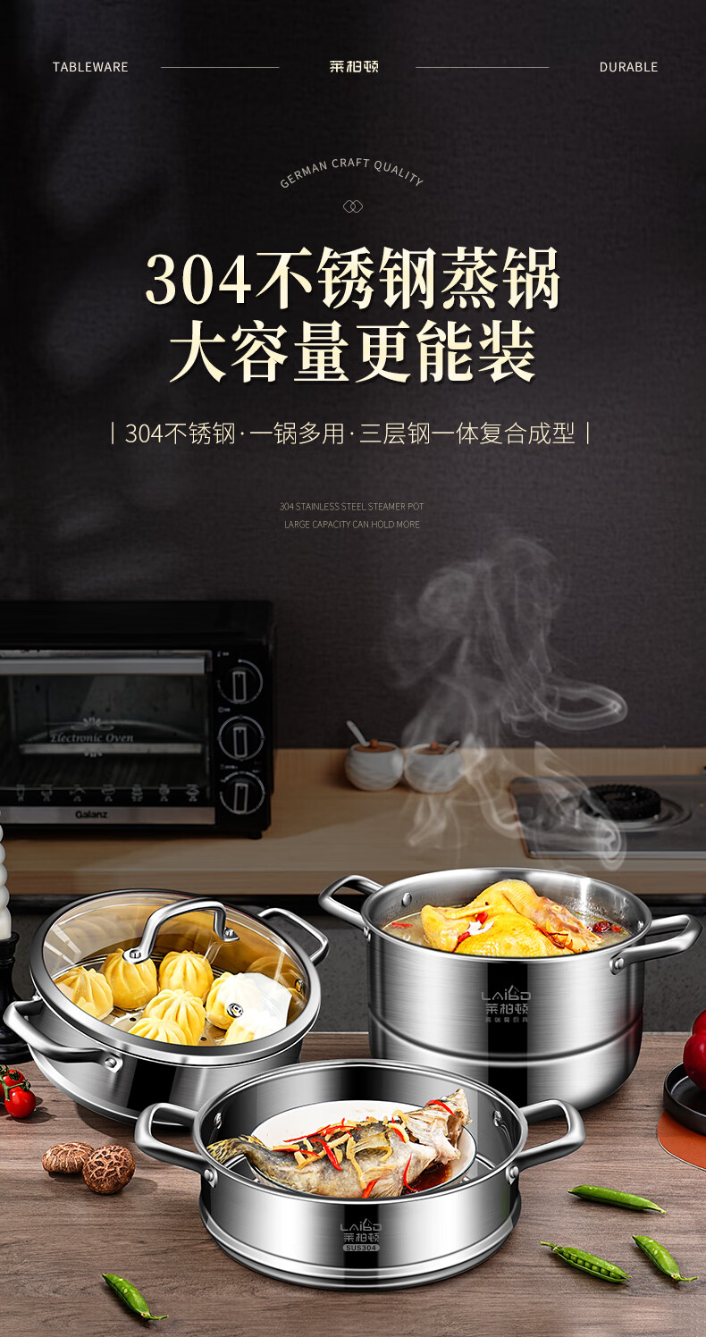 Labton 304 stainless steel steamer double-layer thickened steaming and cooking integrated soup pot with steamer steamer fish gas stove induction cooker universal 28cm three-layer steamer enlarged and thickened inner diameter 28cm