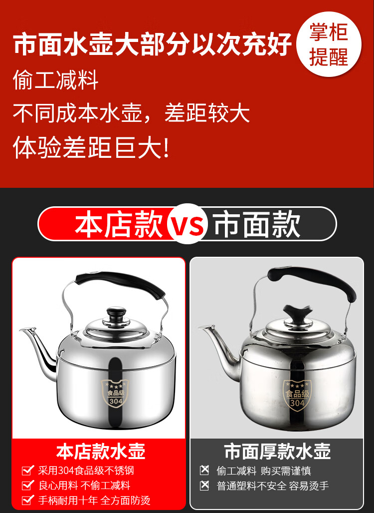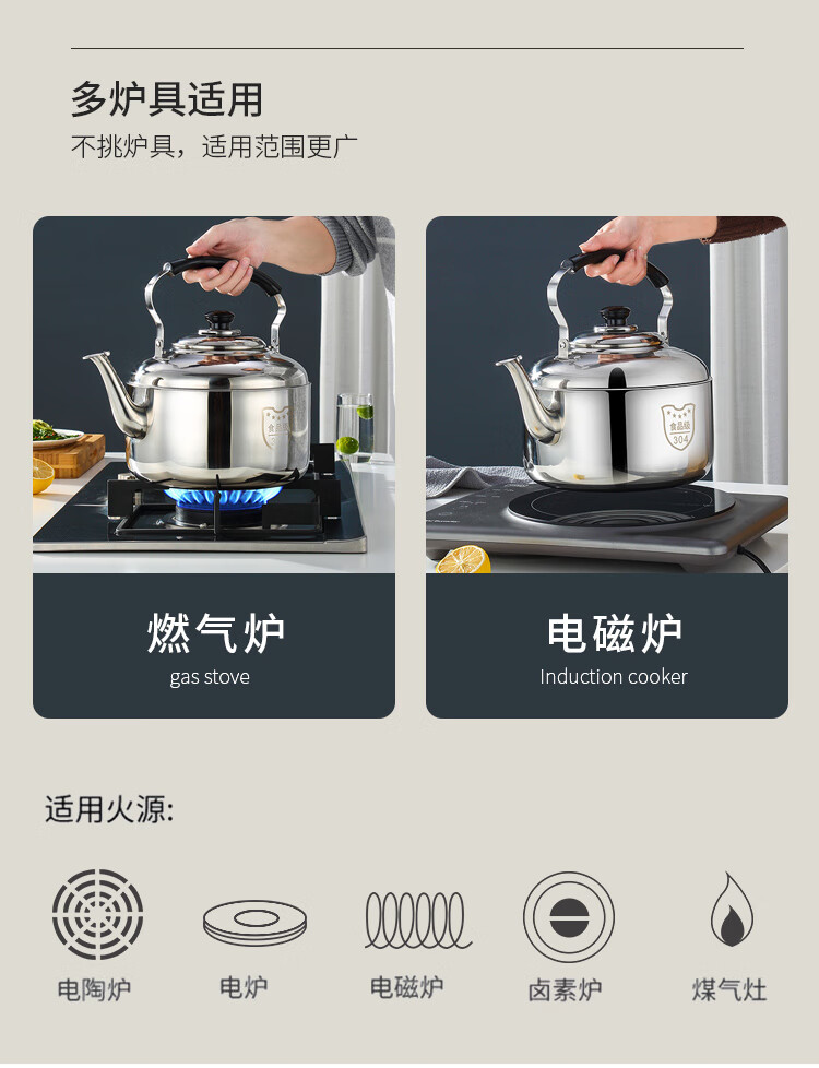 Mingyin kettle 304 stainless steel whistling large-capacity gas household hot water kettle open flame collection + shopping cart + scouring pad * 2 descaling agent * 2 0L 4L (inclusive)-6L (inclusive)