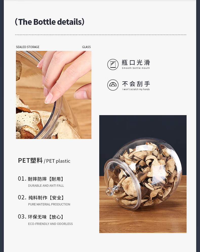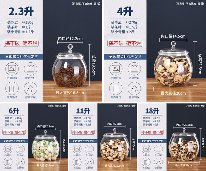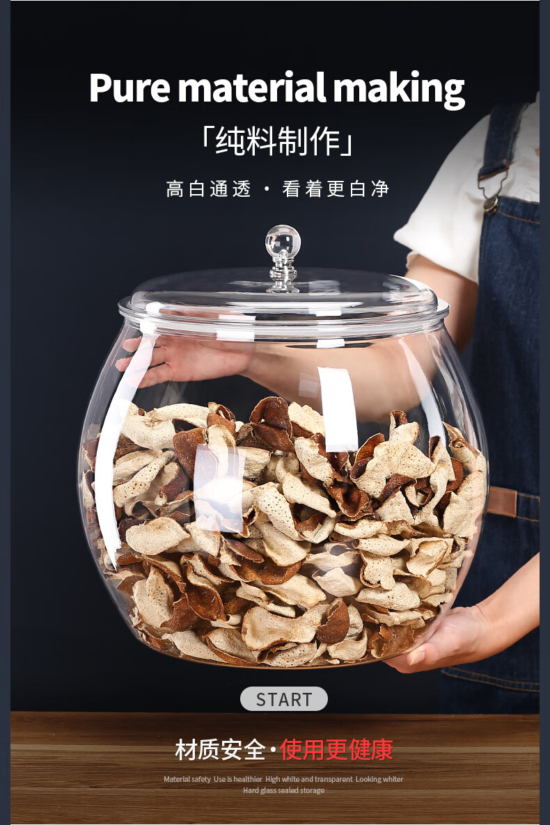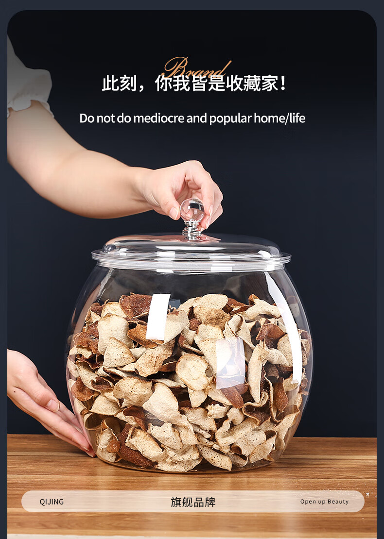 Qijing acrylic moisture-proof sealed jar thickened tangerine peel storage jar food grade small green orange storage jar display bottle tea jar 2.3 liter single bottle plastic sealed jar