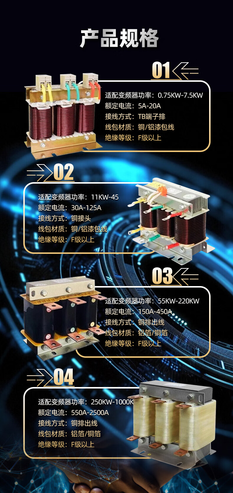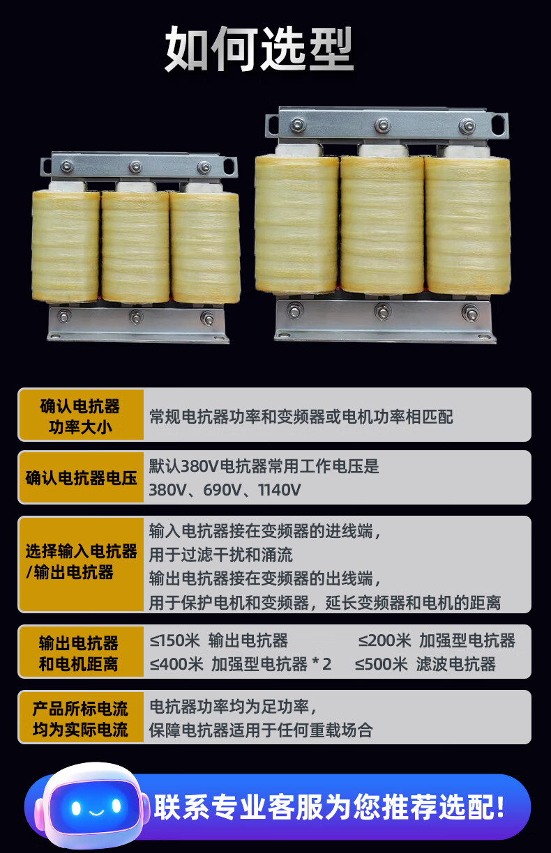 Three-phase inverter speed regulator dedicated incoming line input and outgoing line output reactor filter anti-interference 1000A matching inverter power 380-400W input reactor ACL