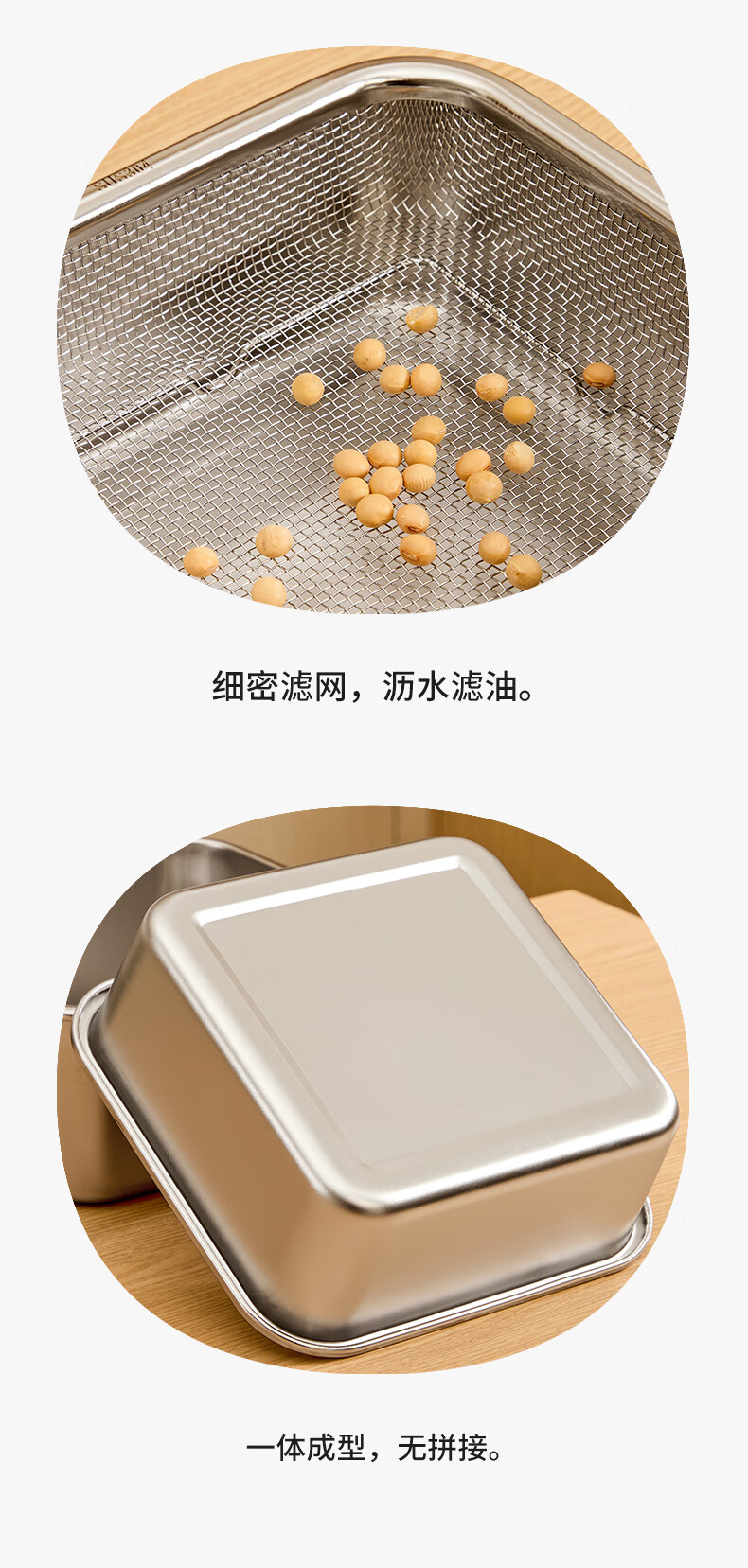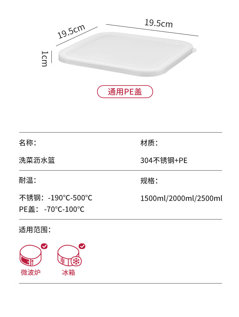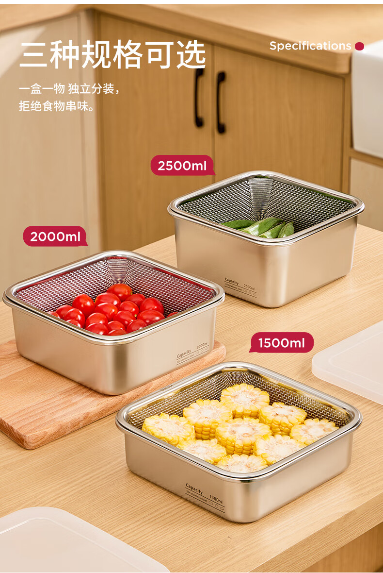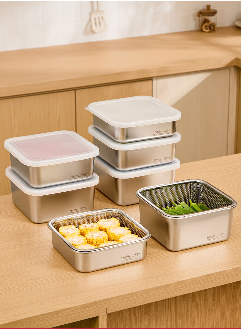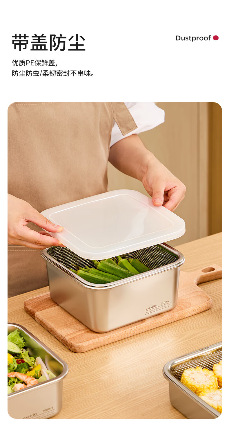 Shijanu stainless steel dish basin rectangular drain basket kitchen household vegetable preparation basin food grade thickened fruit washing drain basket family 1500ml 2000ml 2500ml