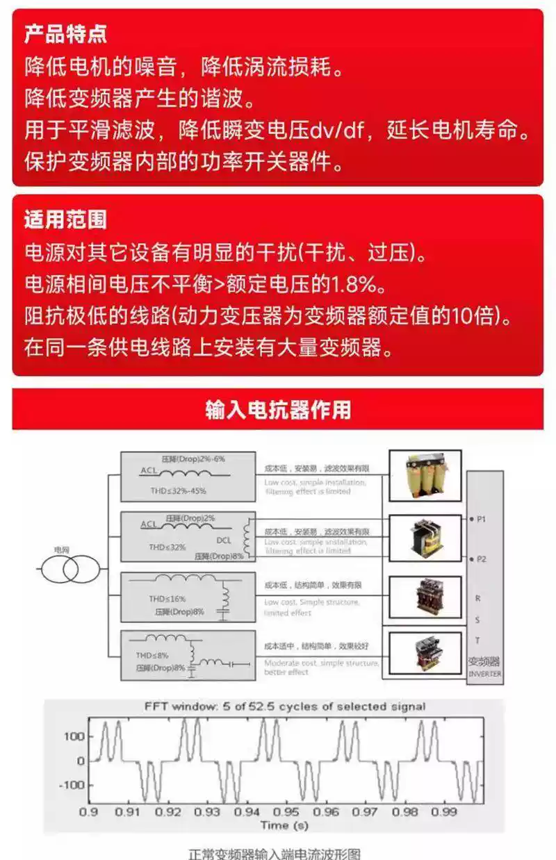 Three-phase output reactor, dedicated DC filter incoming line input reactor for inverter, copper wire input incoming line 75W200A