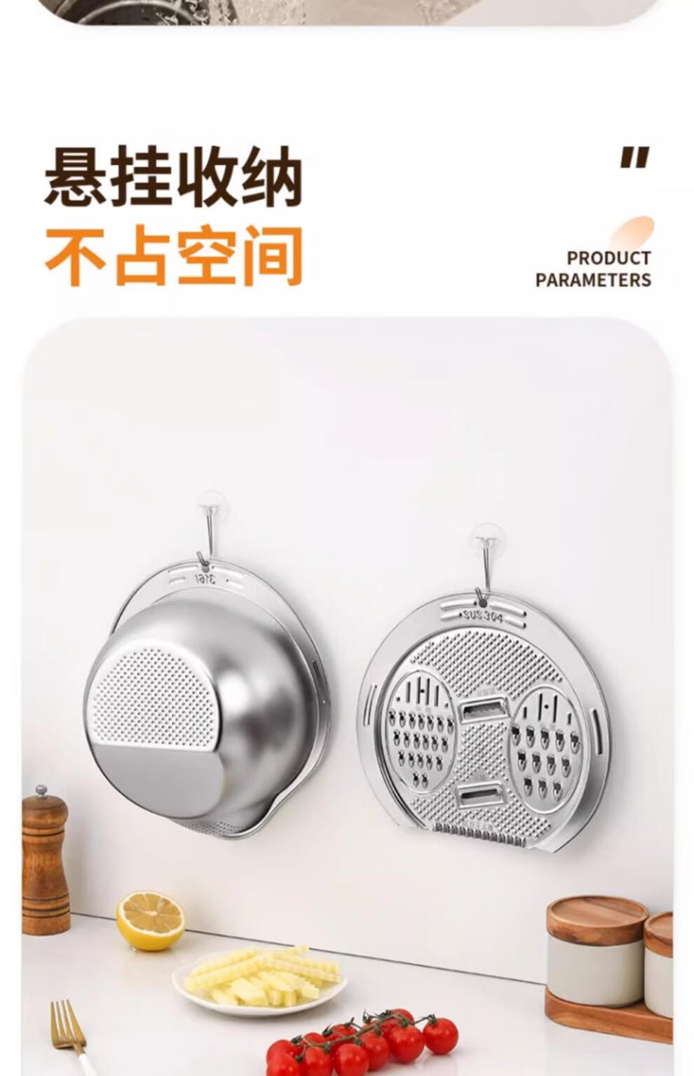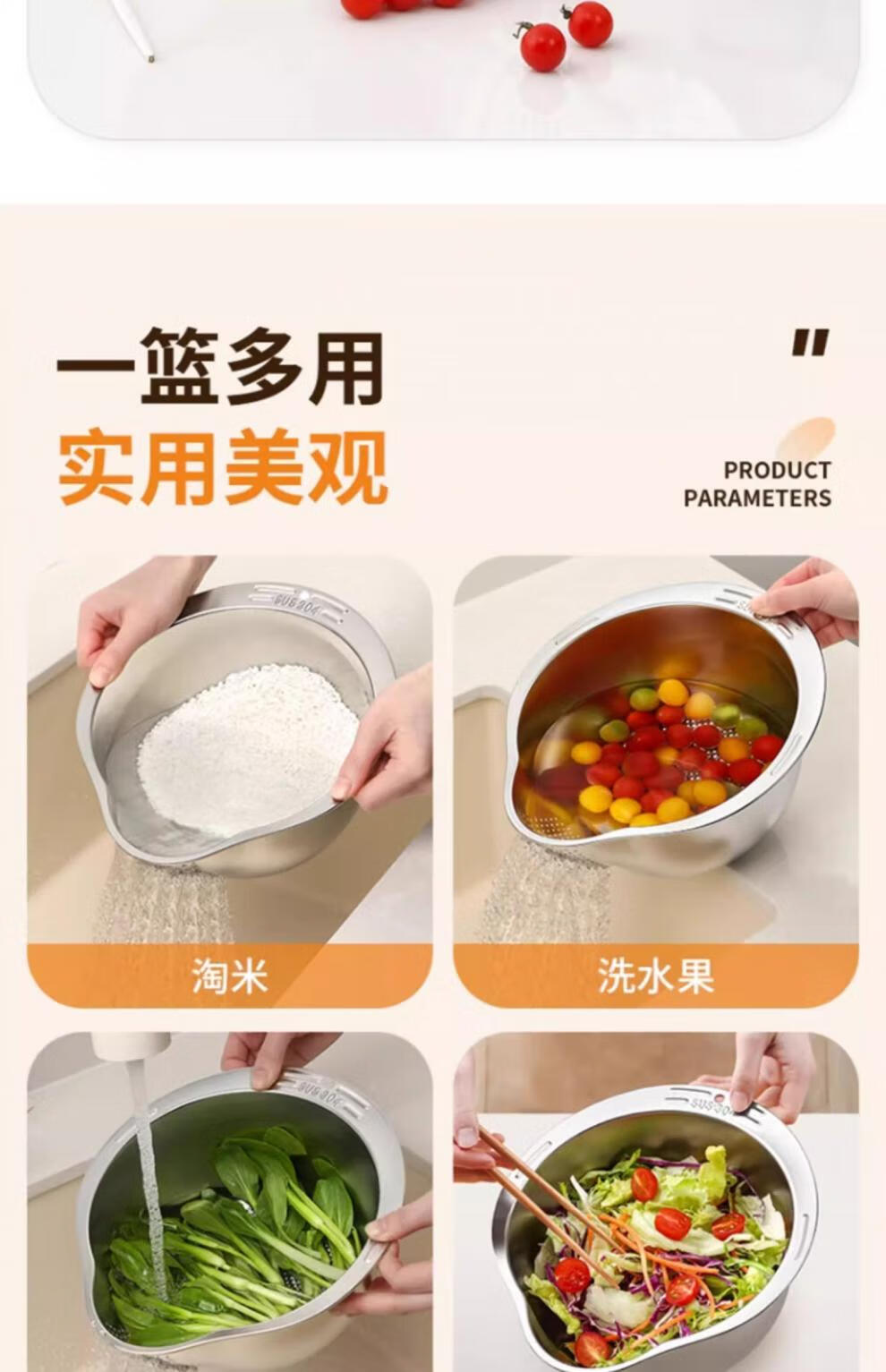 Shijanu 316 stainless steel drain basket, multi-functional rice washing artifact, rice washing sieve, fruit plate, special dishwashing basin for home kitchen, 304 stainless steel drain basket (silver), two packs