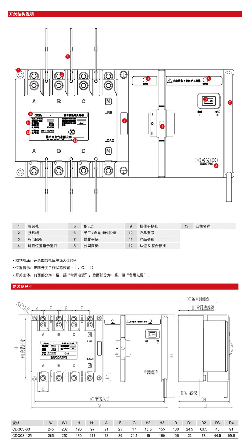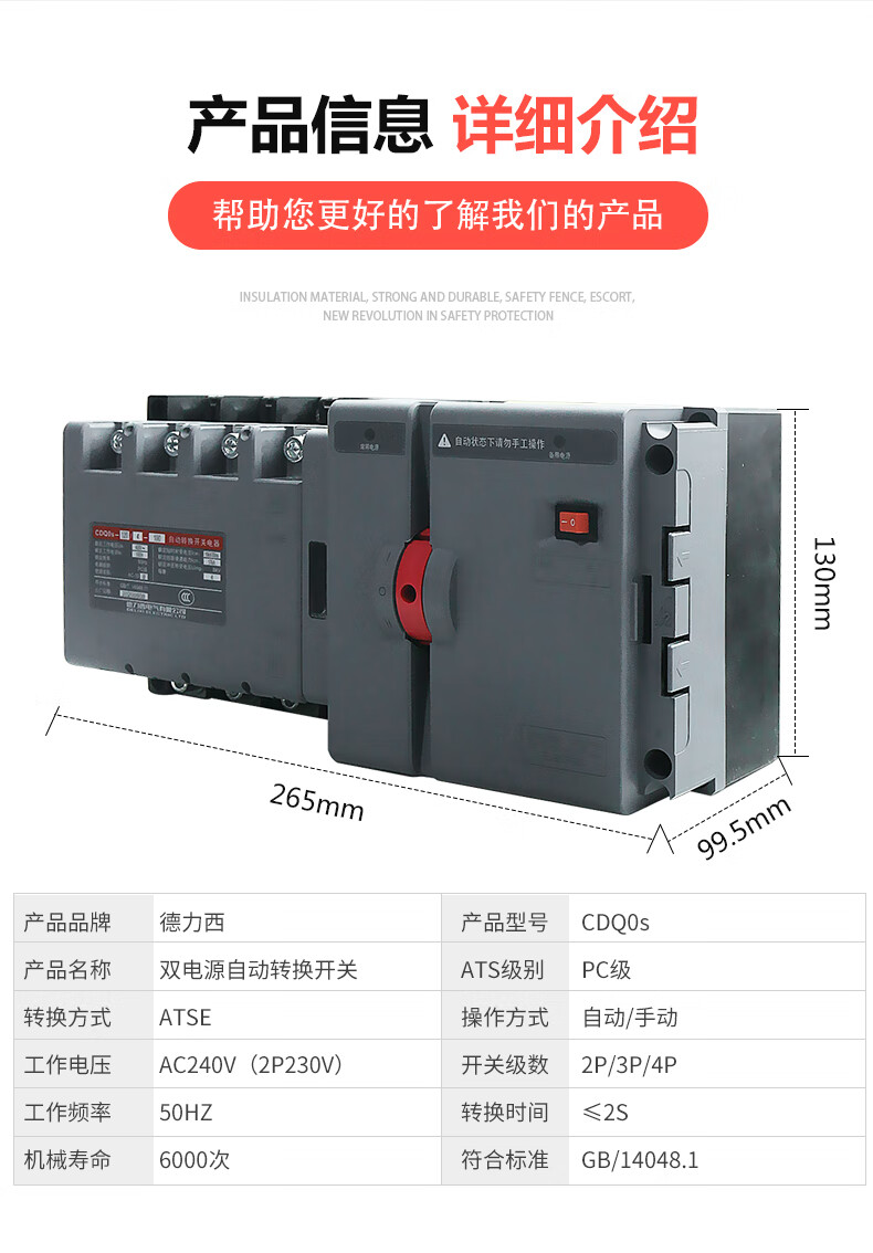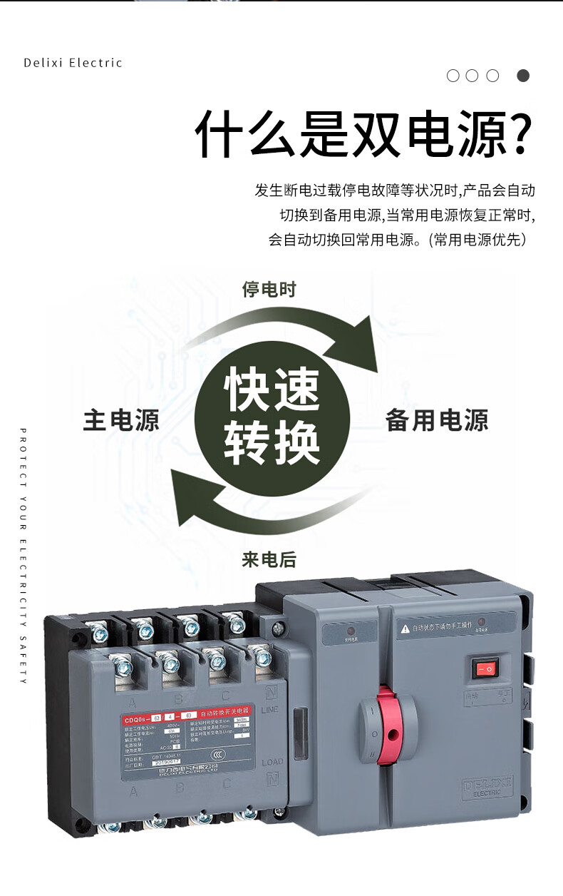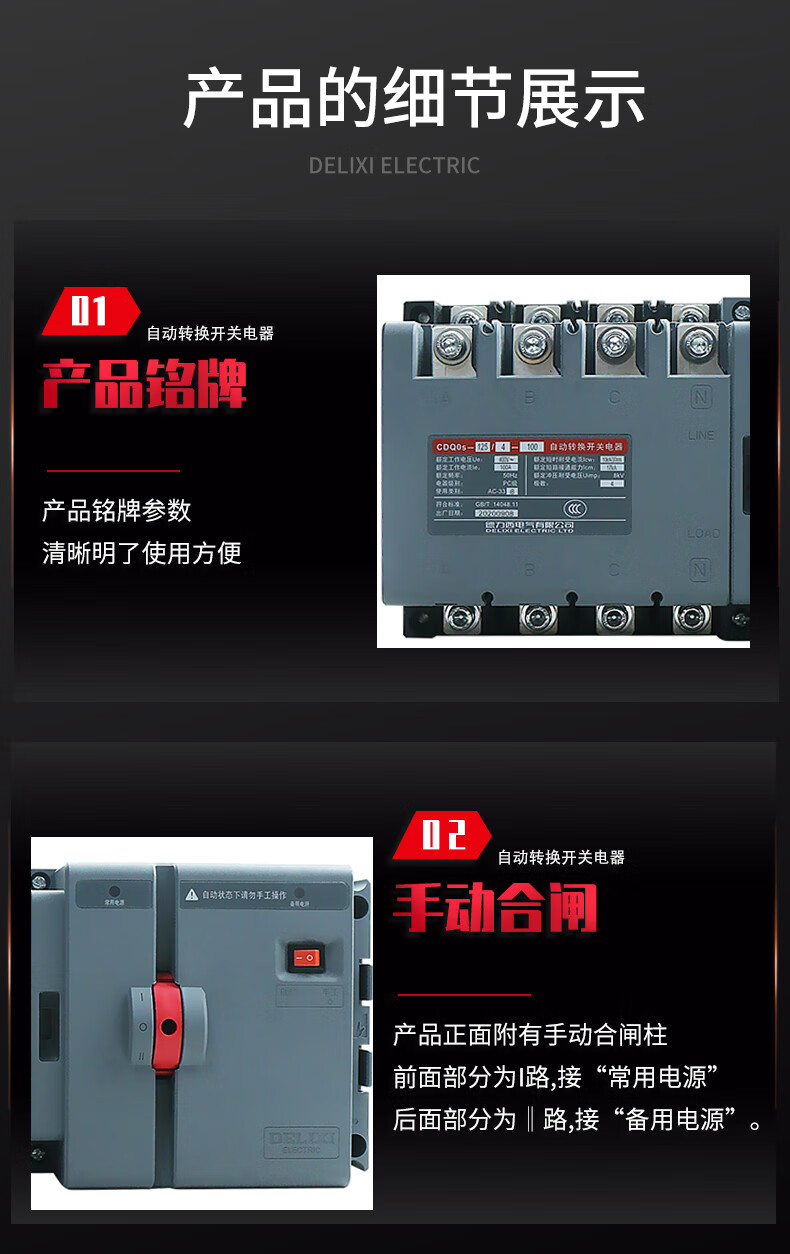 Delixi Electric Delixi CDQ0S dual power automatic transfer switch isolation type switching PC level two in and one out 4P80A 80A without light 4P