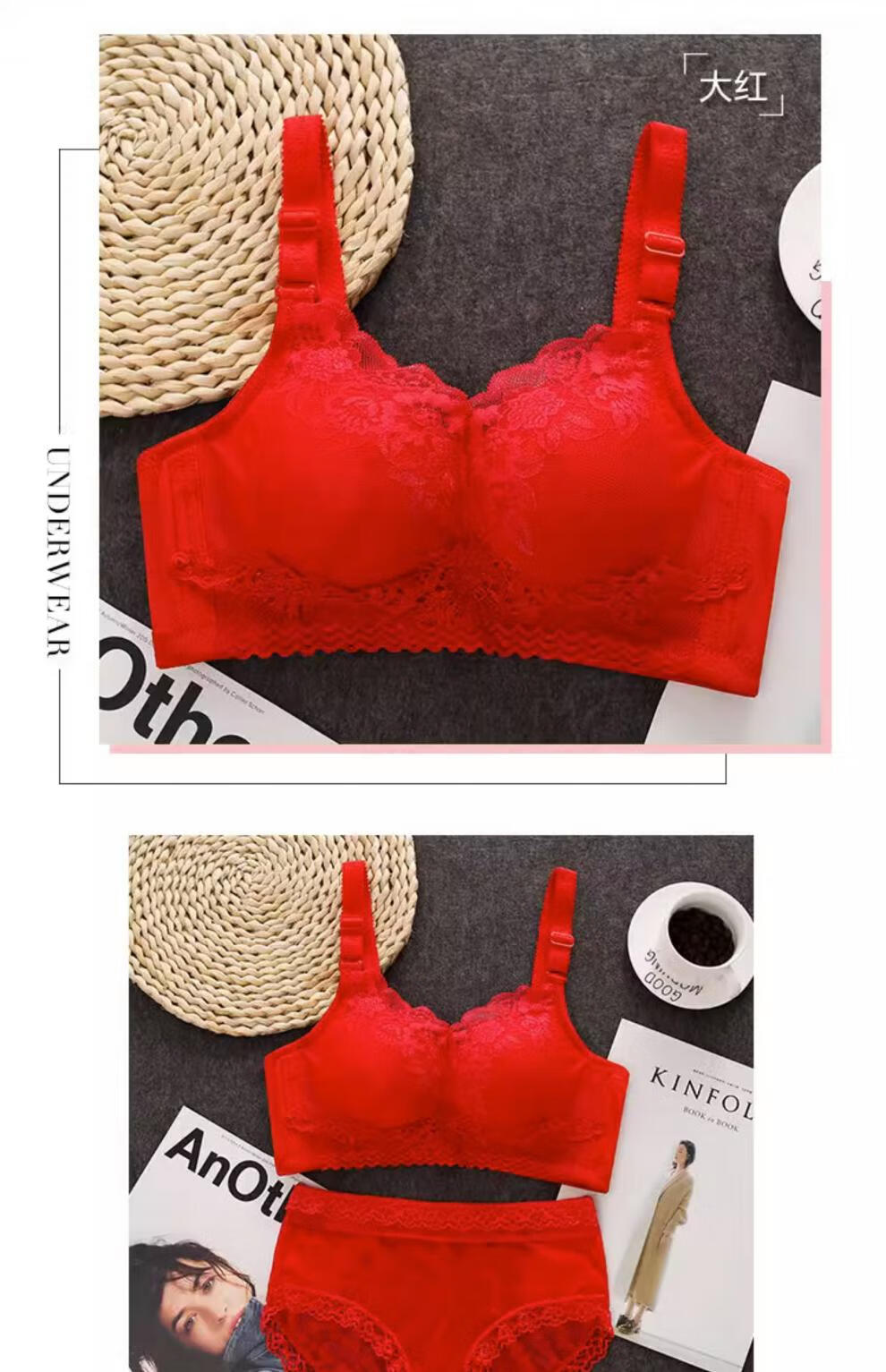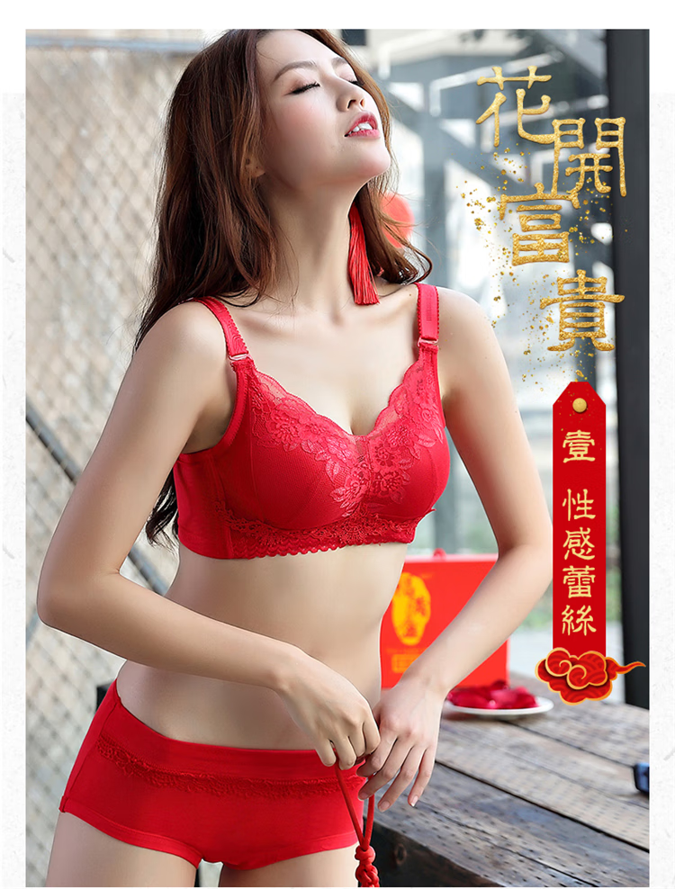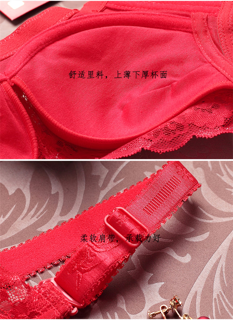 Cat Man (MiiOW) new animal year red bra set push-up side breast underwear women's anti-sagging bra thin/thick red set one size fits all 34/75 size thin 1 cm