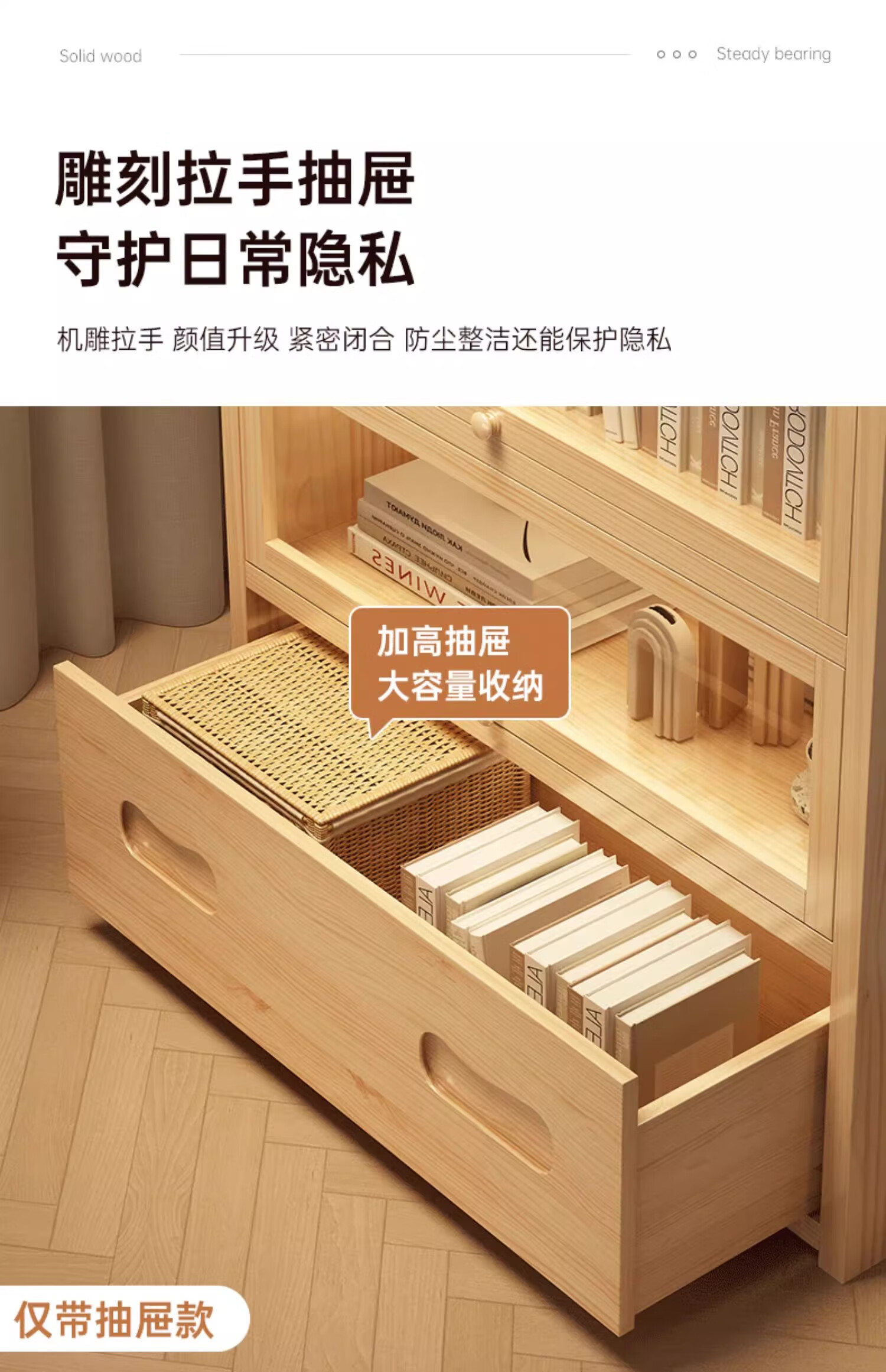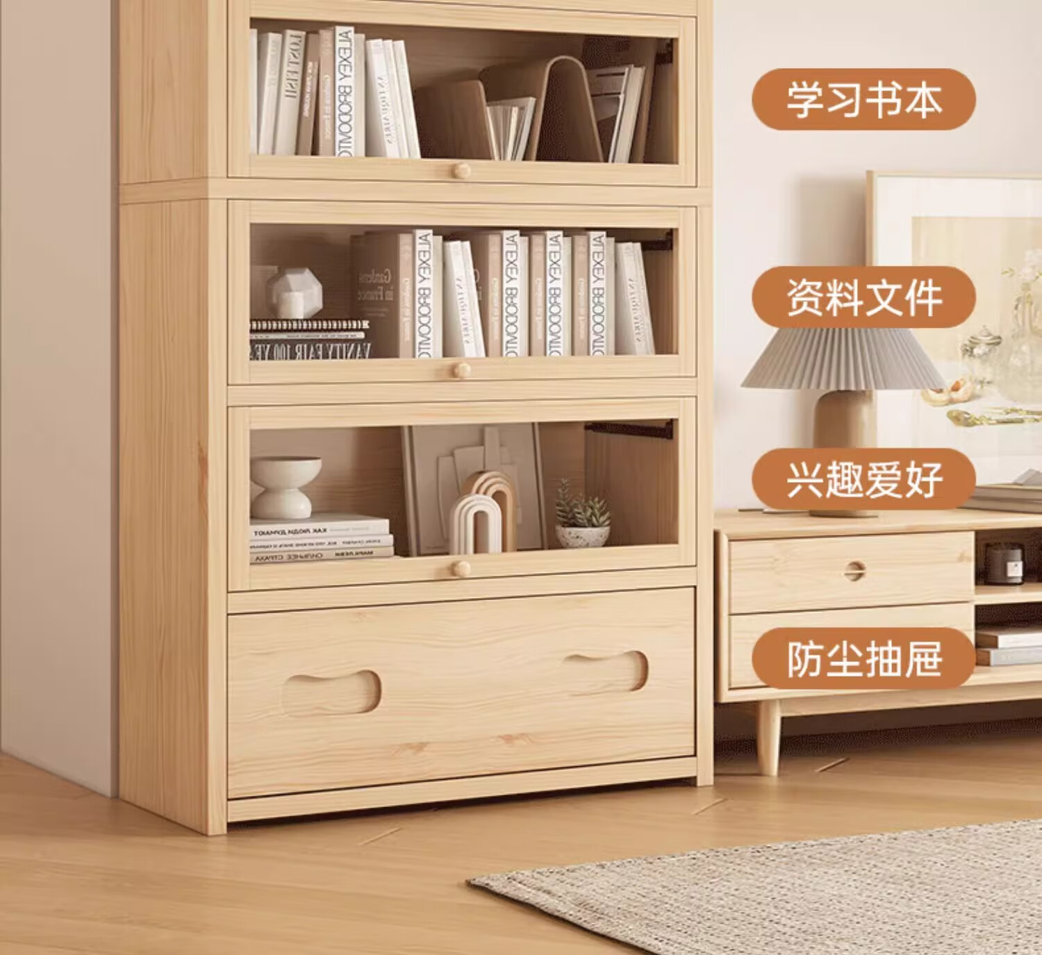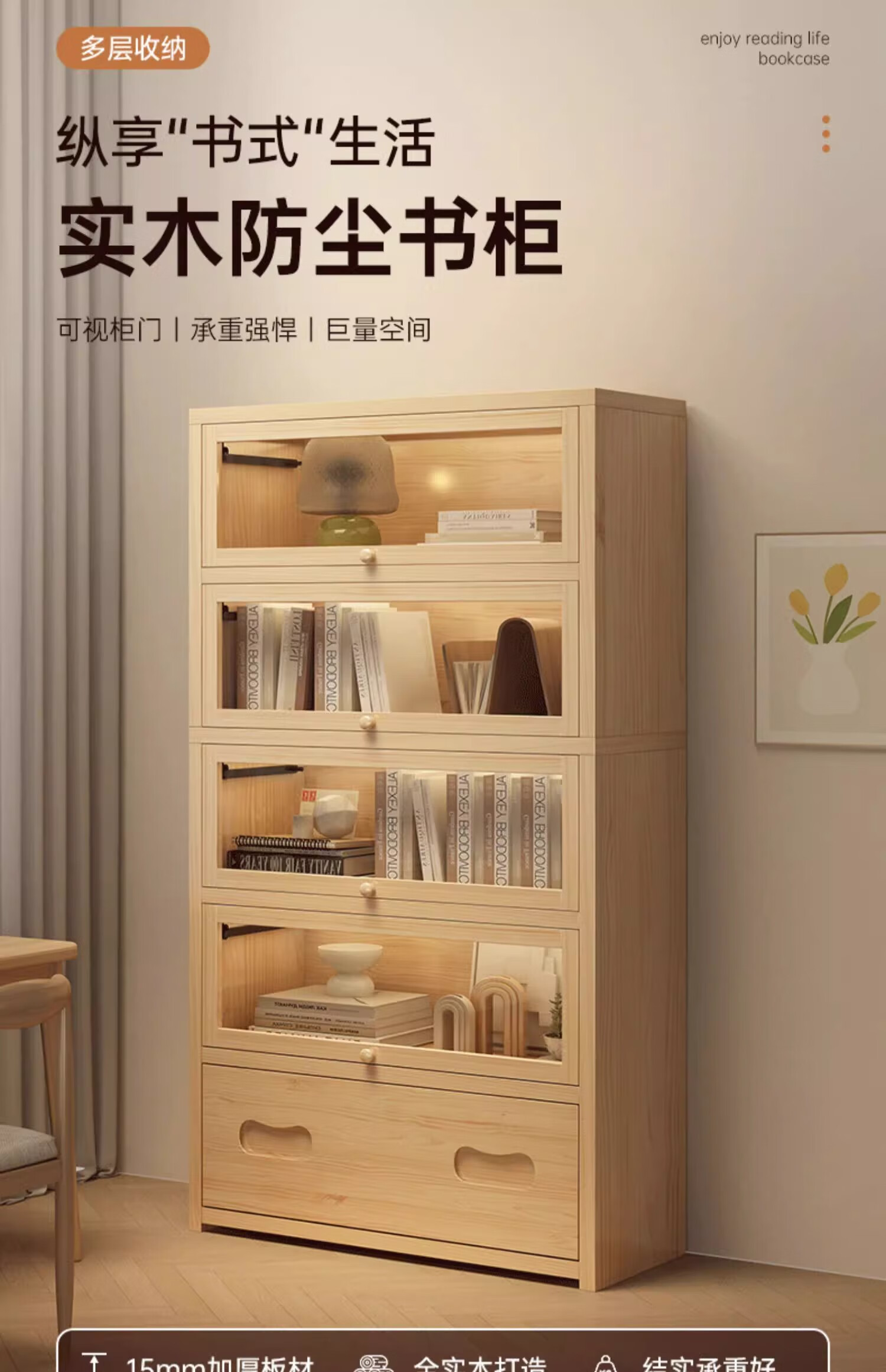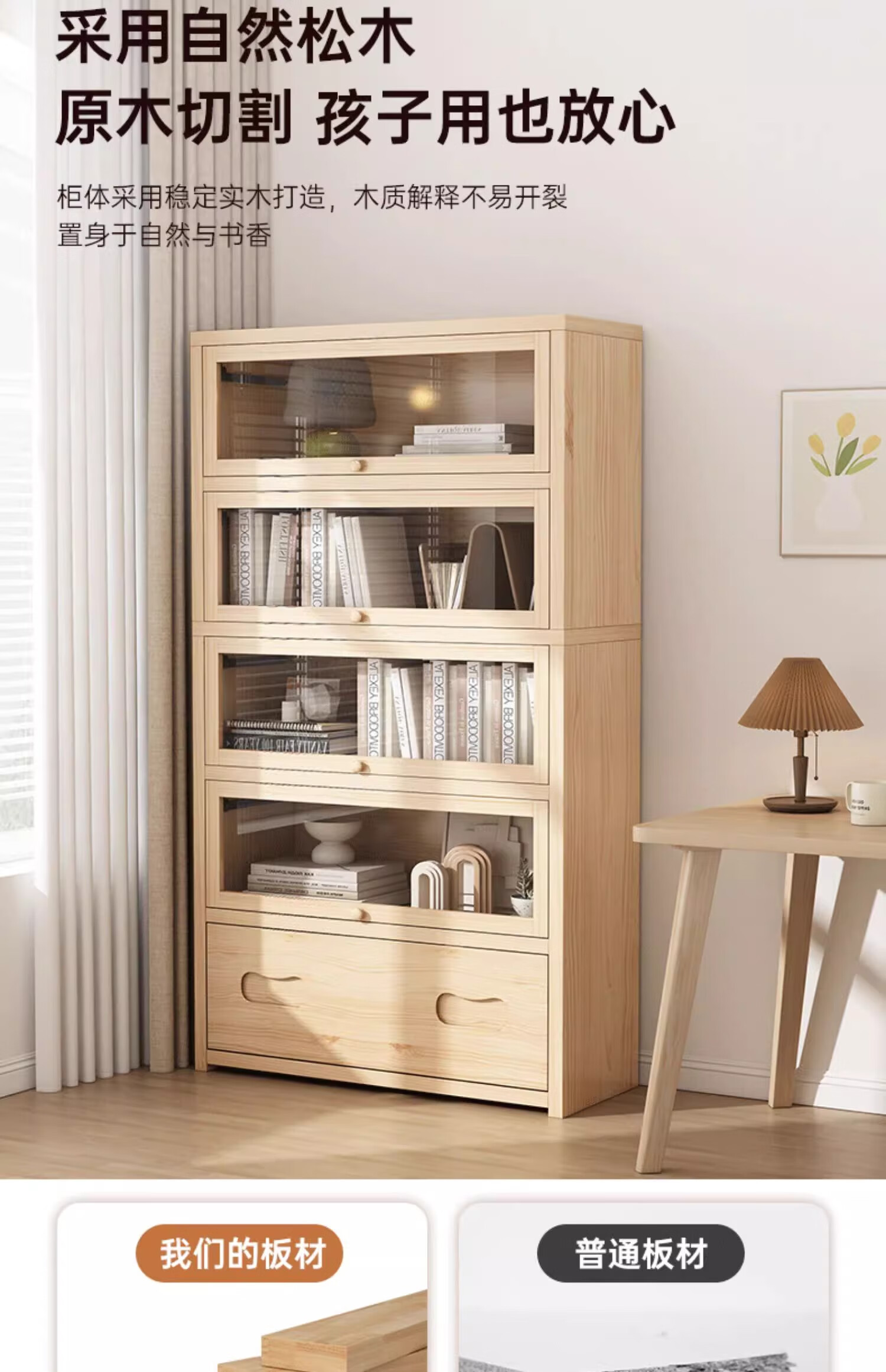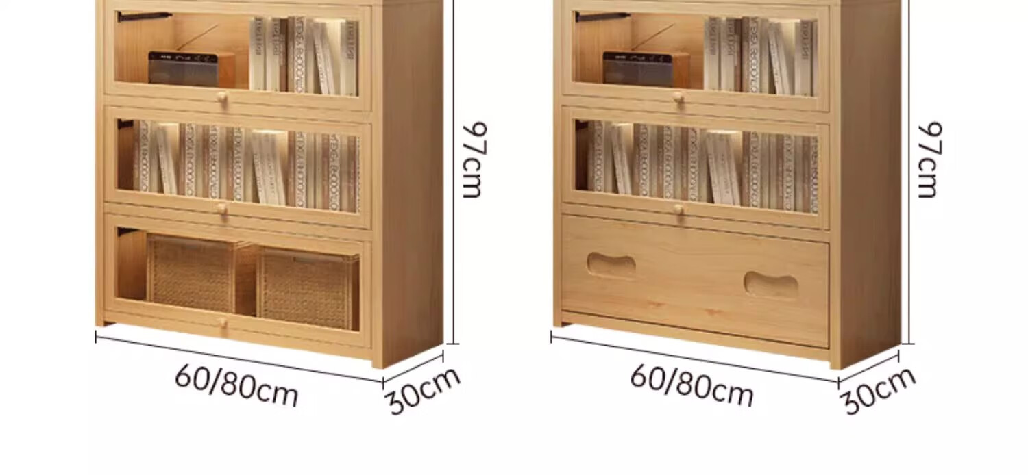 Solid wood dustproof bookcase book storage rack student home storage cabinet integrated wall storage cabinet storage cabinet bookshelf drawer style | 15MM paint-free pine five layers | 80cm log color