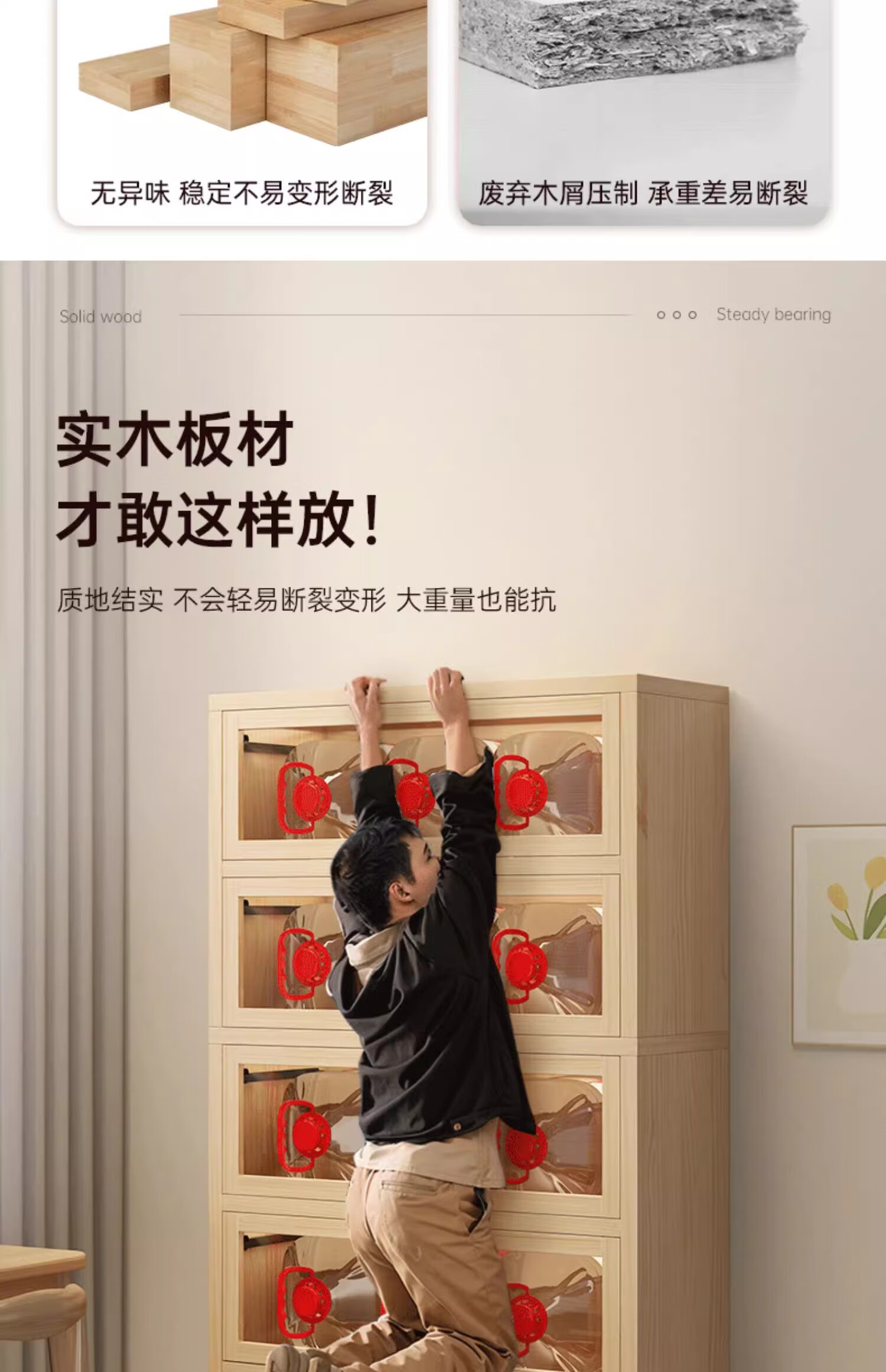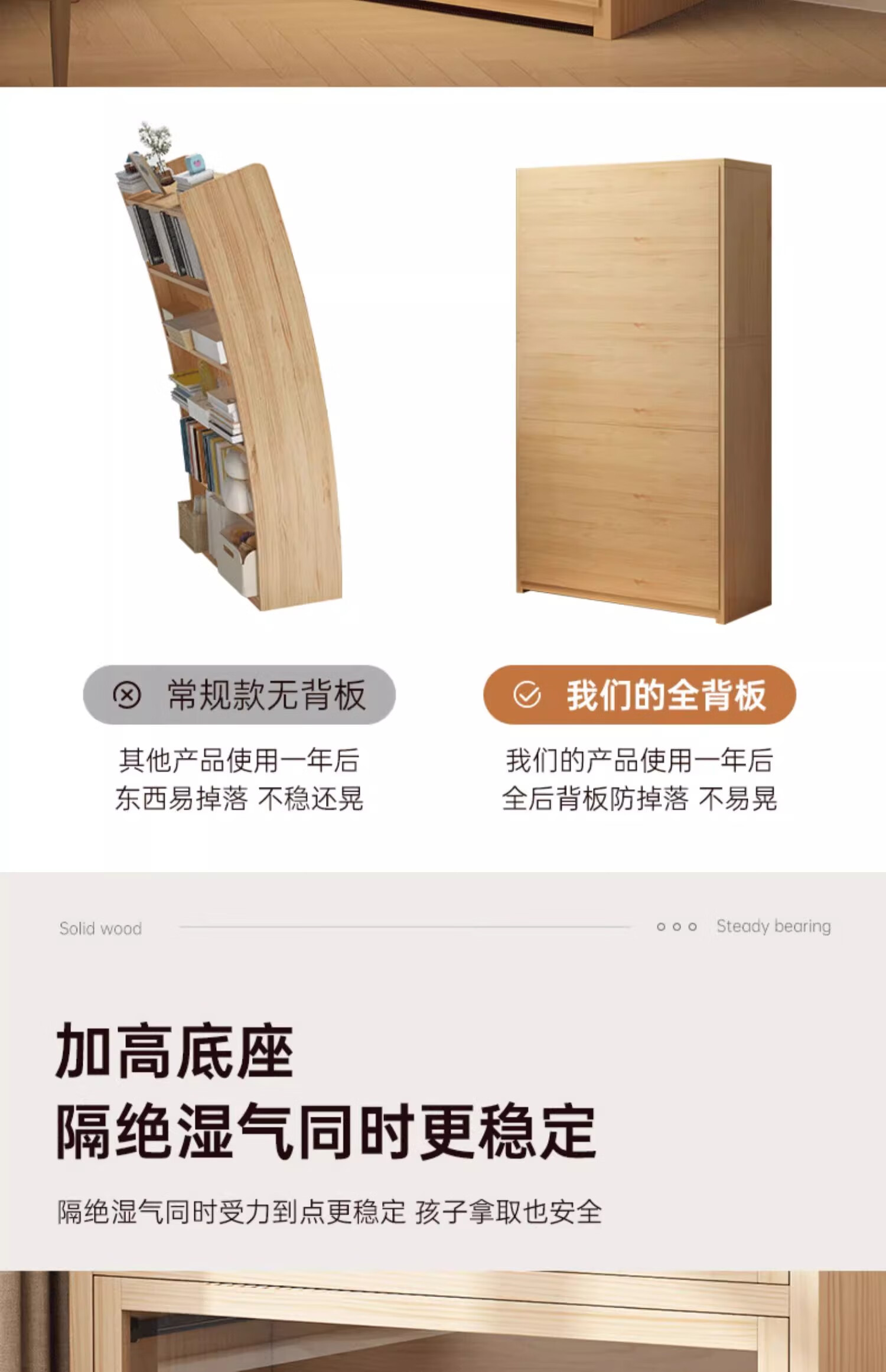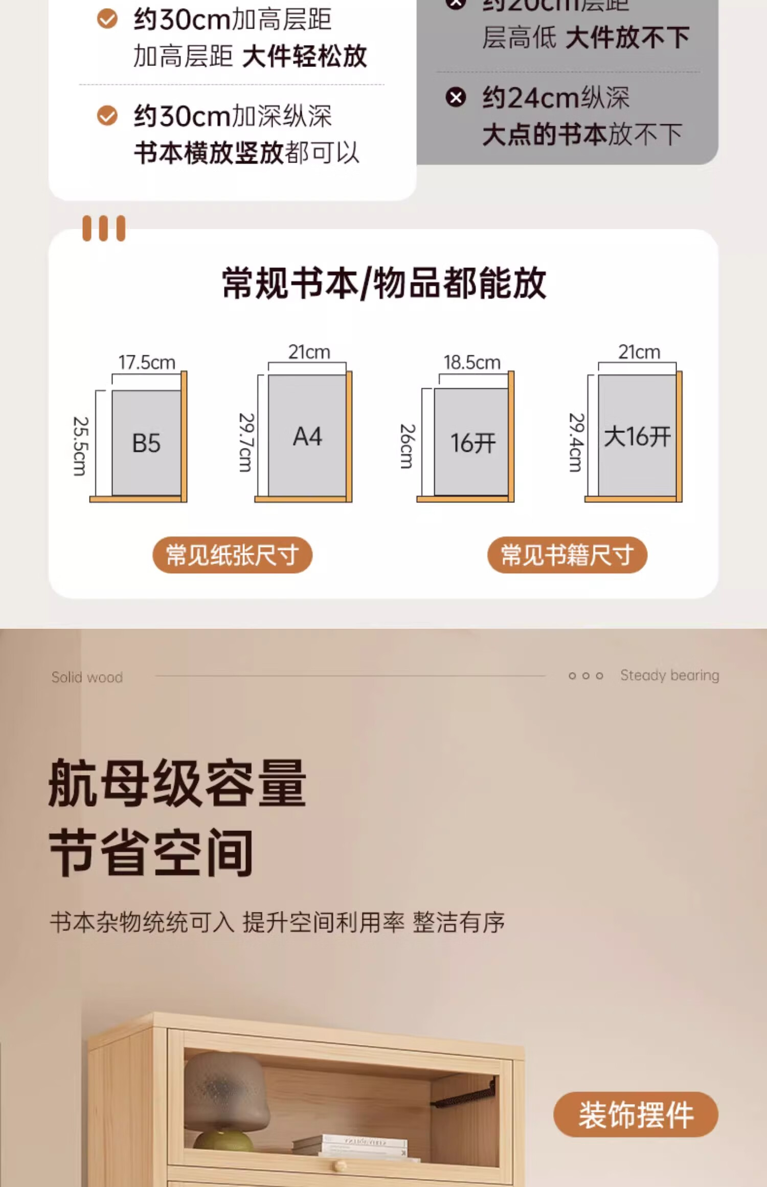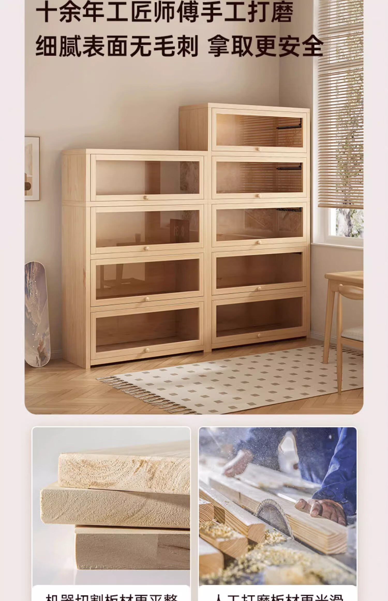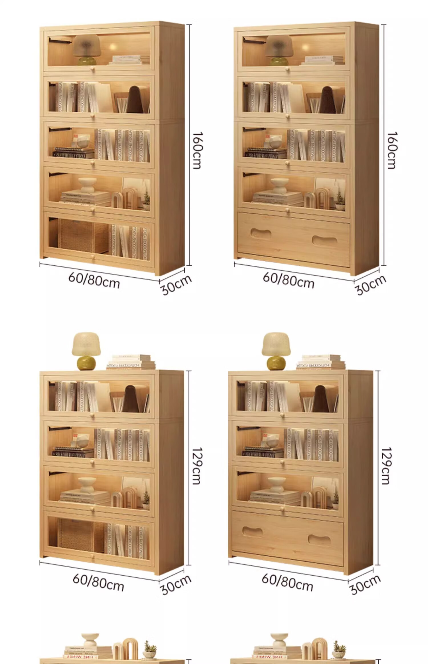 Solid wood dustproof bookcase book storage rack student home storage cabinet integrated wall storage cabinet storage cabinet bookshelf drawer style | 15MM paint-free pine five layers | 80cm log color