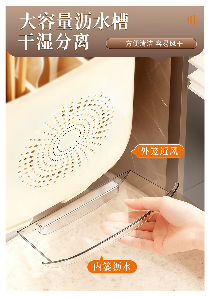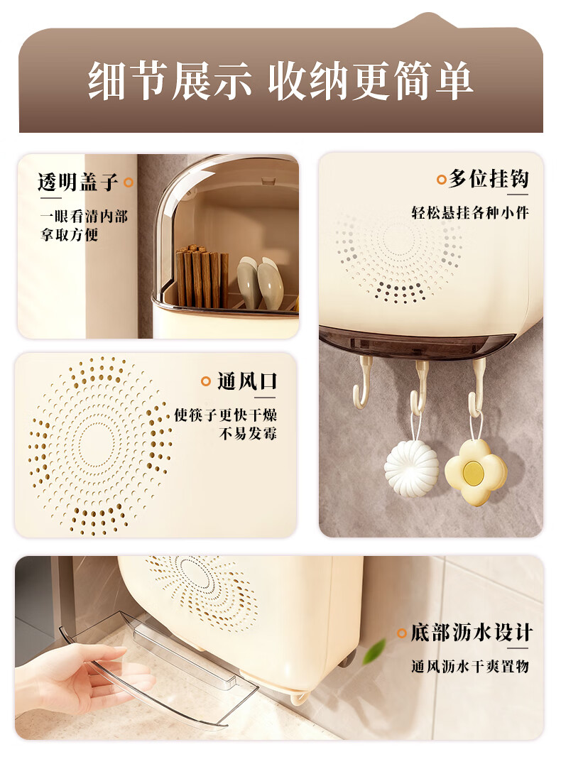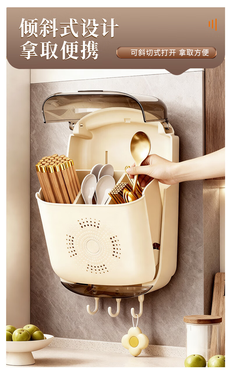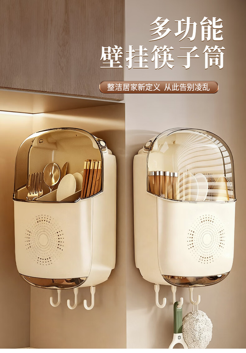 Nafenai Chopstick Storage Box Kitchen Chopstick Tube Tableware Storage Rack Wall-mounted Household Drainage Spoon Bucket Chopstick Cage Basket Cream Extra Thick Chopstick Tube Drainage and Ventilation Chopsticks Will Not Get Moldy Guaranteed Compensation for Drops