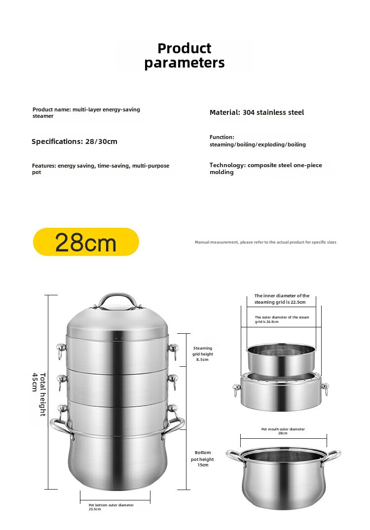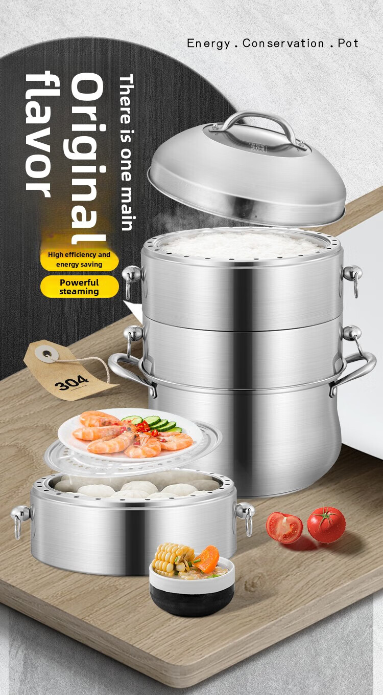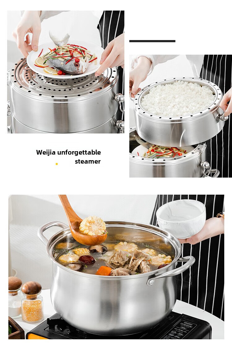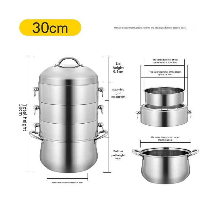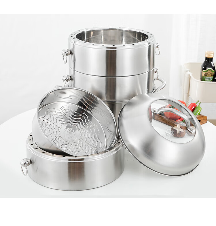 Fat Donglai Fat Donglai steamer household 304 stainless steel odor-free steamer three-layer thickened household pot can be split into the same style four layers (one bottom pot and three steaming compartments) 26cm free
