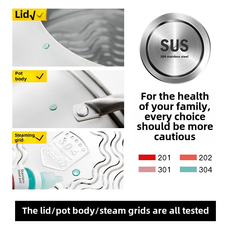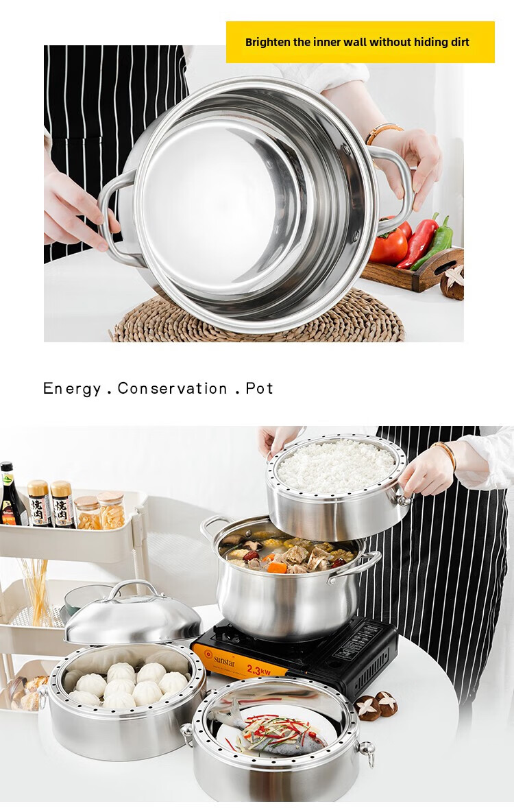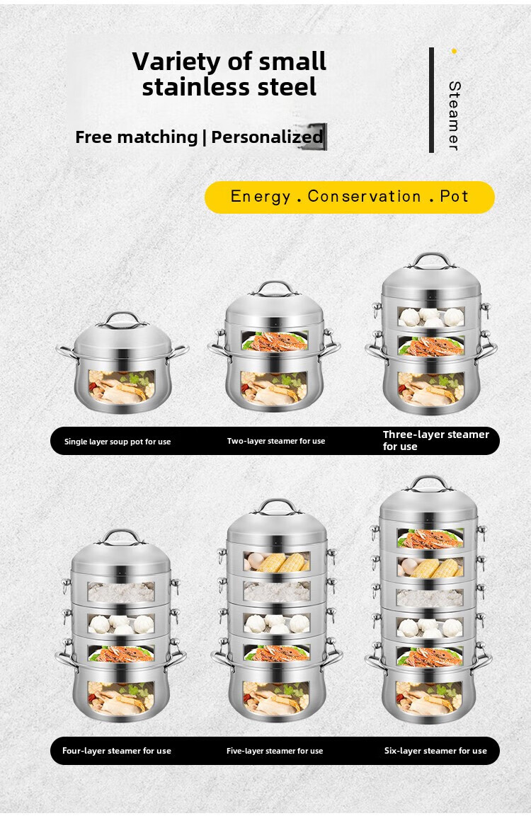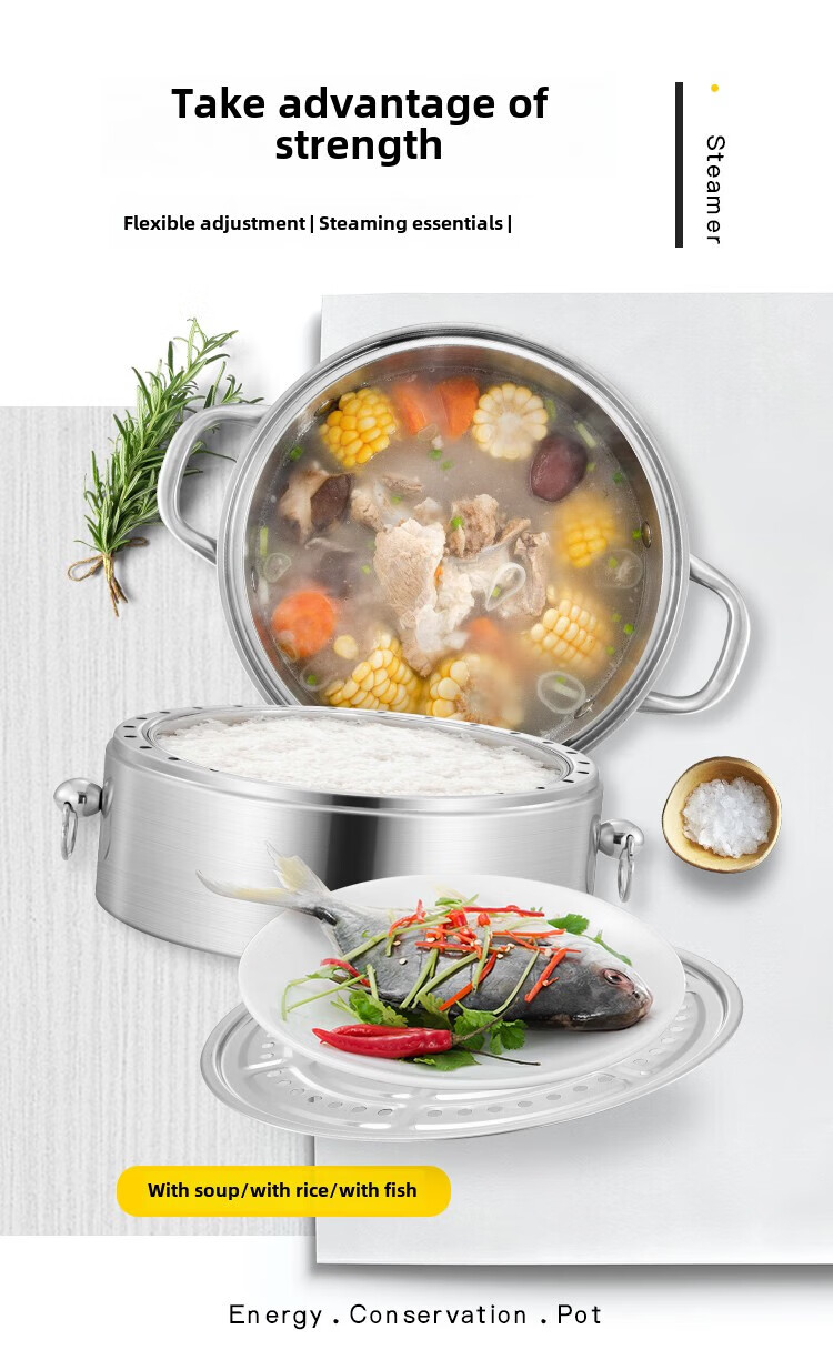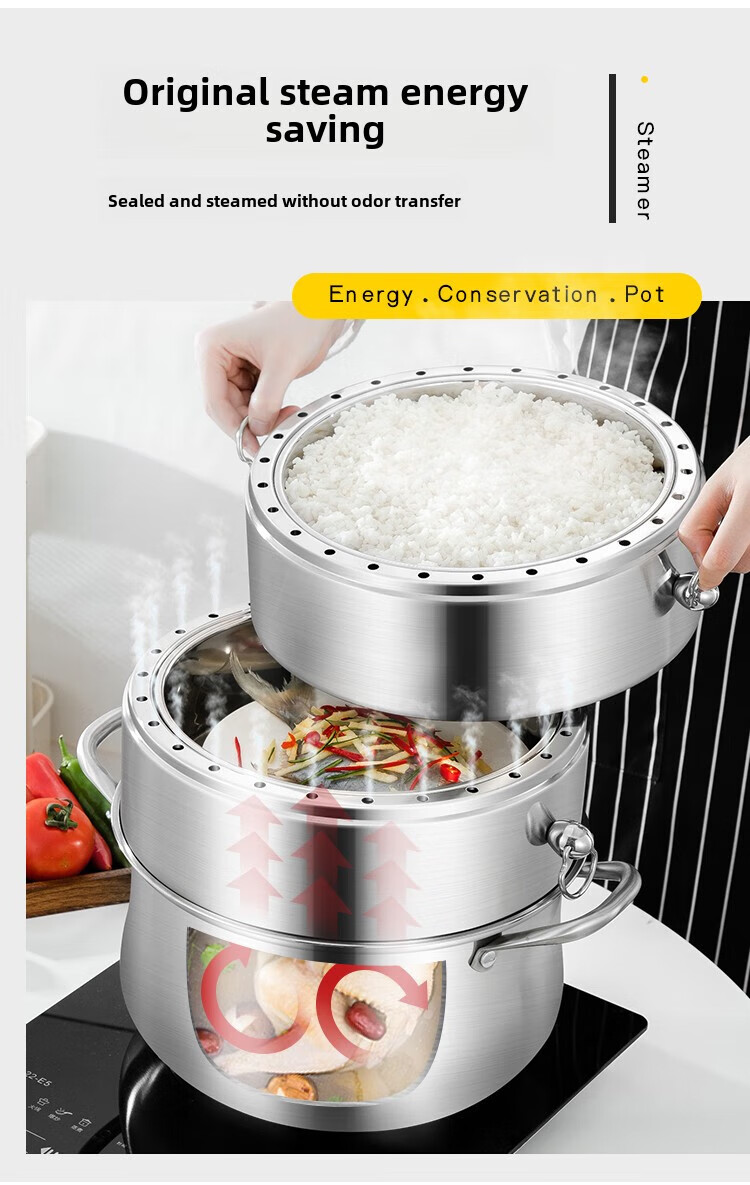 Fat Donglai Fat Donglai steamer household 304 stainless steel odor-free steamer three-layer thickened household pot can be split into the same style four layers (one bottom pot and three steaming compartments) 26cm free