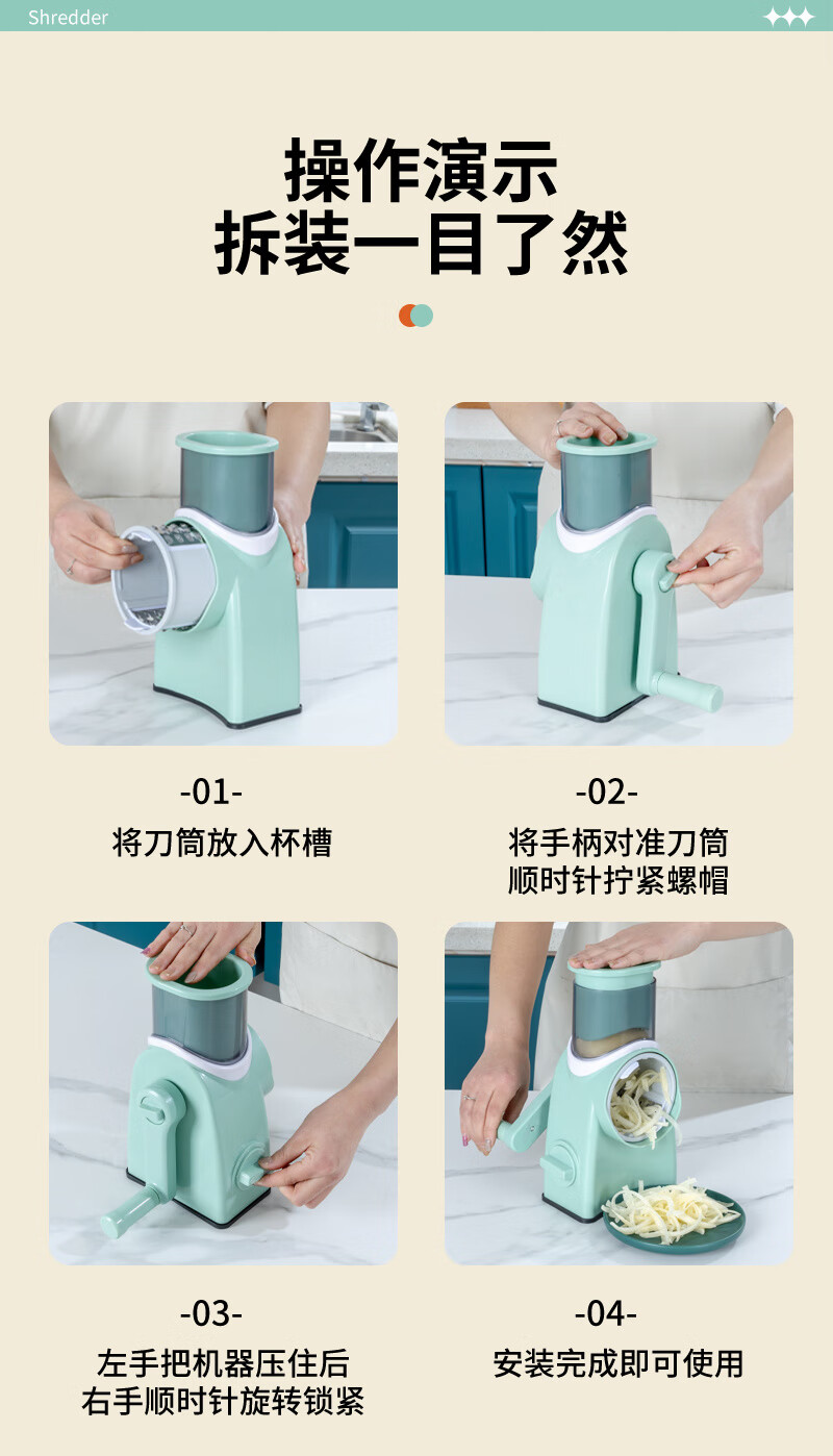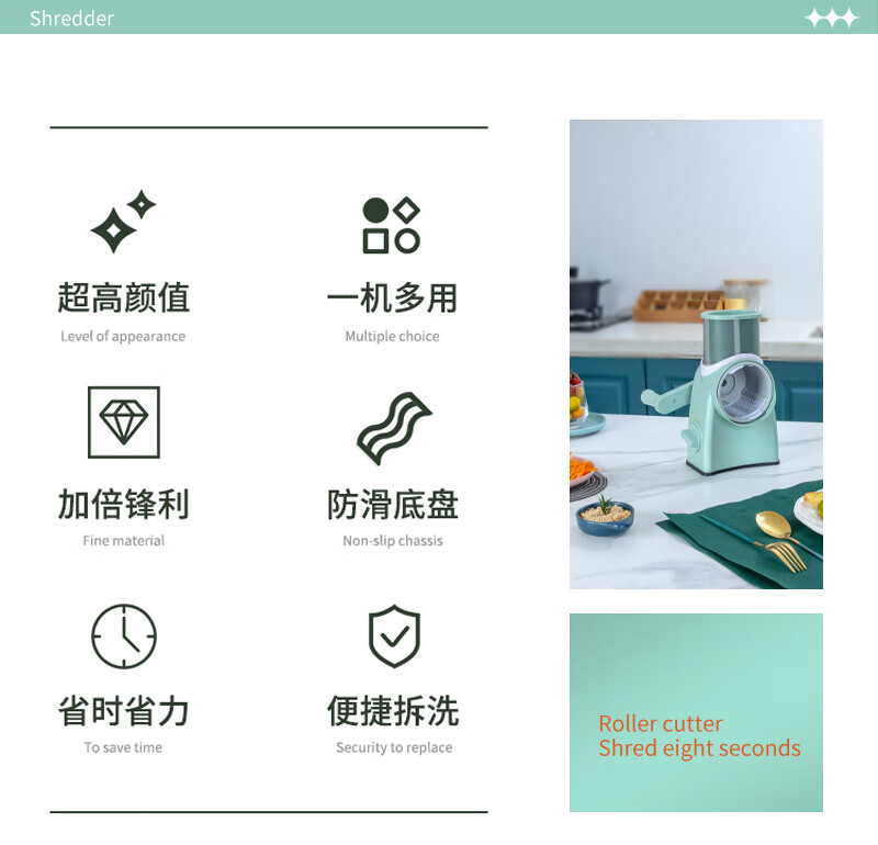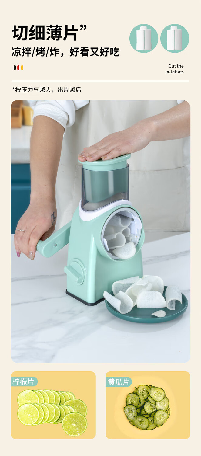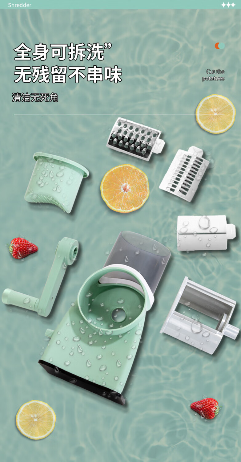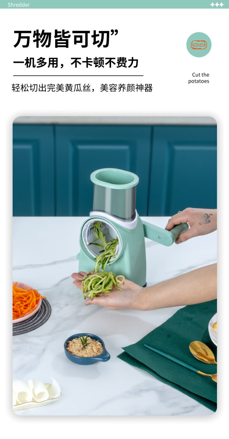 He Jiagong's vegetable cutting artifact multi-functional vegetable cutter kitchen grating shredding grater slicer meat cutting automatic soil knife skills do not need to be practiced shredding drum green